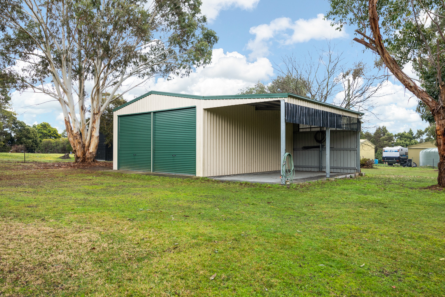 Outbuildings include a freestanding double garage (2 x roller doors) with an attached workshop along with a garden shed + annex and a machinery shed, again with double roller door access and an attached carport – so much storage, so much flexibility. This is perfect for those needing space for work gear, boats or caravans.