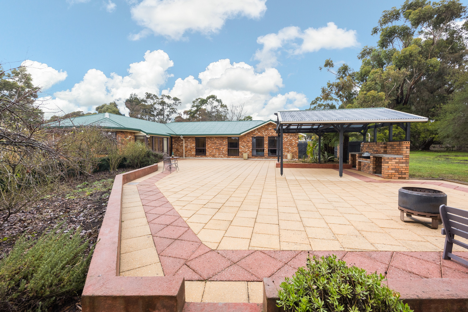 • Expansive paved entertaining area + gazebo