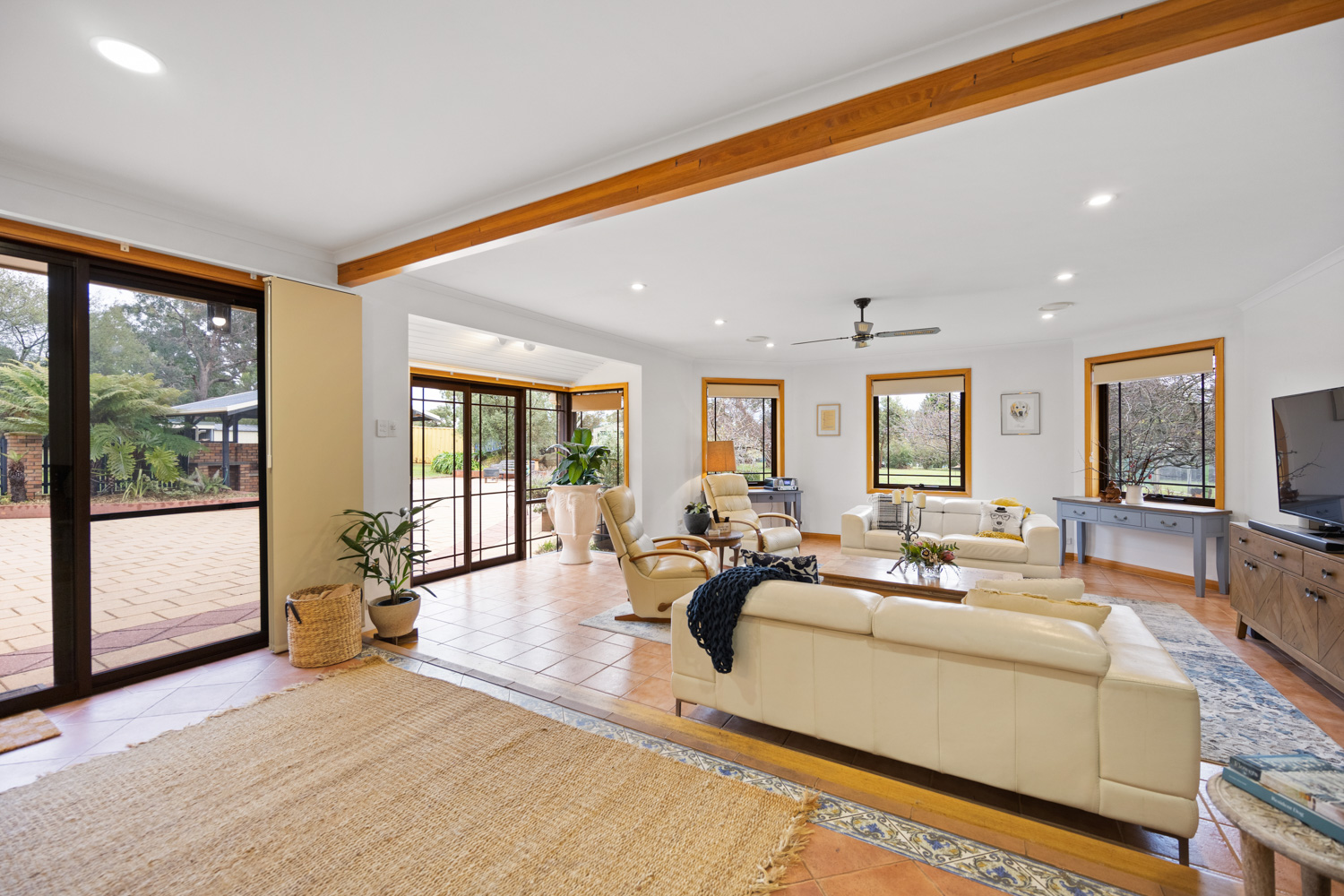 Established grounds feature an eclectic range of mature trees and shrubs. From our ever-green native Eucalypts to English style deciduous trees that are a blaze of colour throughout the autumn months to fruit bearing ones and sweet-smelling roses. Extensive lawned areas provide enough space for the family to run free and the property is ideal for pets and fully fenced.