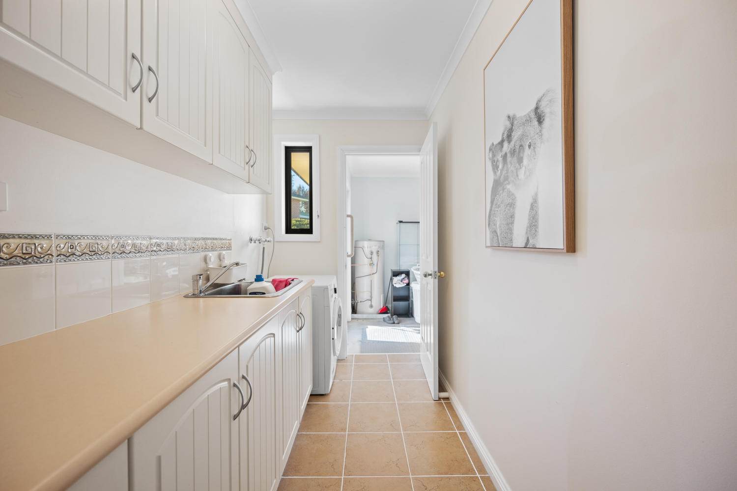 The full-sized laundry has direct access to the single garage and further on to outside.