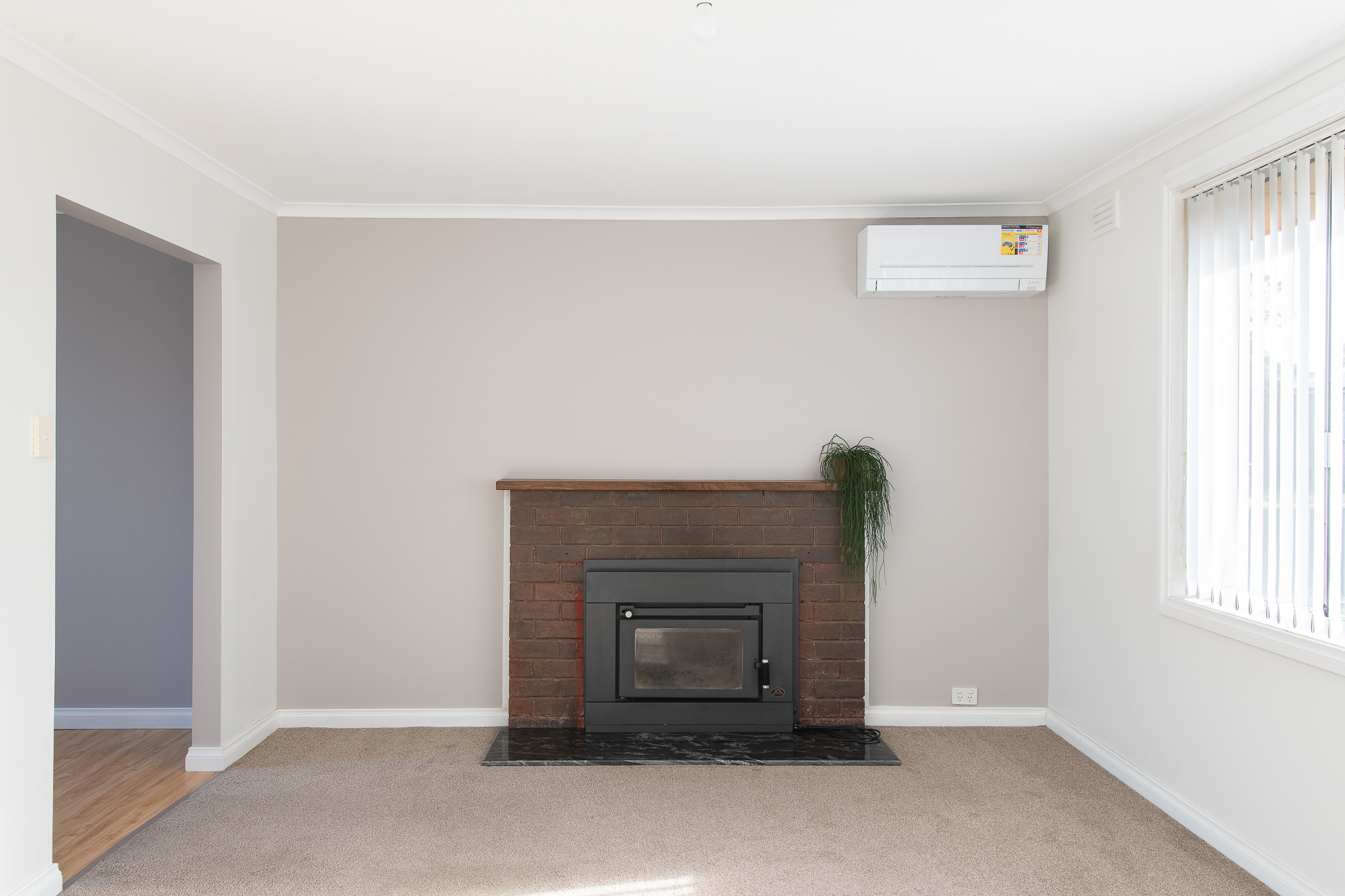 The cosy lounge has both a reverse cycle heat pump and a built-in wood heater – perfect for Launceston’s colder months.