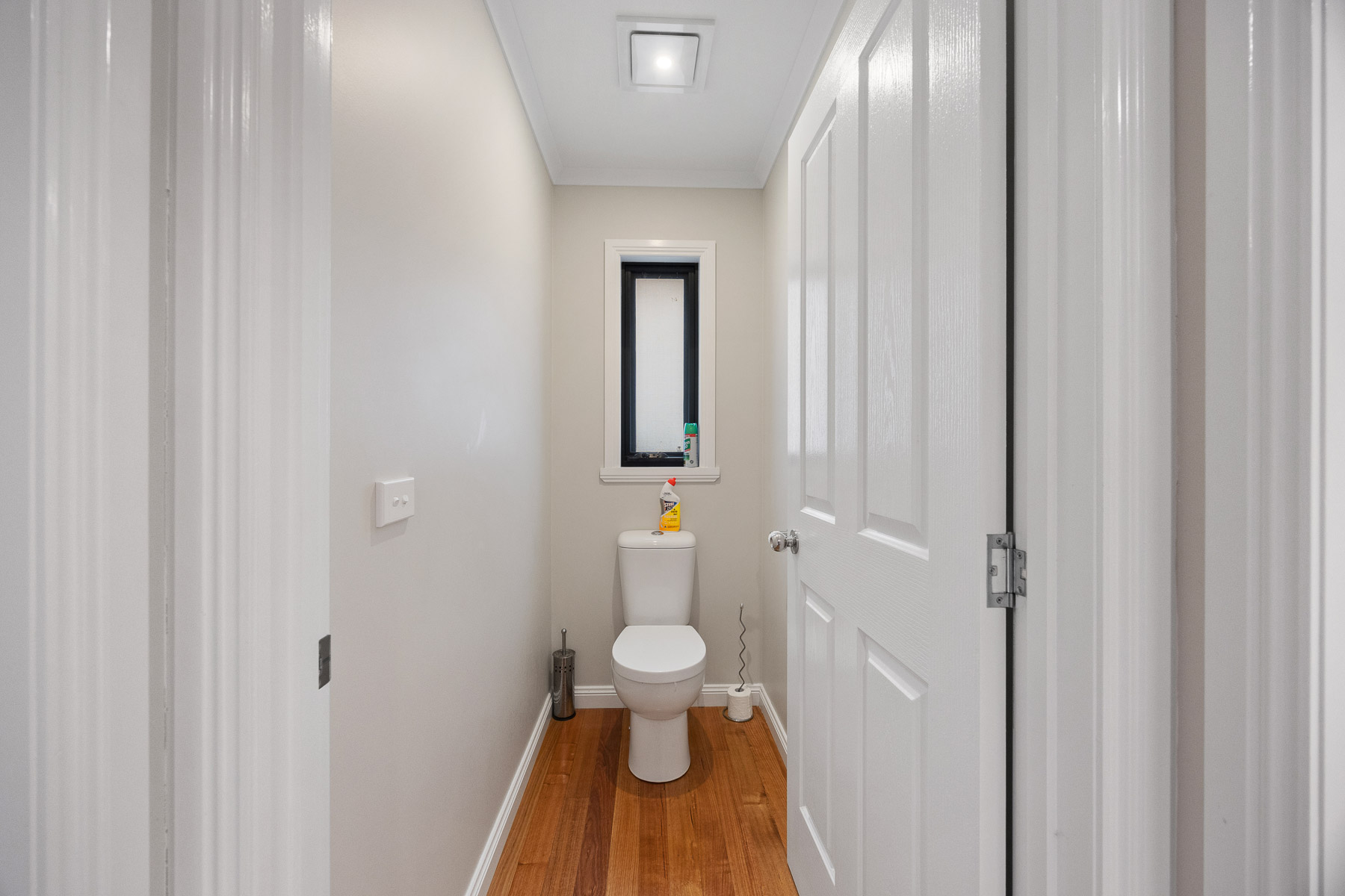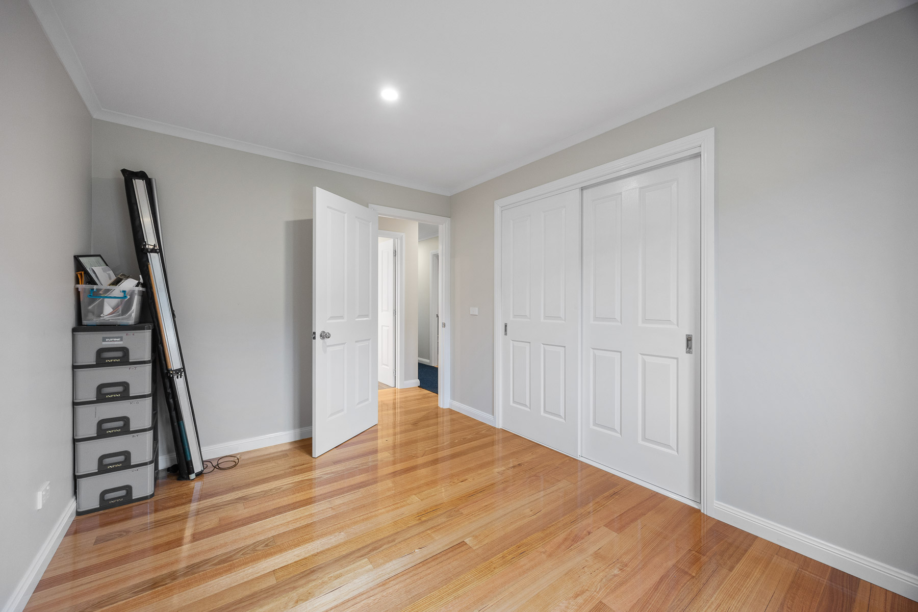The home features polished timber floorboards throughout, carpeted bedrooms and hard-wearing tiles in the bathroom.