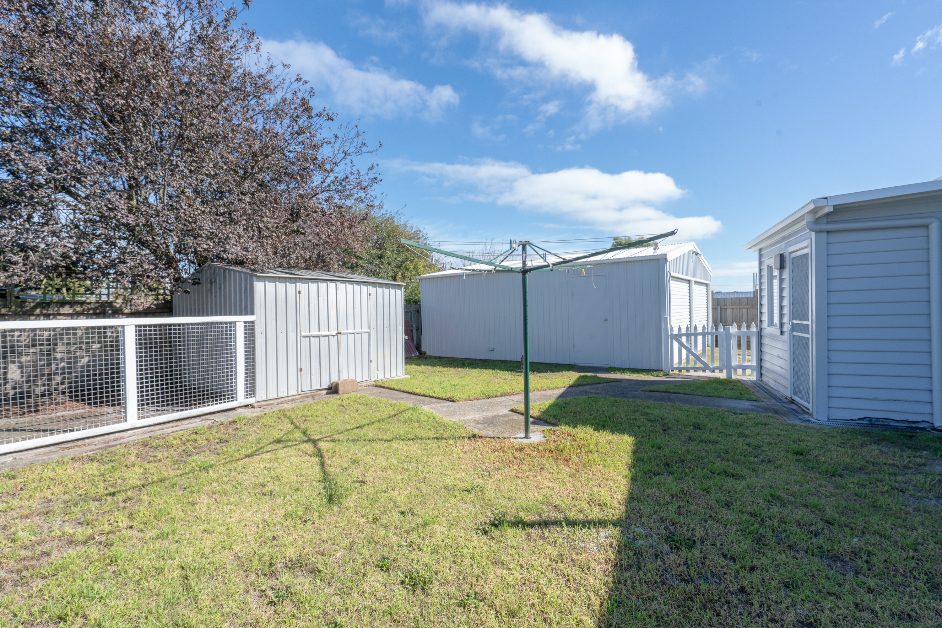 A large double garage at the rear of the yard has power and workbenches, and the yard is sensibly fenced for small children and pets…there’s even the perfect spot for a chicken run.