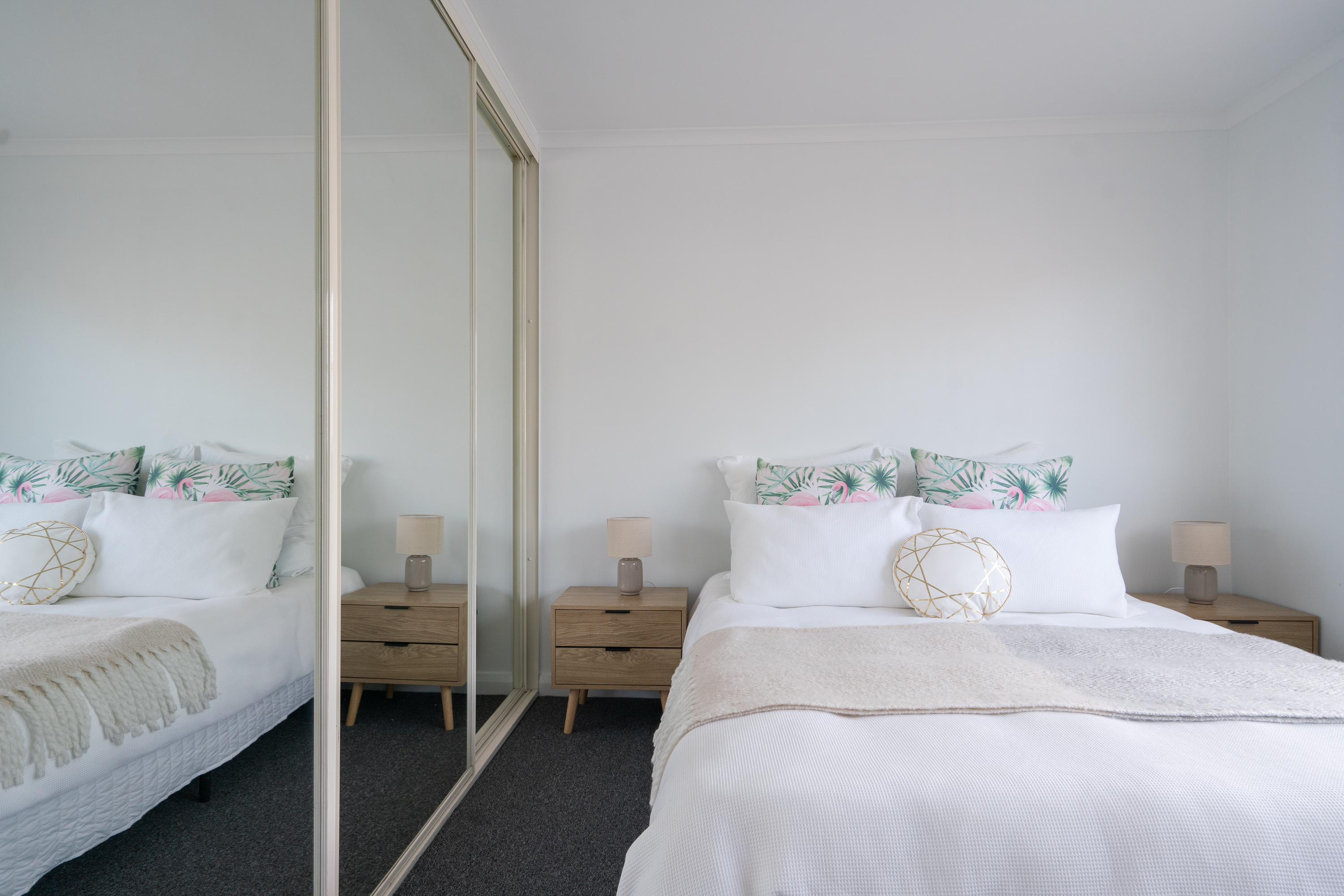 The new floor coverings and blinds throughout offer lovely continuity and two of the bedrooms have generous built in robes.