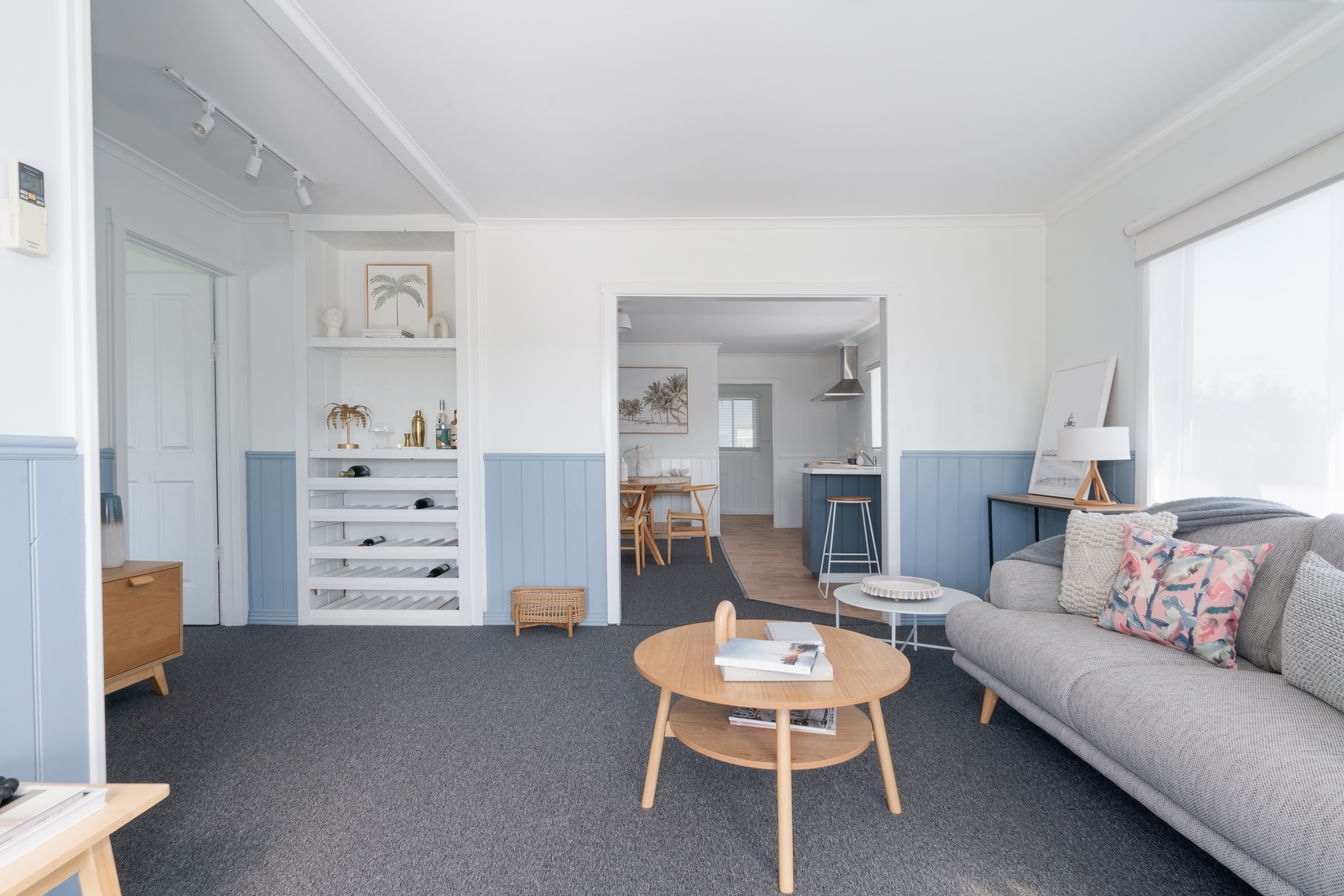 Recently updated, the three bedroom home is simply gorgeous and incredibly practical. Open plan living flows out to an undercover veranda offering peaceful countryside views (including uninterrupted, amazing sunsets and the moon rising) and the stylish, storm-cloud blue kitchen is both a delight to cook in and a visual feast. There is a separate pantry area/mud room and a walk-in linen cupboard.