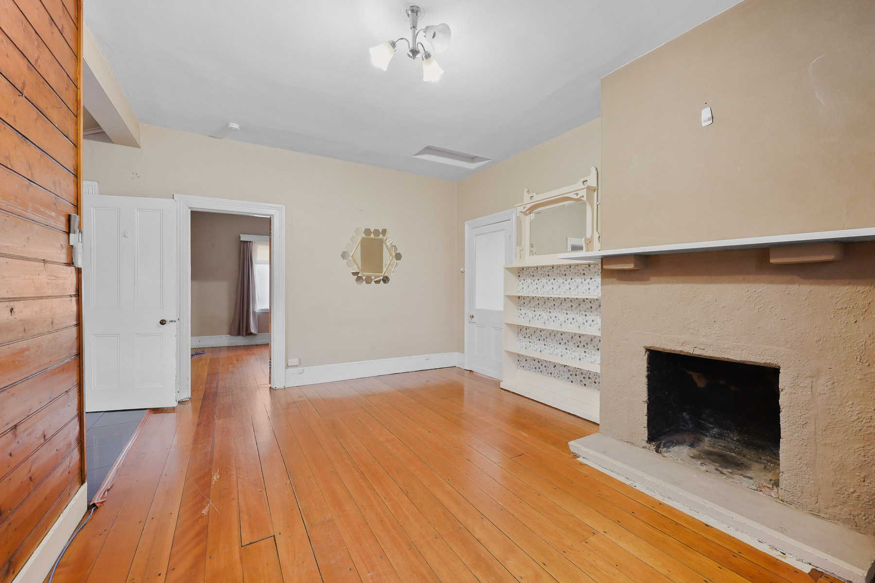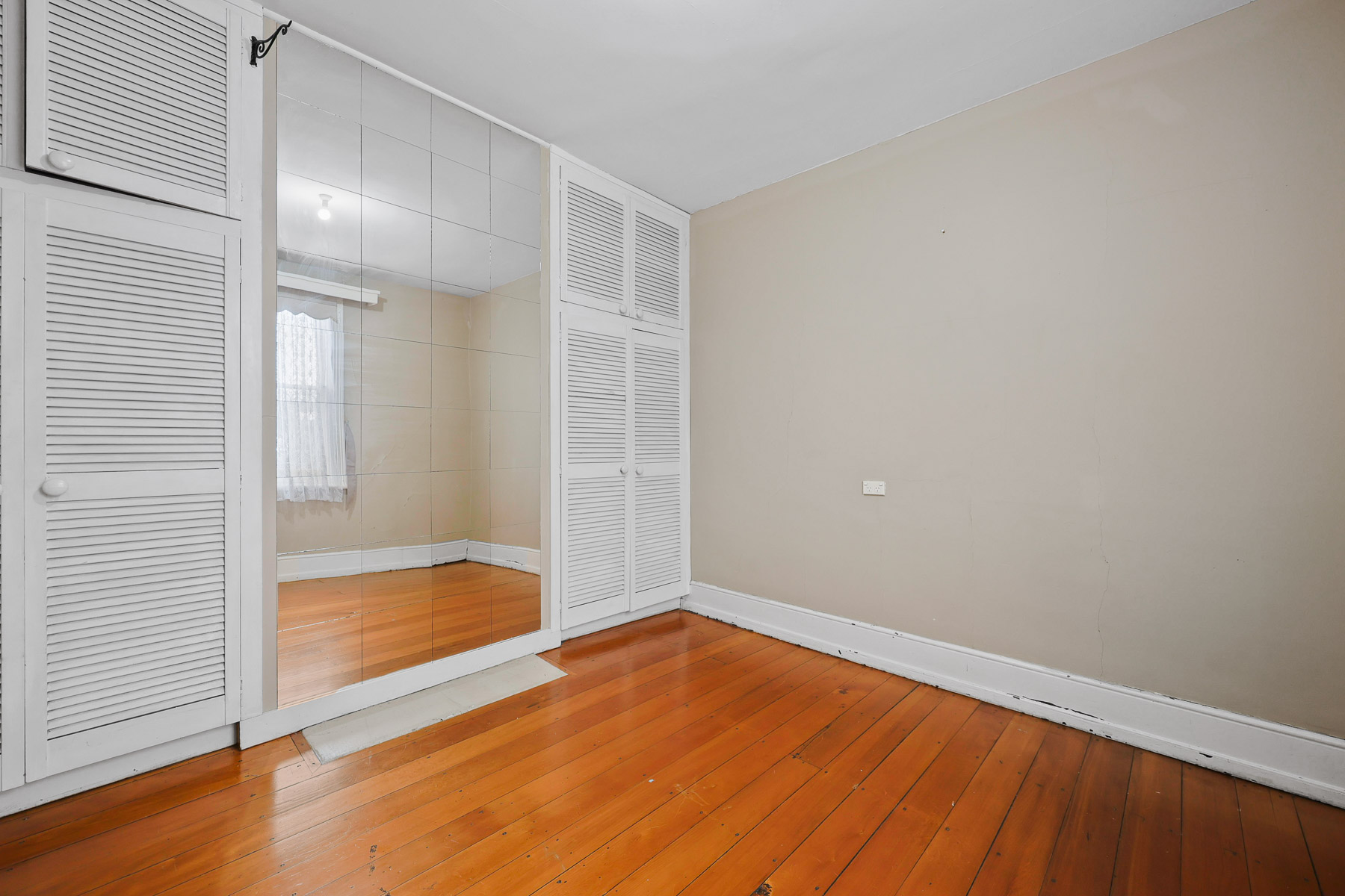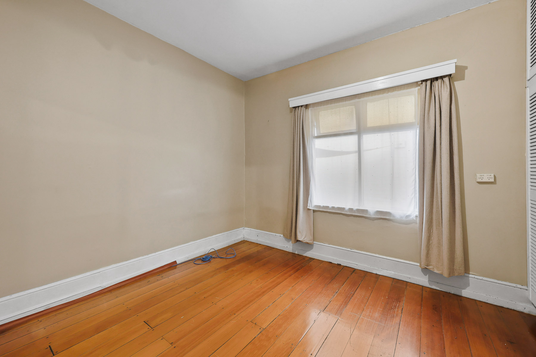 There is hardwood flooring throughout the living rooms & bedrooms, and some built in joinery also.