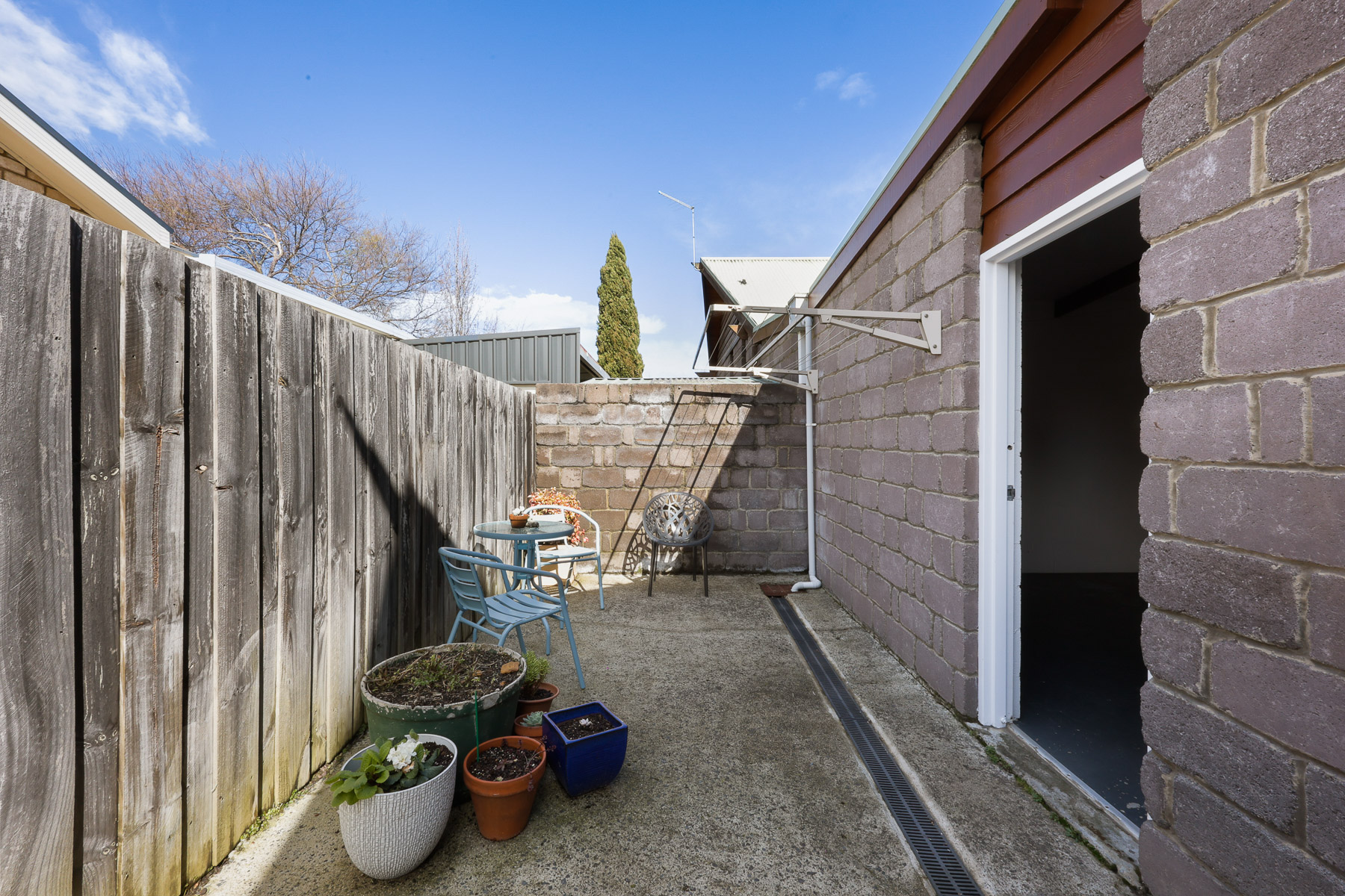 A small fully enclosed and private paved area to the side of the house is just big enough for a small café table + chairs perfect for some potted colour.