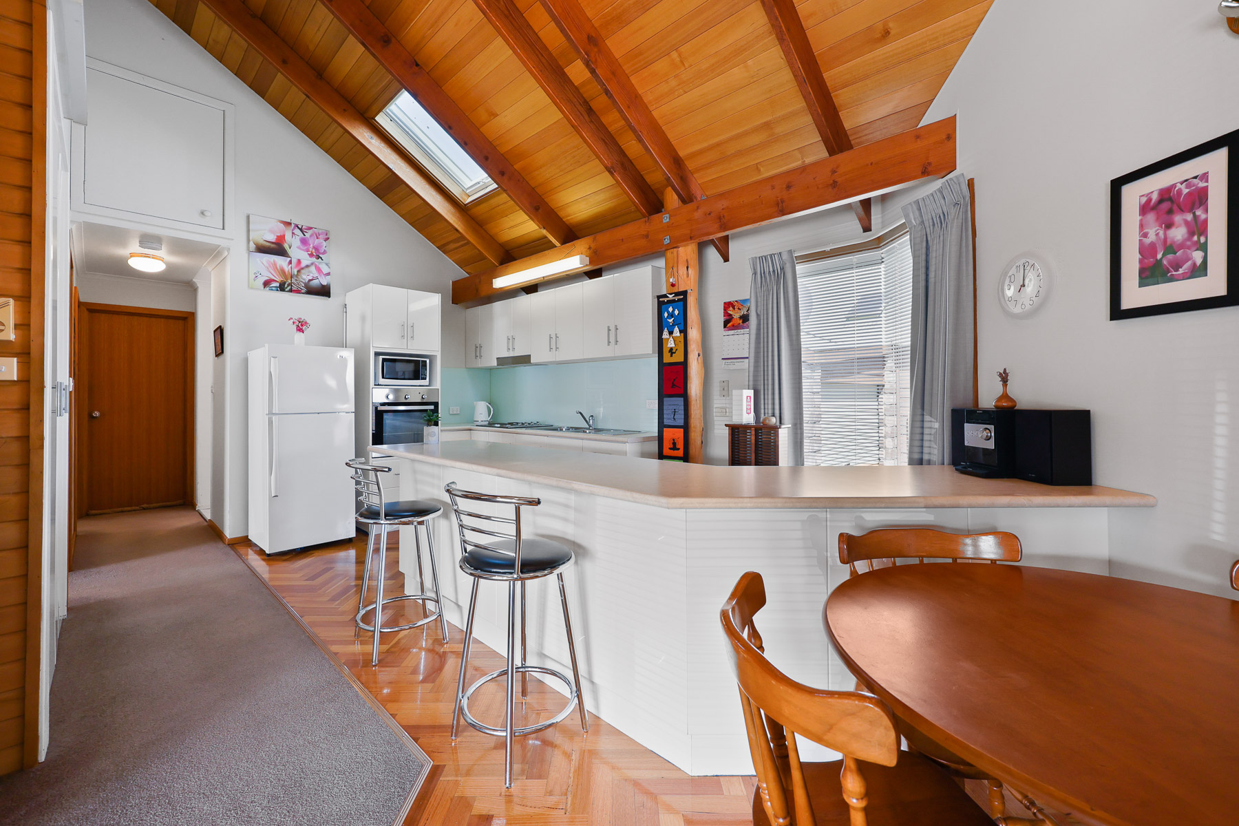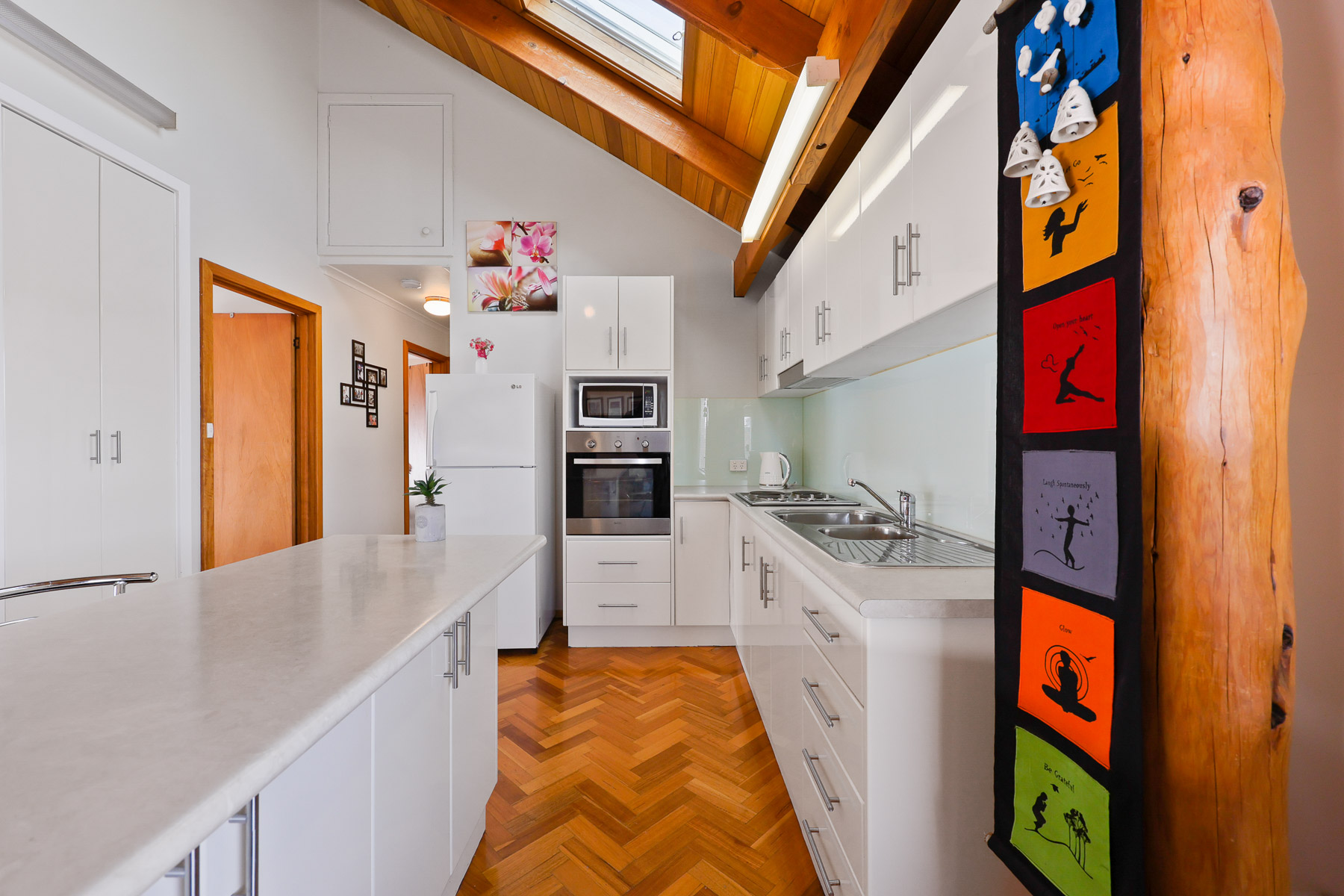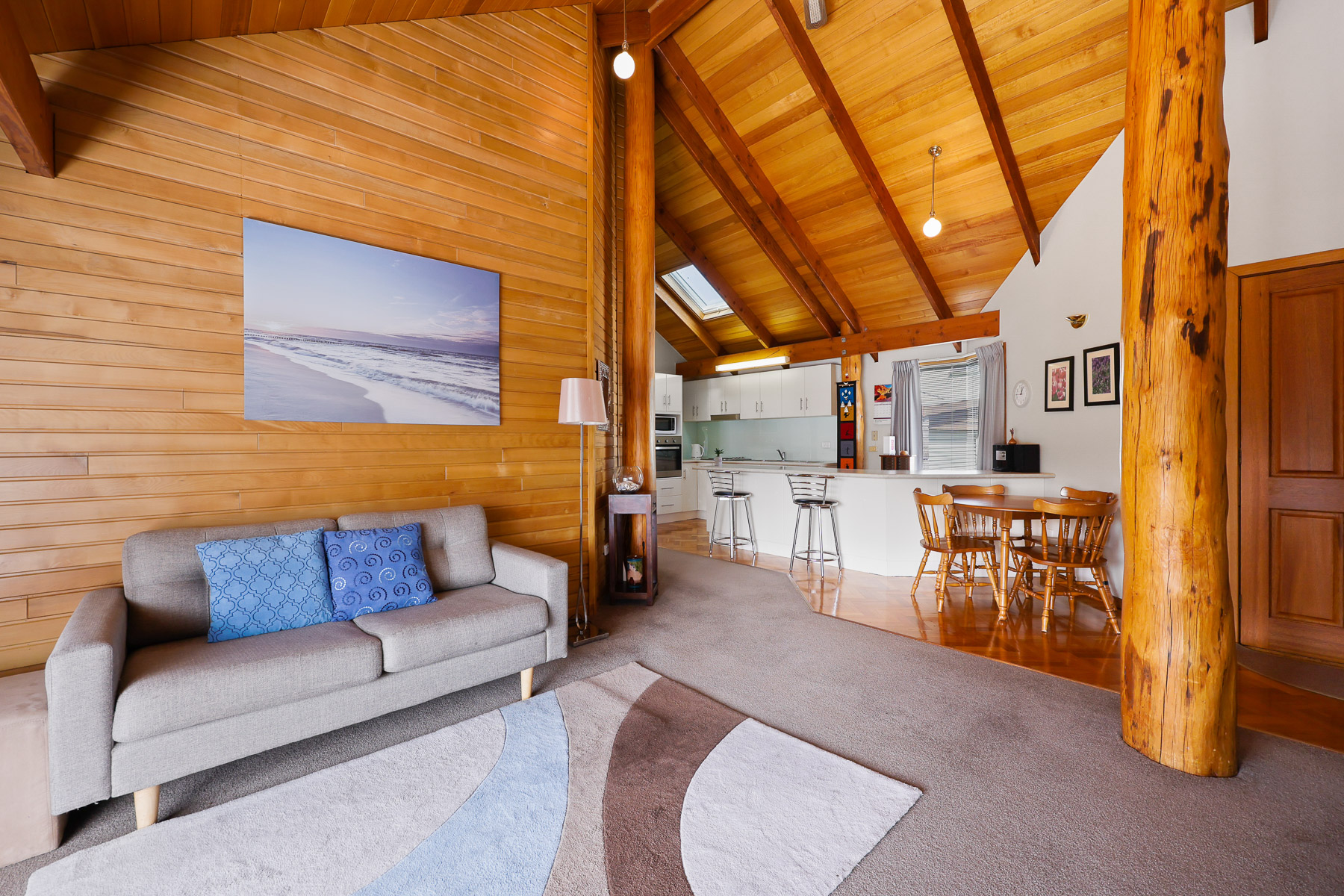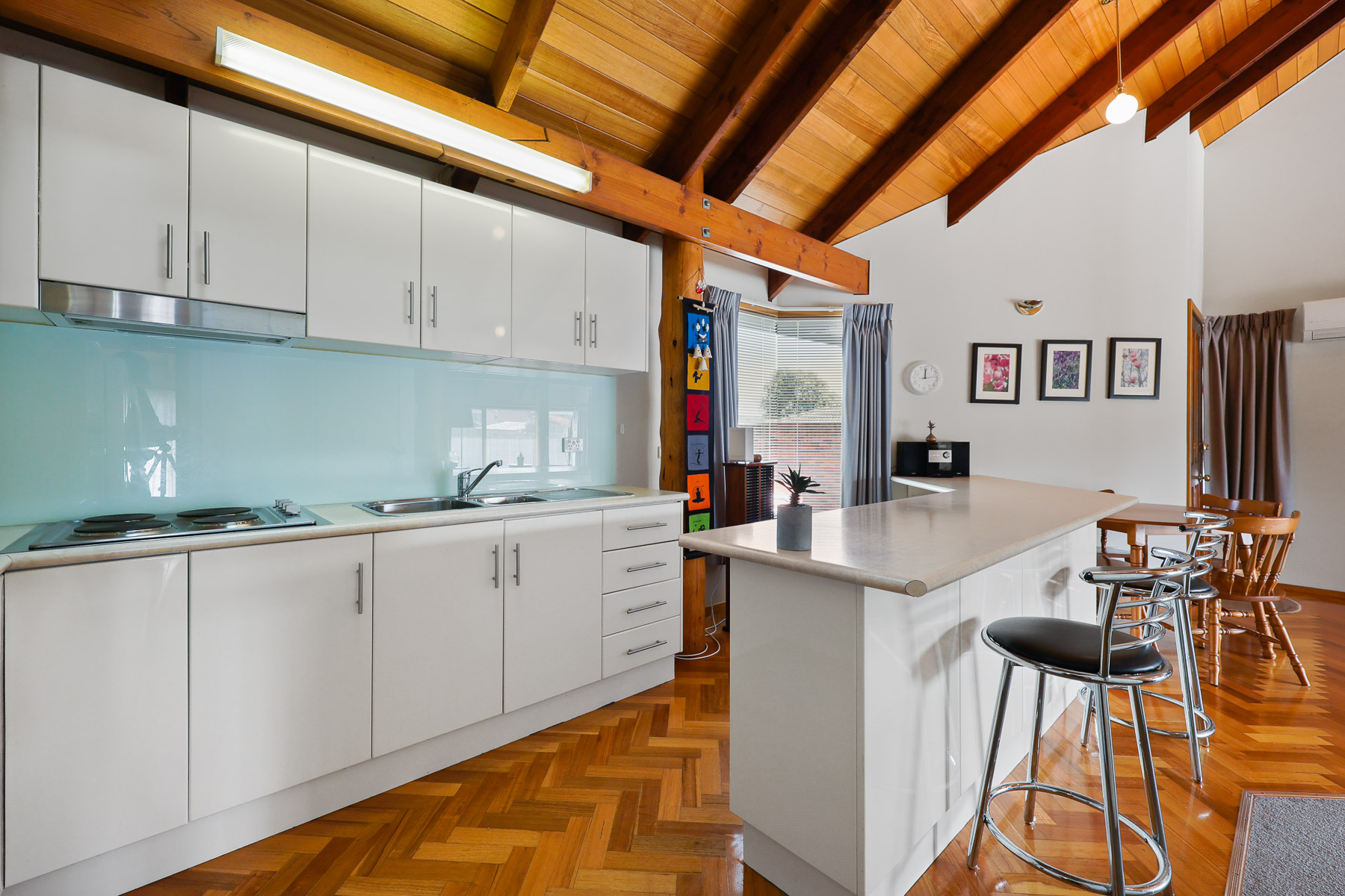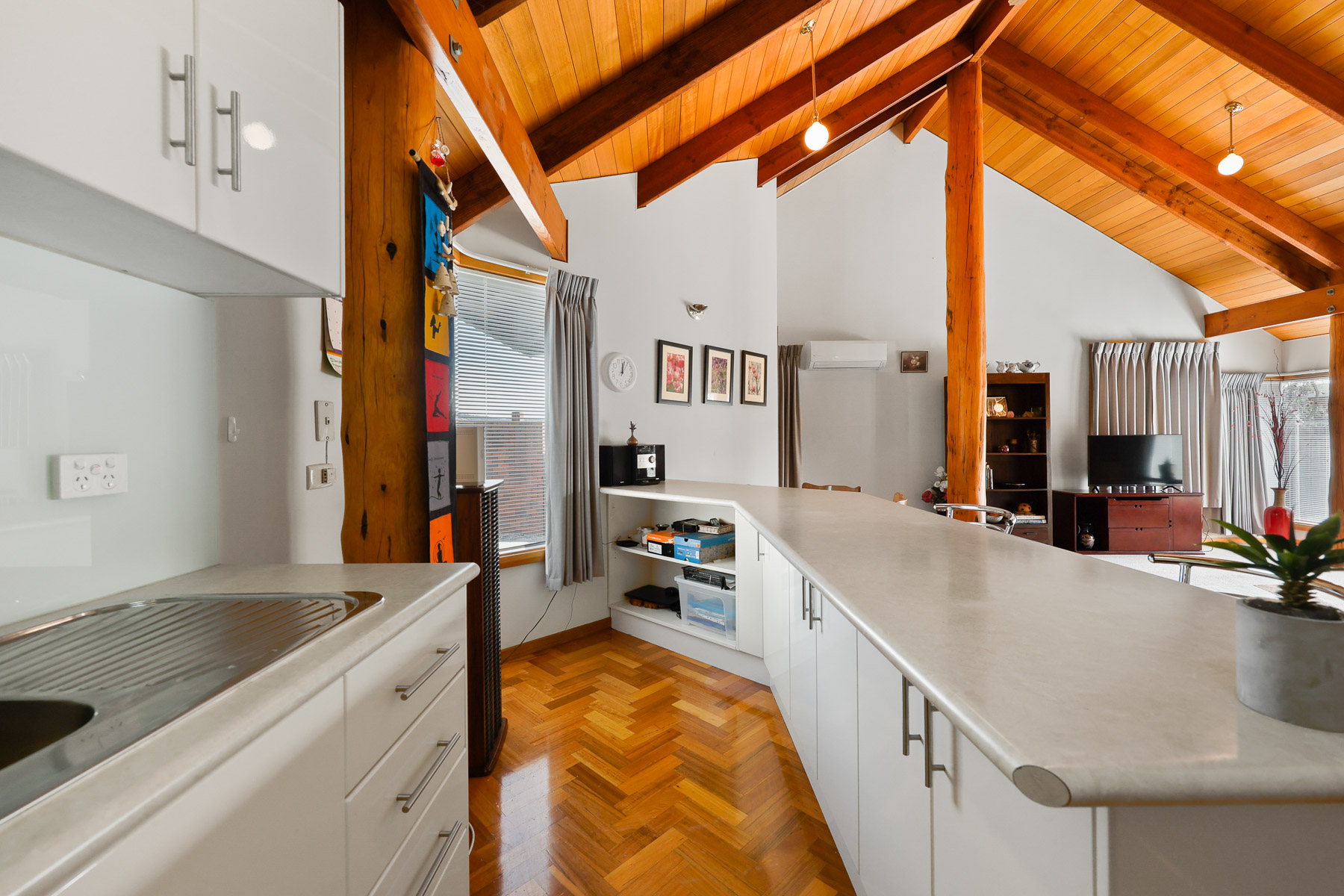 Soaring cathedral ceilings greet you on entering, along with a bright, modern kitchen with its vast breakfast bar (perfect for overflow or casual seating/dining) and its attractive timber flooring laid in a herringbone style leads you to the cosy lounge.