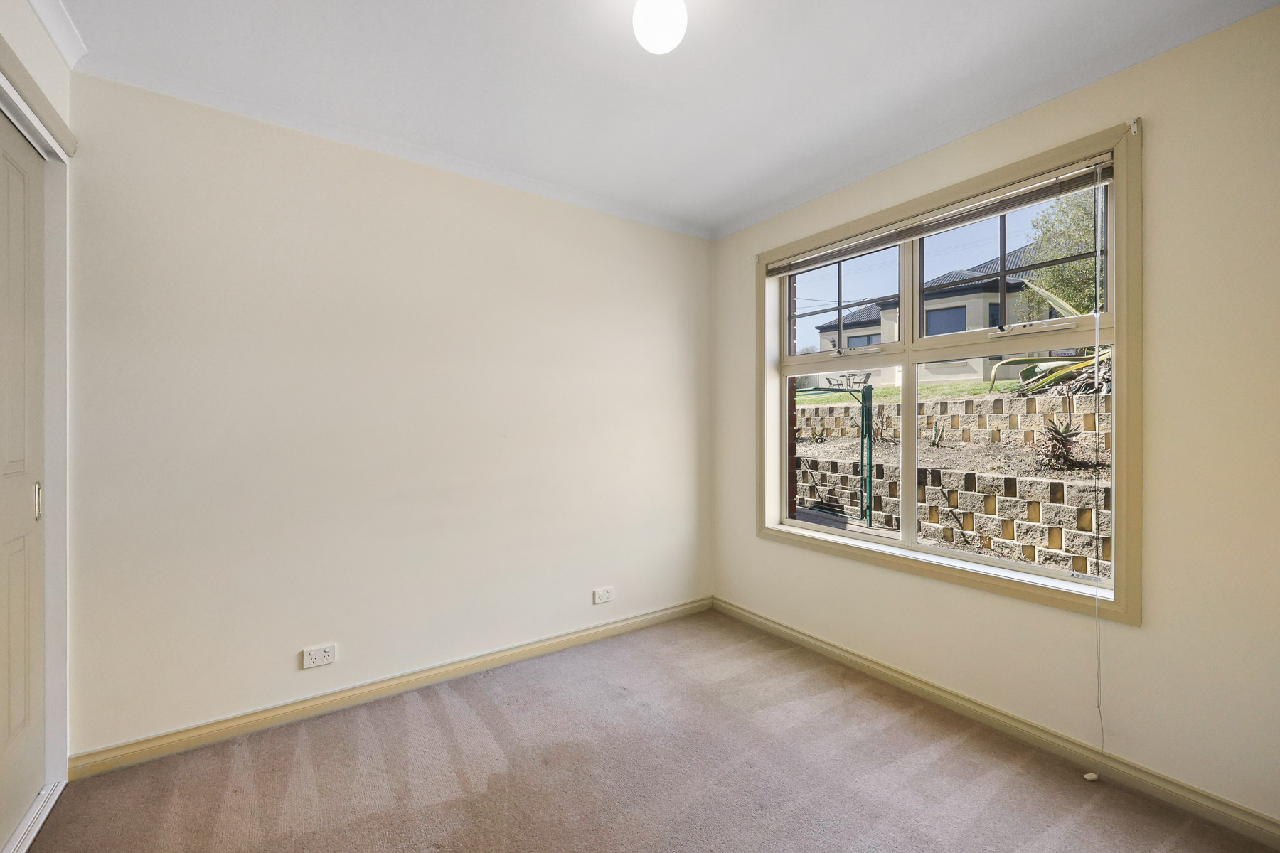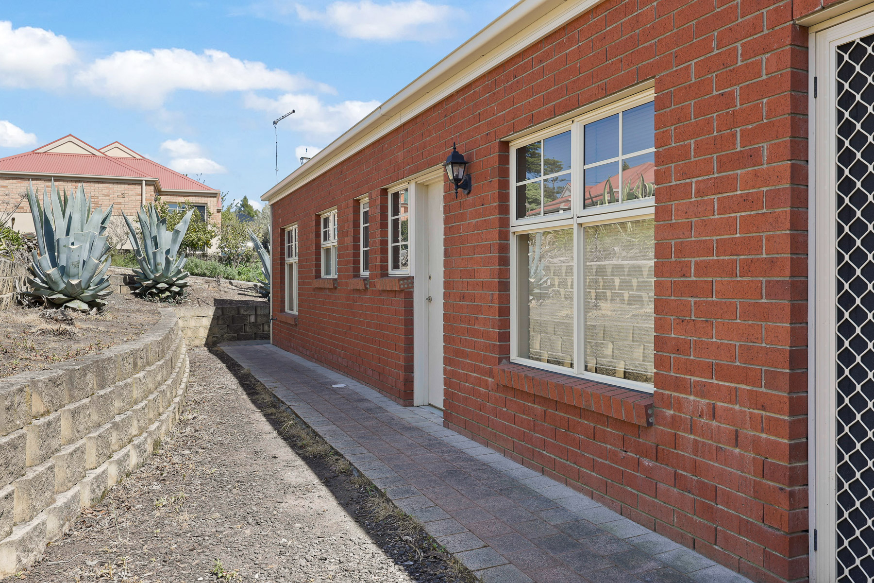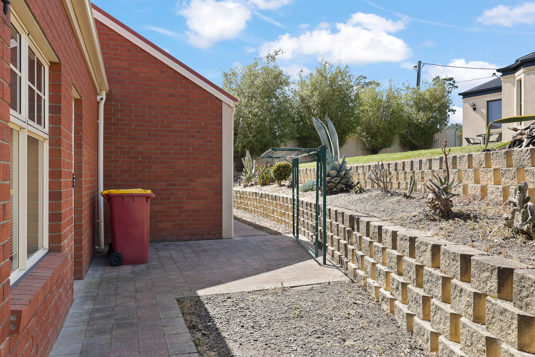 Outside the garden is low maintenance with room enough for a small outdoor table & chairs, and even a BBQ.