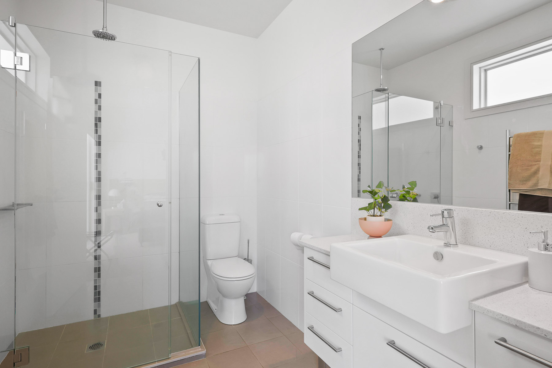 Offered fully furnished it has 3 large bedrooms (with built in wardrobes) all with adjoining ensuites and the primary bedroom with its own bath.
