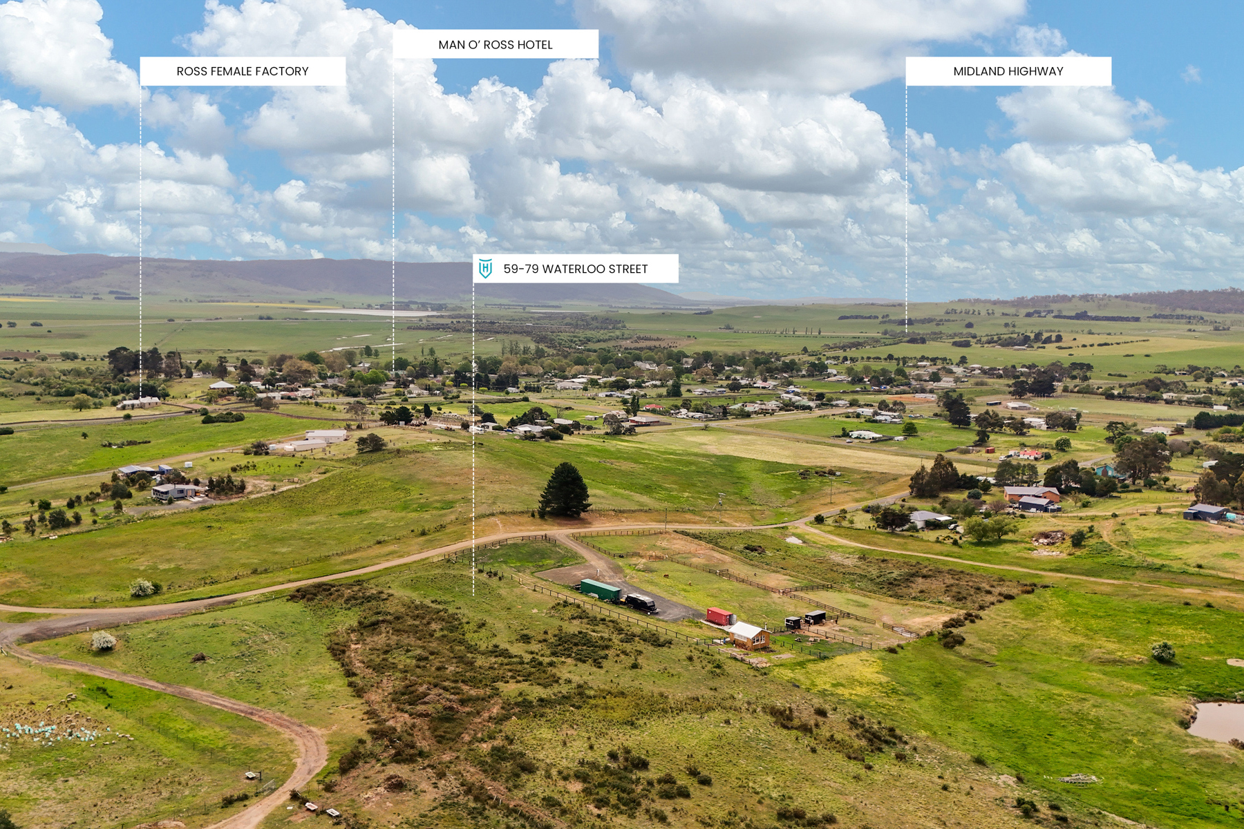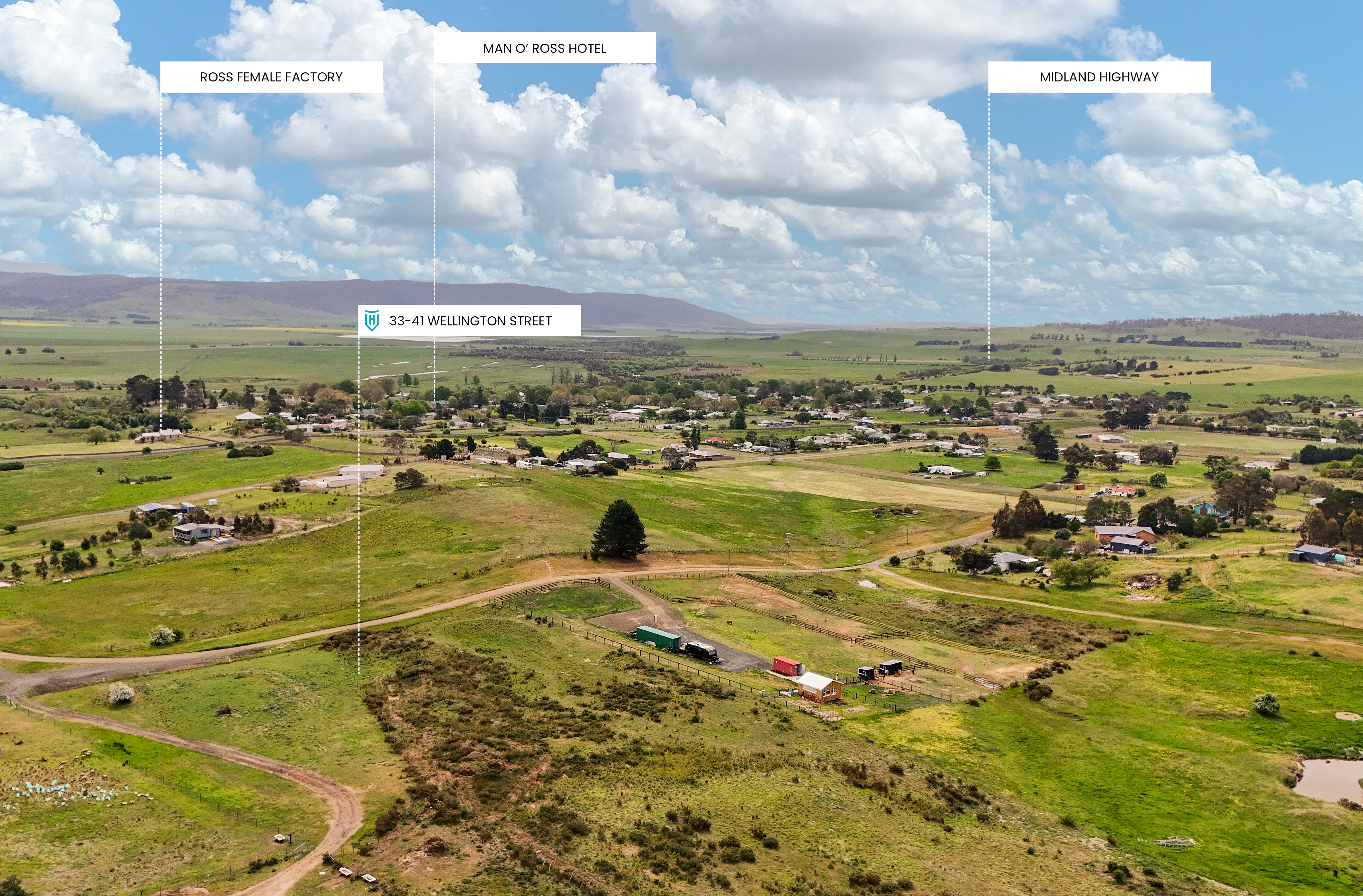 With an elevated westerly aspect over the historical Midlands township of Ross and nearby farmland, 33-41 Wellington Street is an affordable parcel of land. Offering 4523 sqm (1.117 acre) of land; the property is partly cleared and fenced along Waterloo Street.
