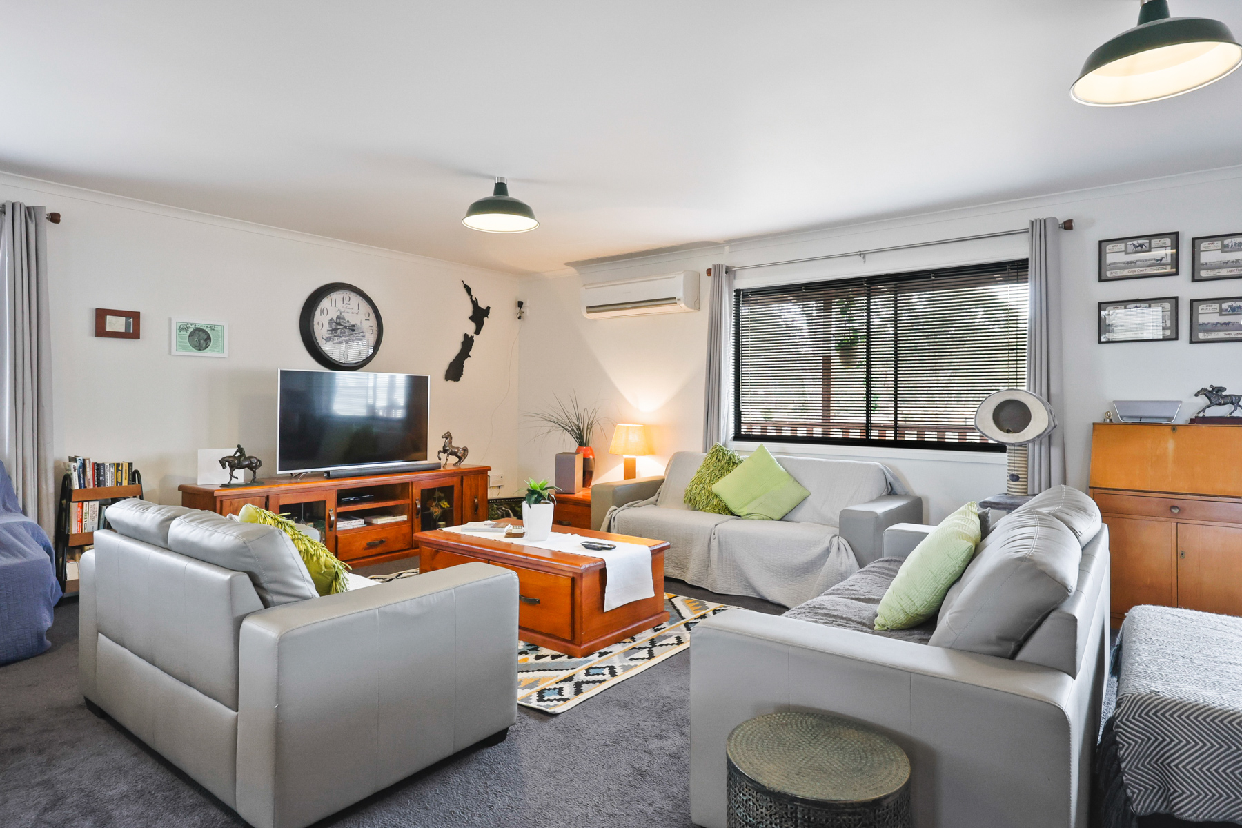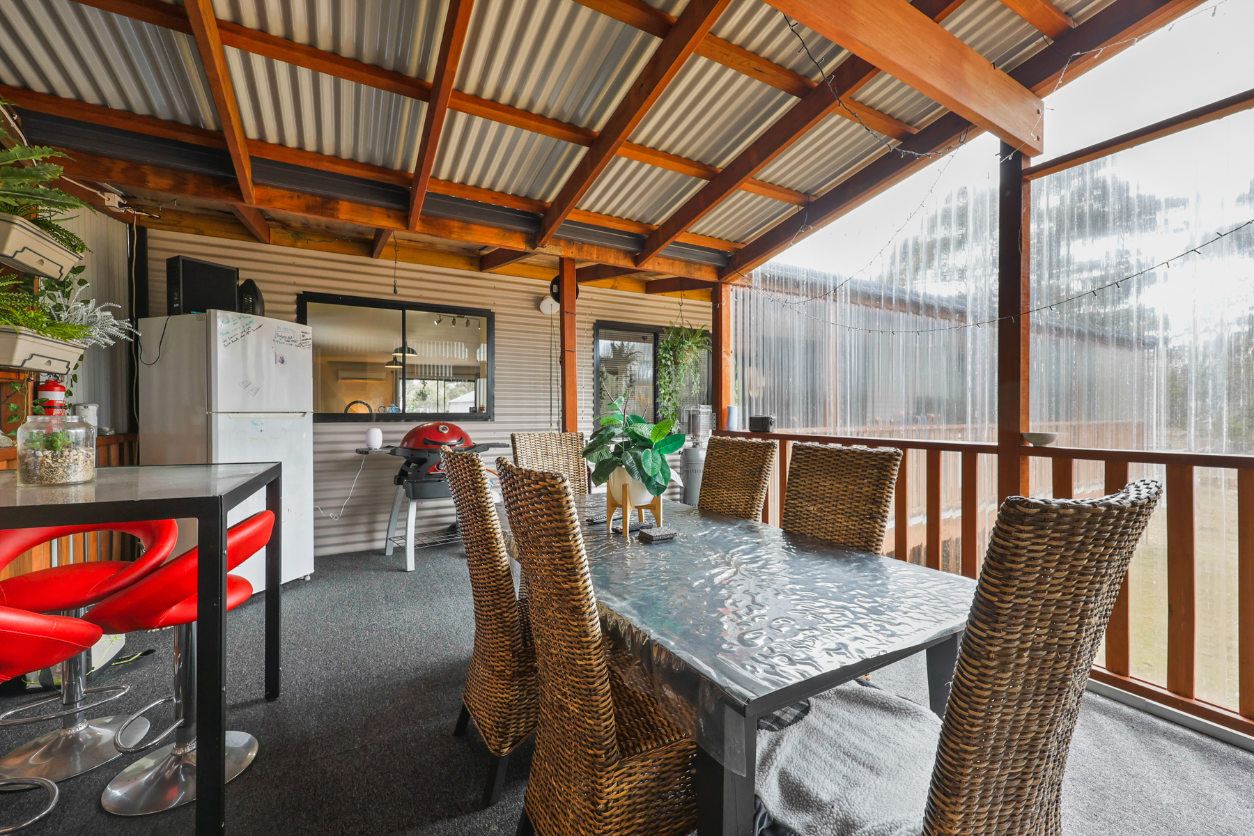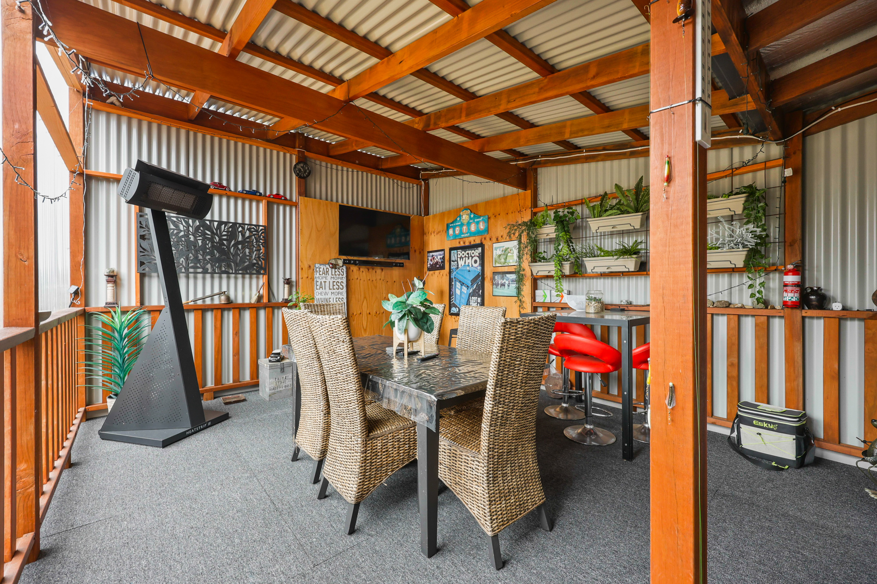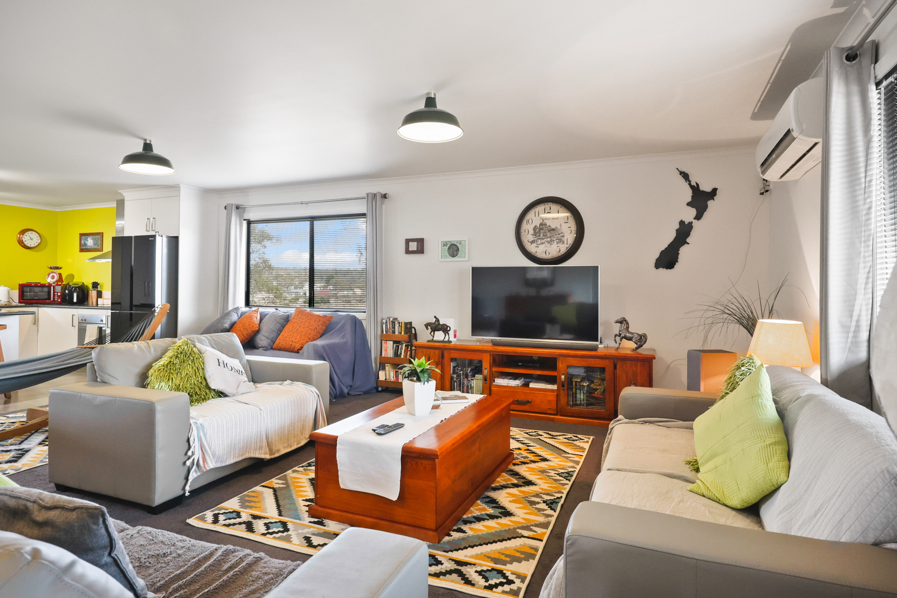 • 10m x 8m living/dining area, heated by free-standing fan forced wood fire & Mitsubishi reverse cycle