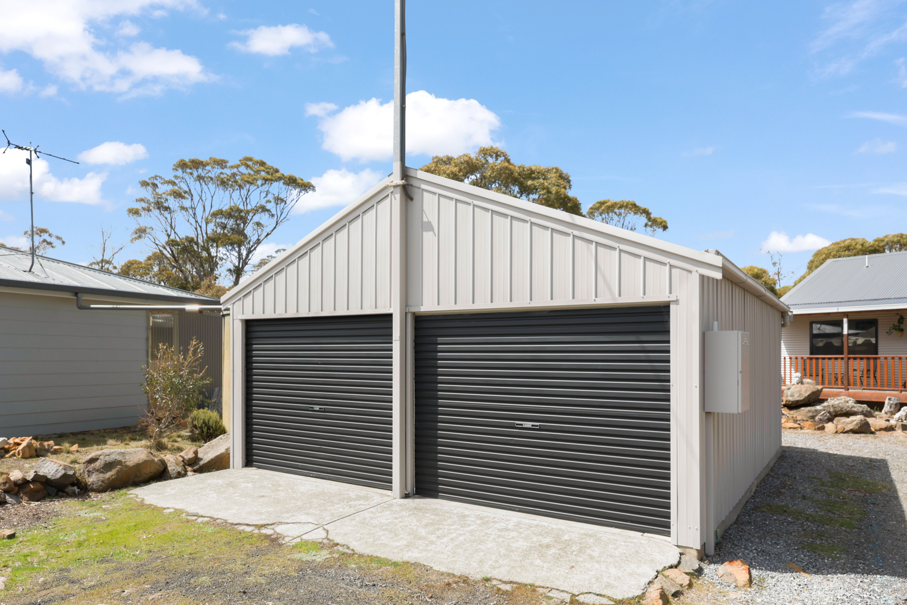 • Large Colorbond™ 8mx6m lock-up workshop/garage with easy access from Anglers Crescent ideal for