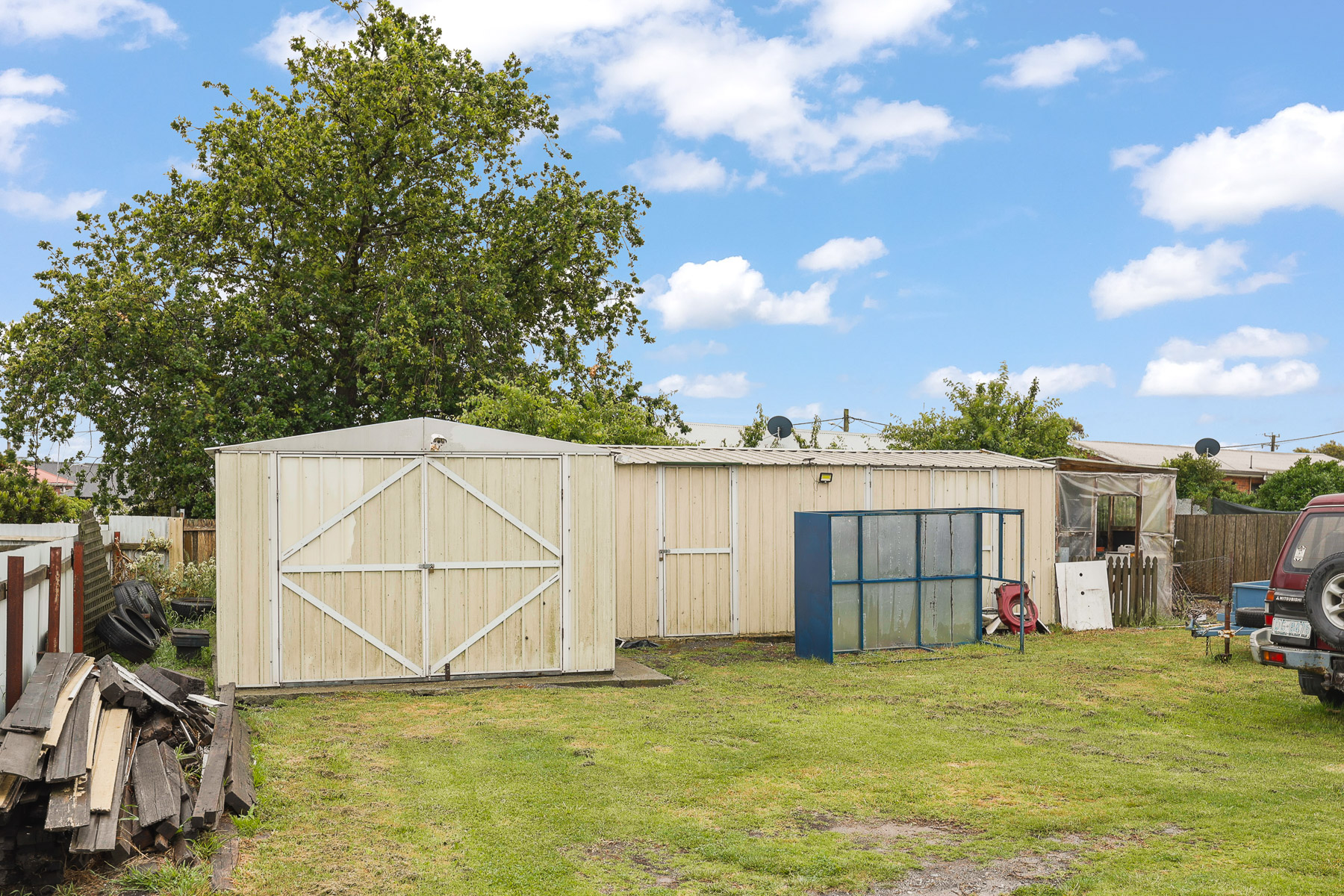 The fully fenced exterior enhances the quaint cottage feel, with the front picket fence adding to the home's kerb appeal. In the rear, there's ample shedding for storage or hobbies, ensuring practicality matches the property's aesthetic charm.
