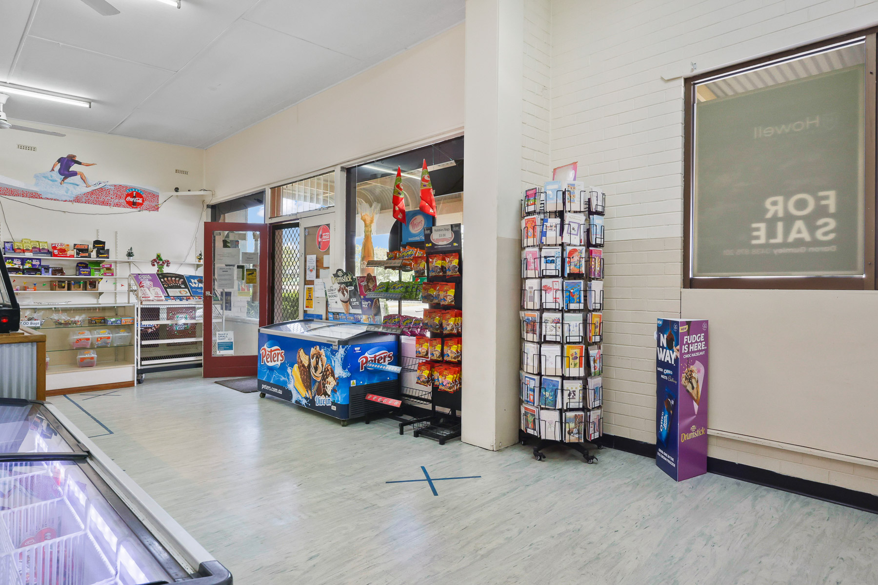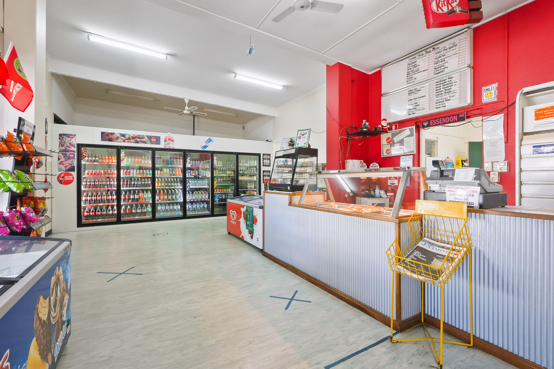 The commercial side boasts an inviting sales area with good street frontage. At the back, the well-equipped kitchen, office space, and a spacious walk-in cool room support the thriving business. The shop's name, 'School Shop', carries a legacy, perfectly positioned opposite local primary and secondary schools.