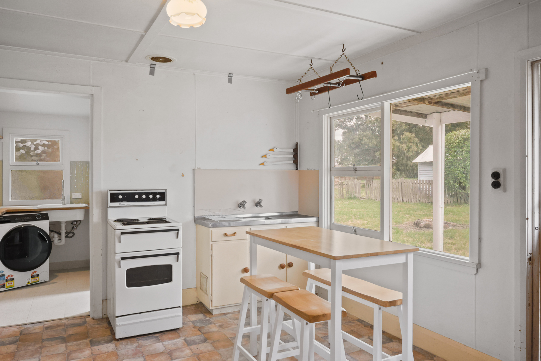 The cottage maintains its original country appeal with a timber finished kitchen/dining room warmed by an enclosed wall woodfire place. A number of cupboards, a refrigerator and table setting will remain with the sale of the cottage.