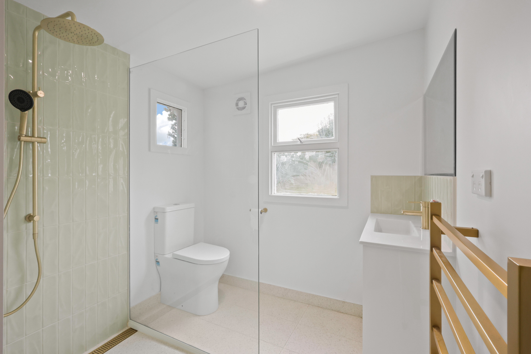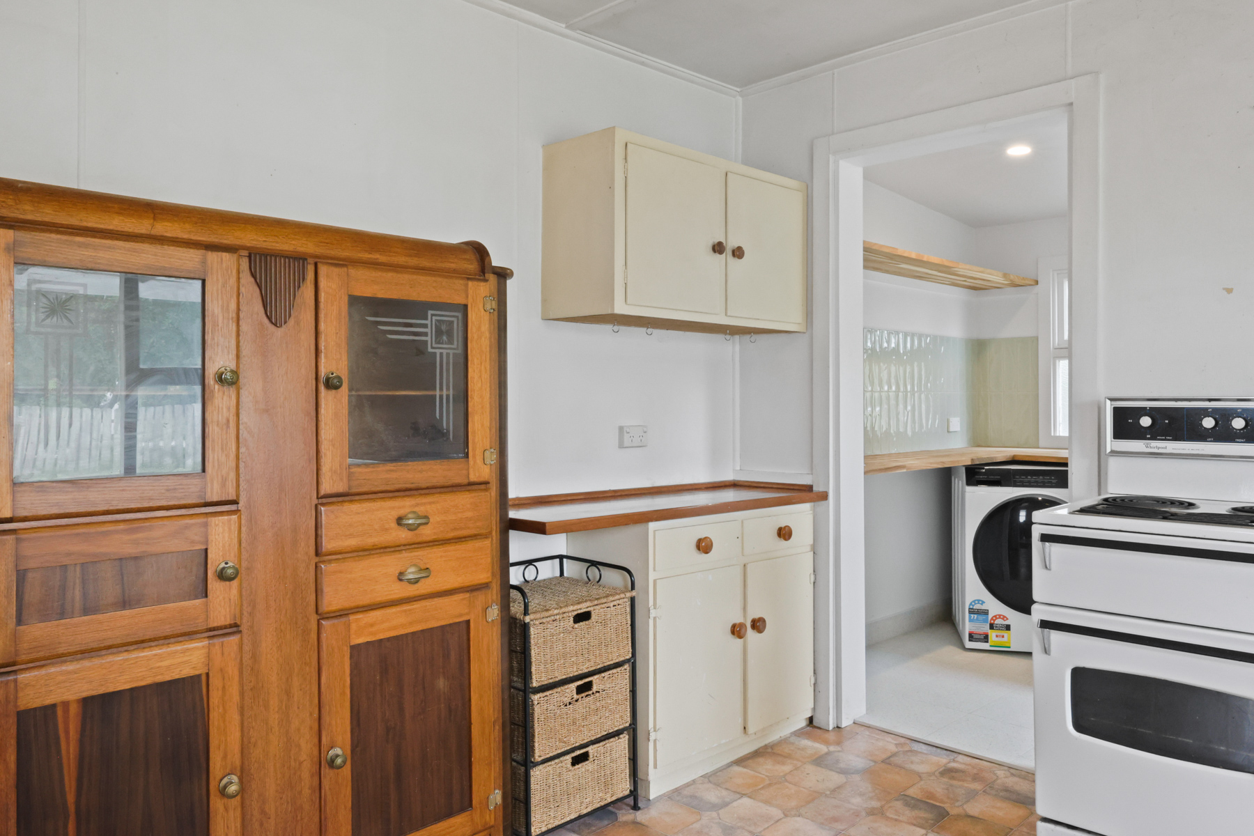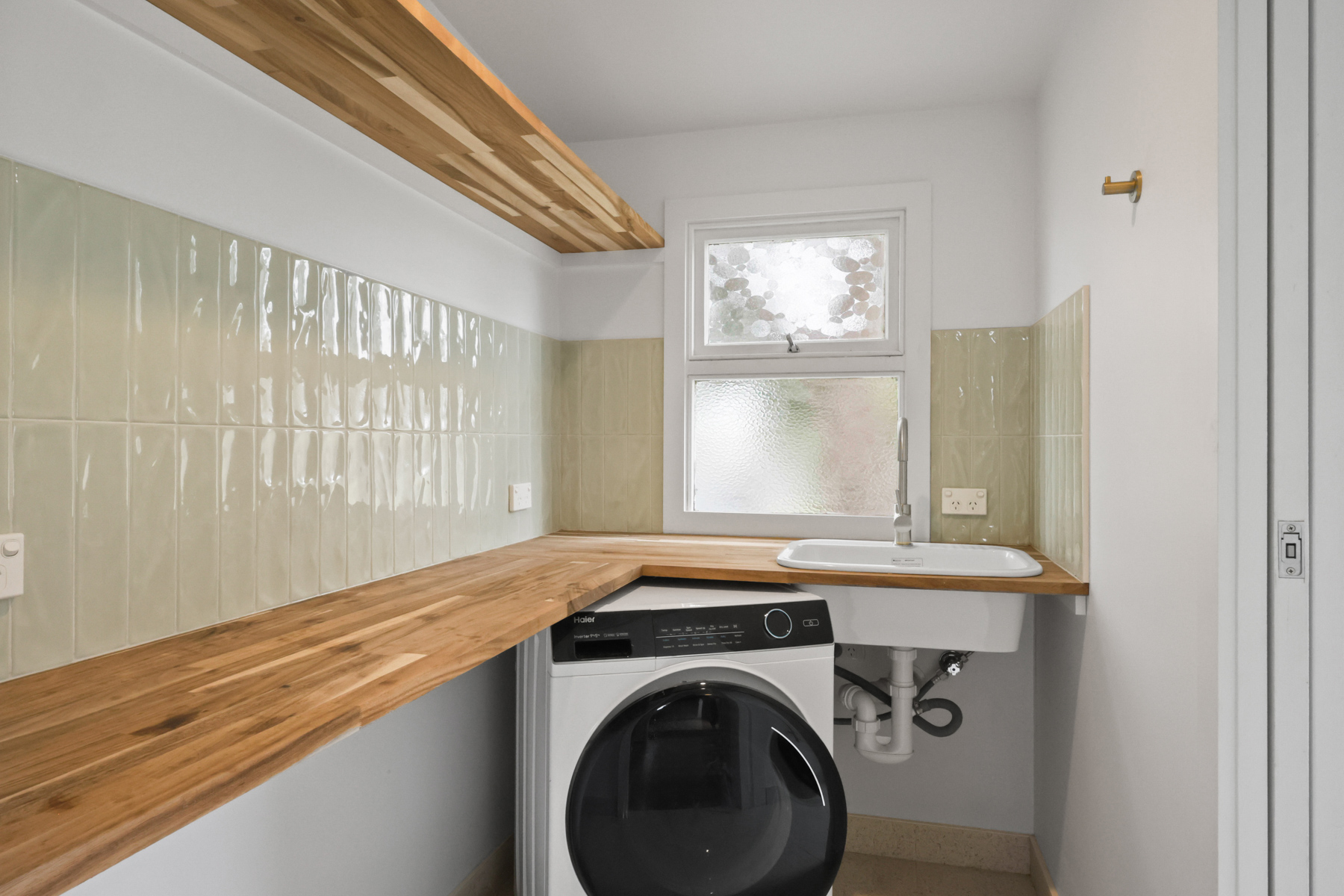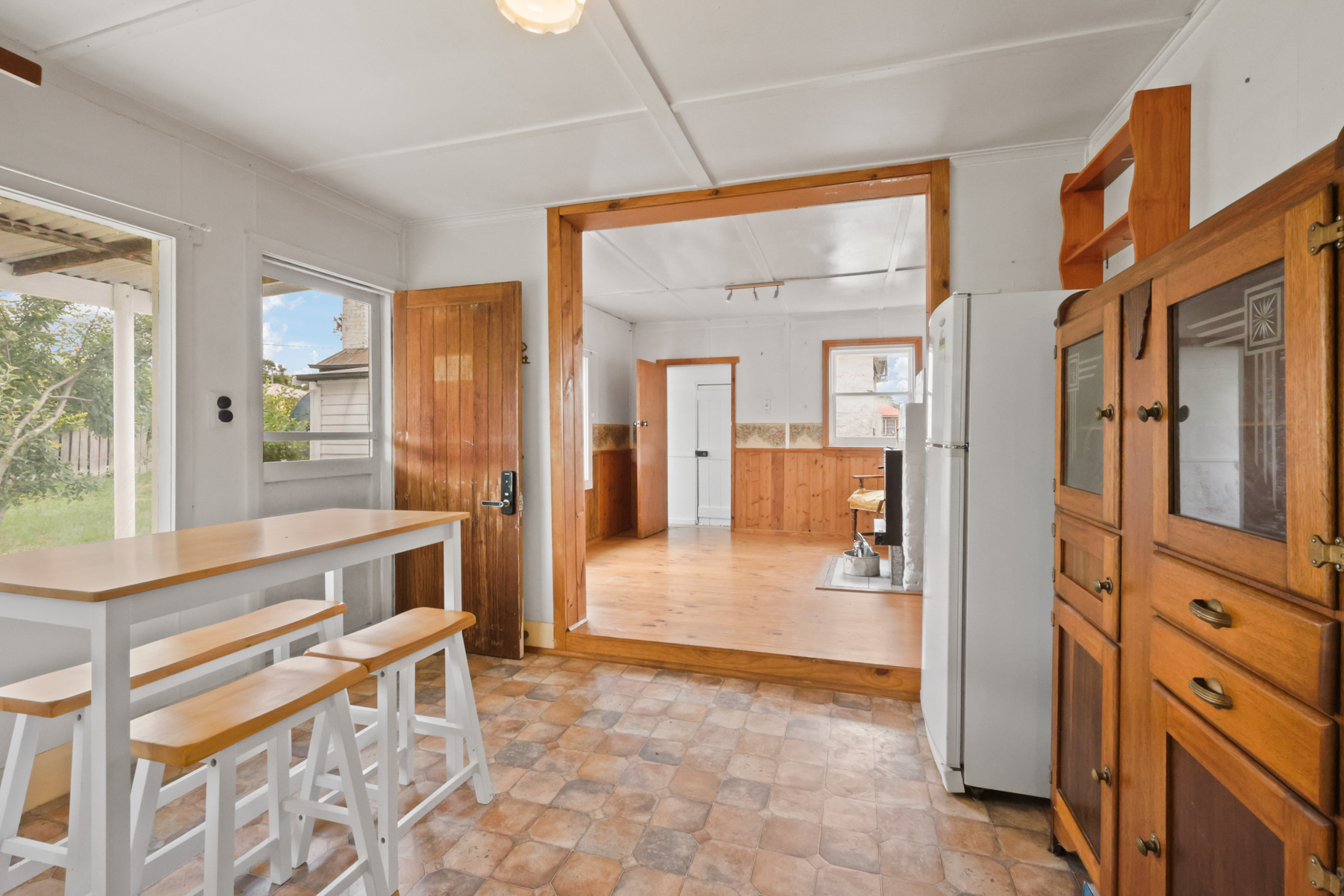A weatherboard extension provides an open plan dining and kitchen with a combined laundry and bathroom. Both the bathroom and laundry have recently undergone a tasteful renovation.