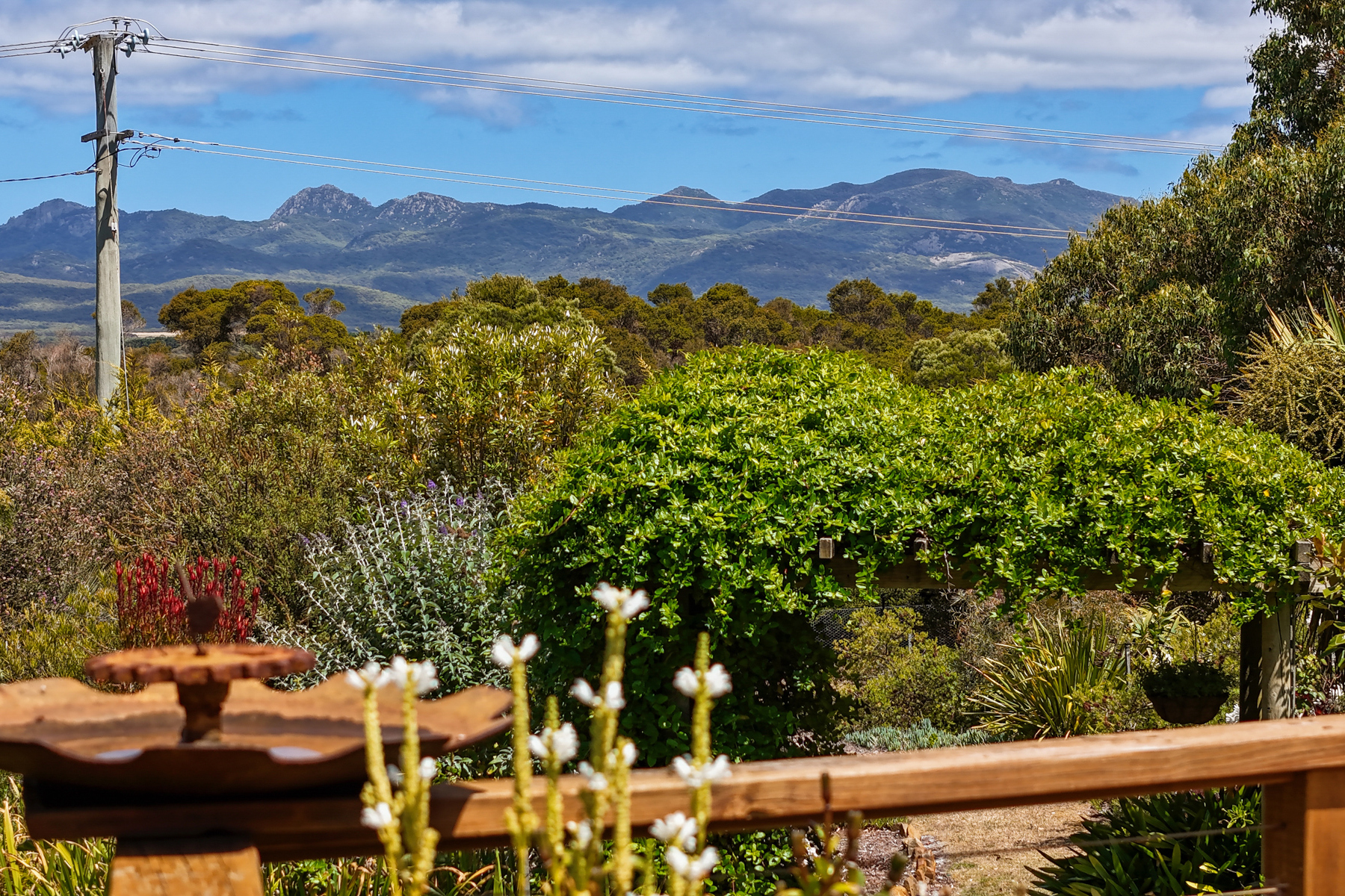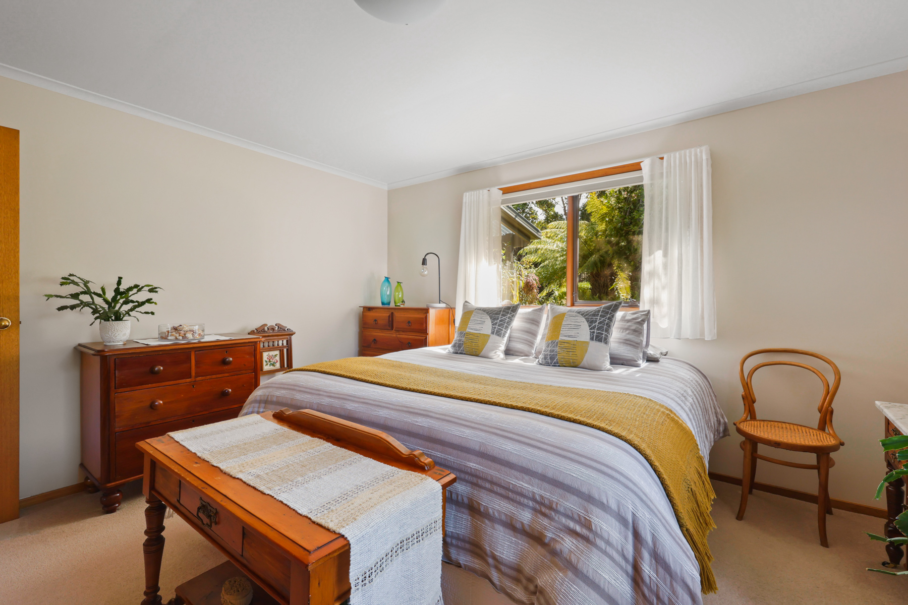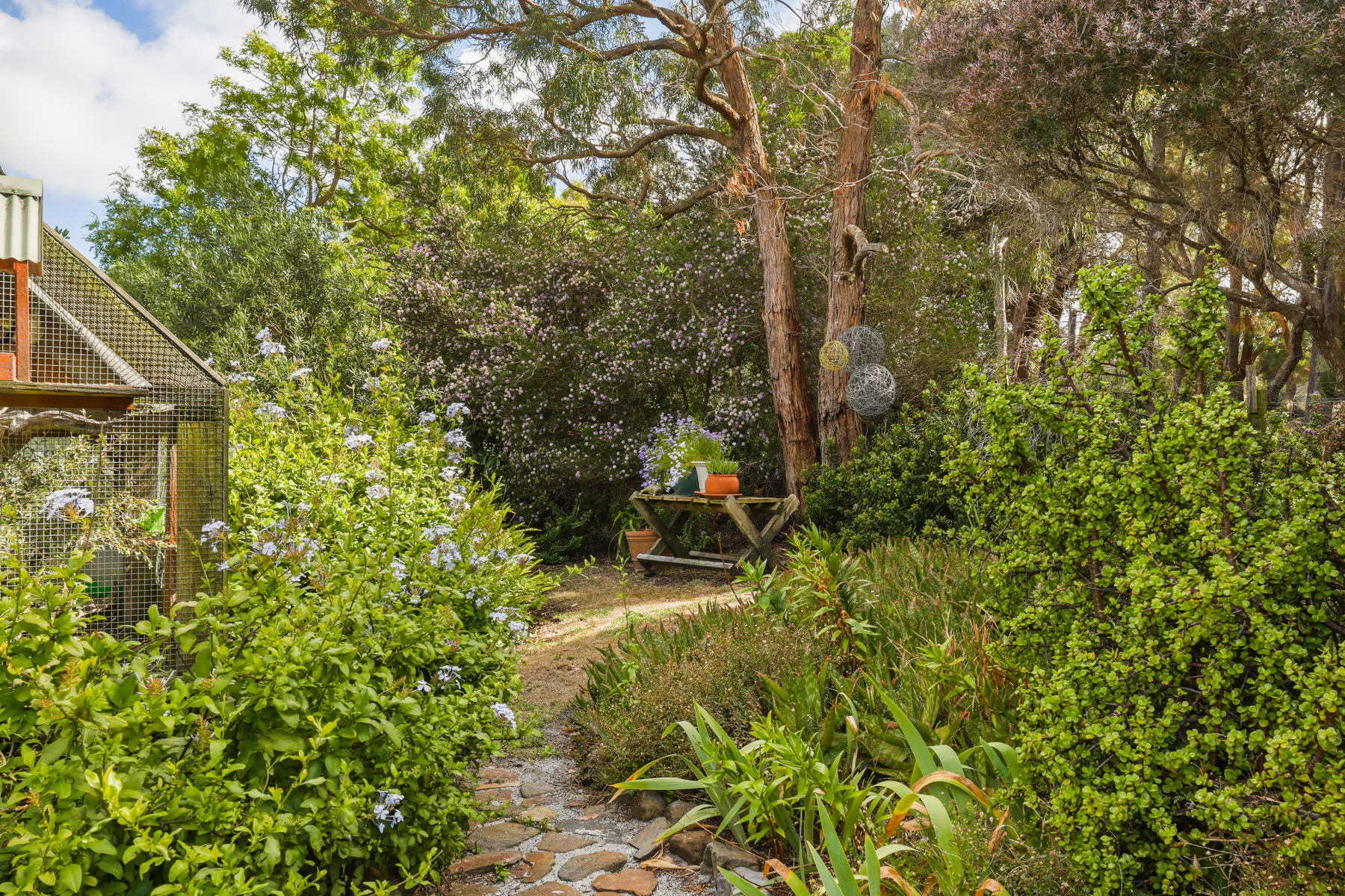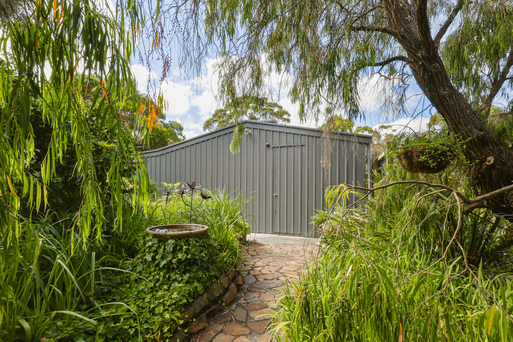 The gardens are a masterpiece—meticulously maintained with a stunning array of trees, ferns, flowering plants, native shrubs, and garden features. Mulched pathways wind through the various garden zones, attracting birdlife and providing natural shade in all the right places. A thoughtfully designed watering system ensures easy garden maintenance, while drawing an abundance of vibrant blue fairy wrens and honey eaters, who flit happily among the lush greenery and flowers.