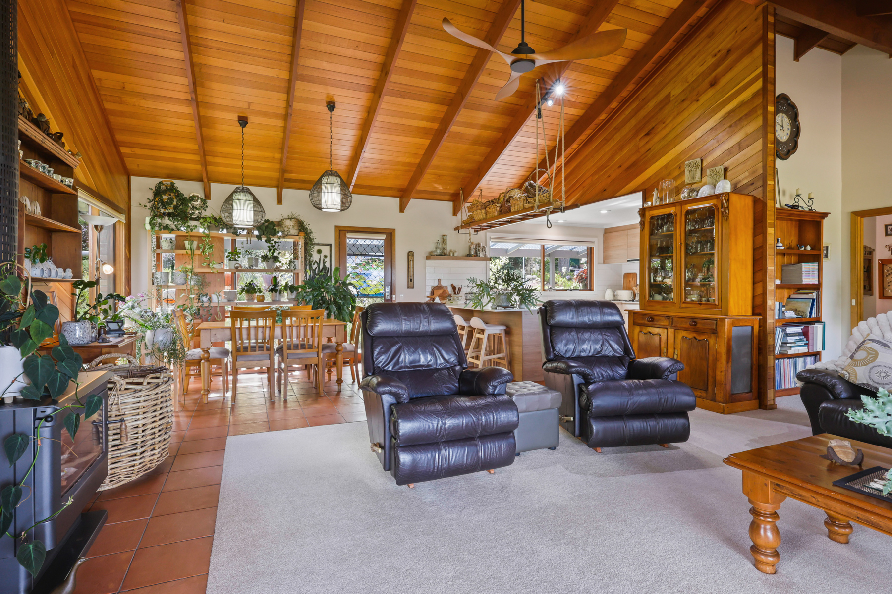 The lounge area is a true highlight, offering neutral toned carpeting, high cathedral ceilings with hardwood timber detailing, reverse cycle air conditioning, wood fired heater and impressive views from every window.