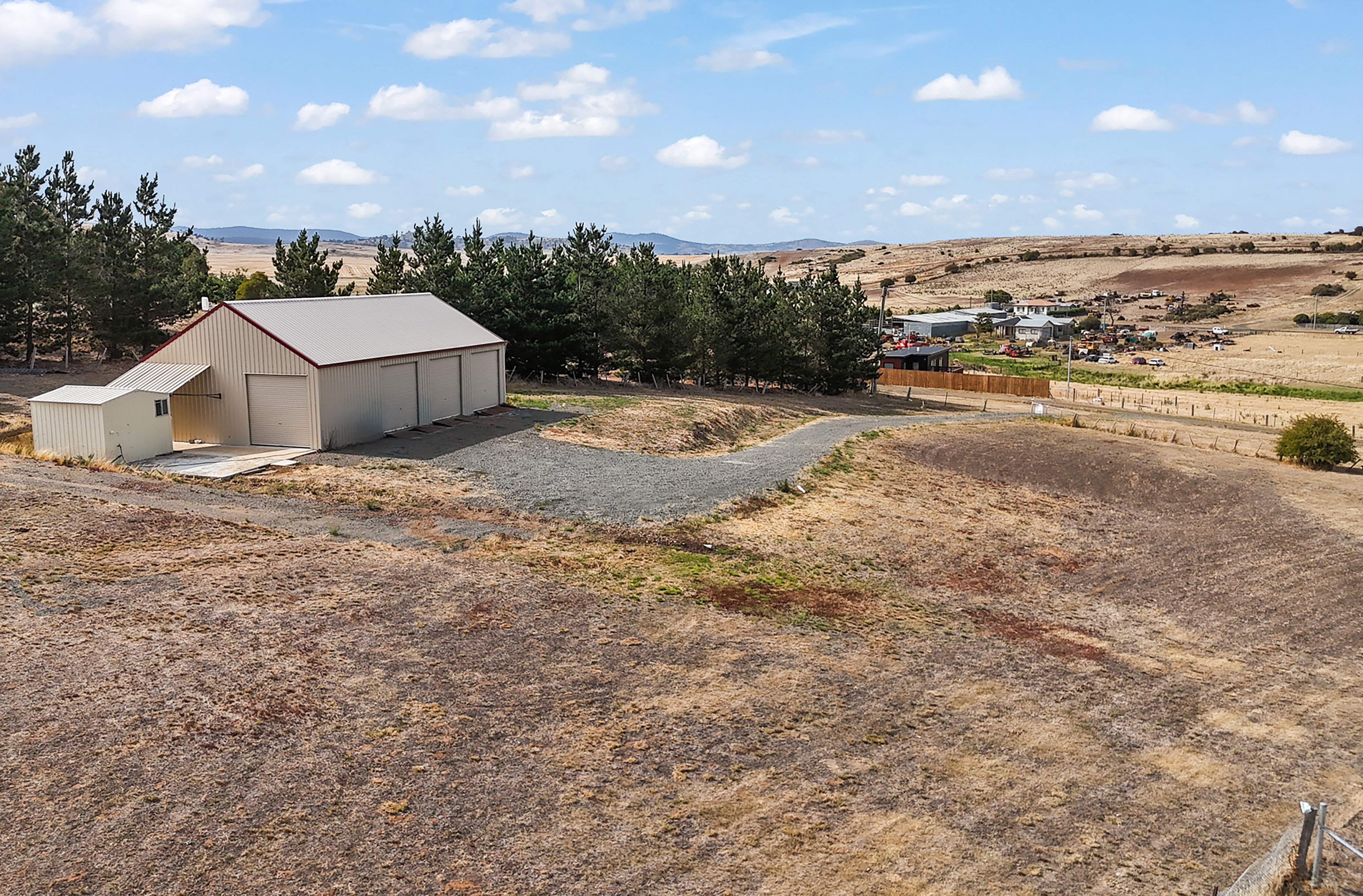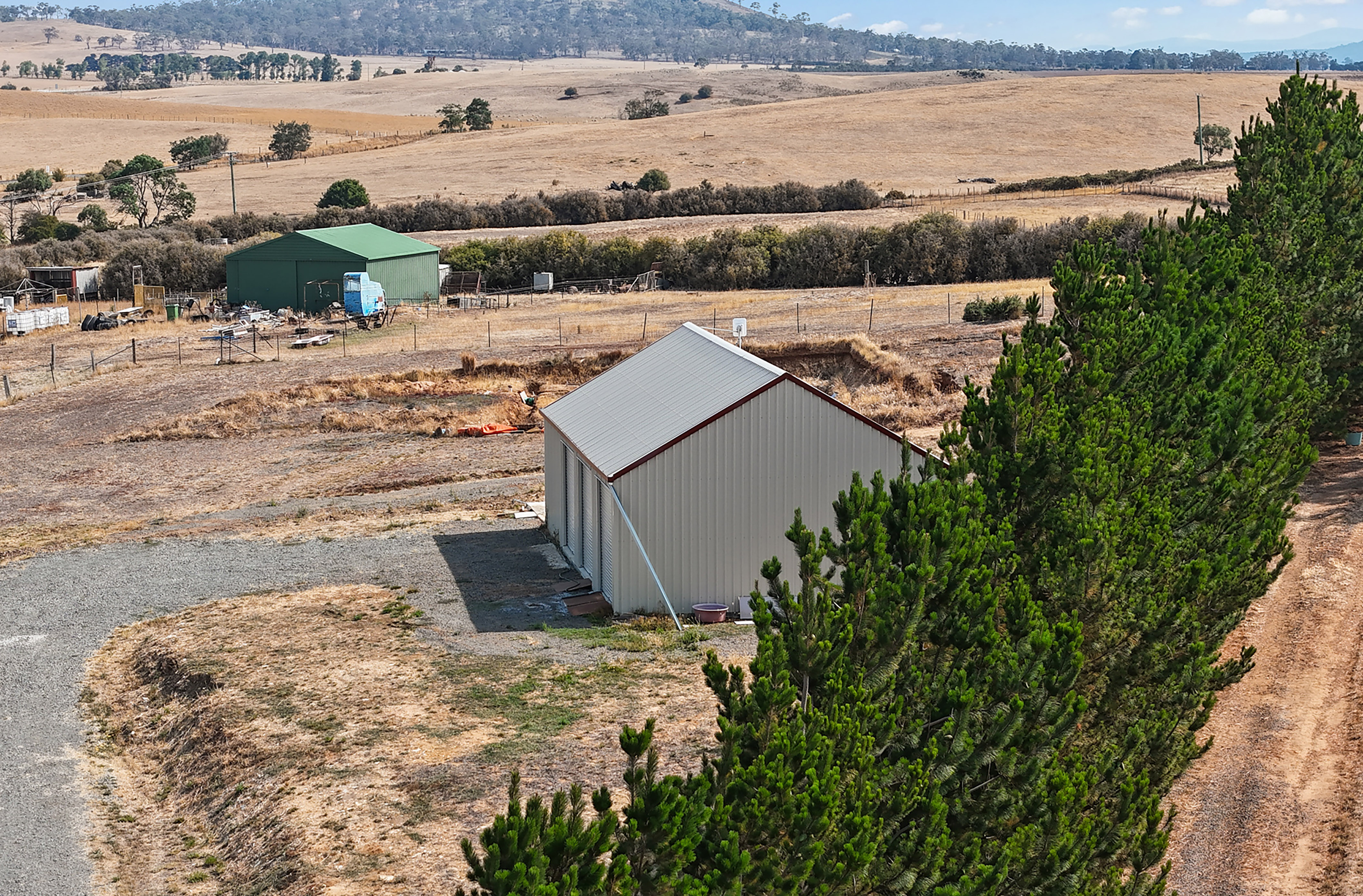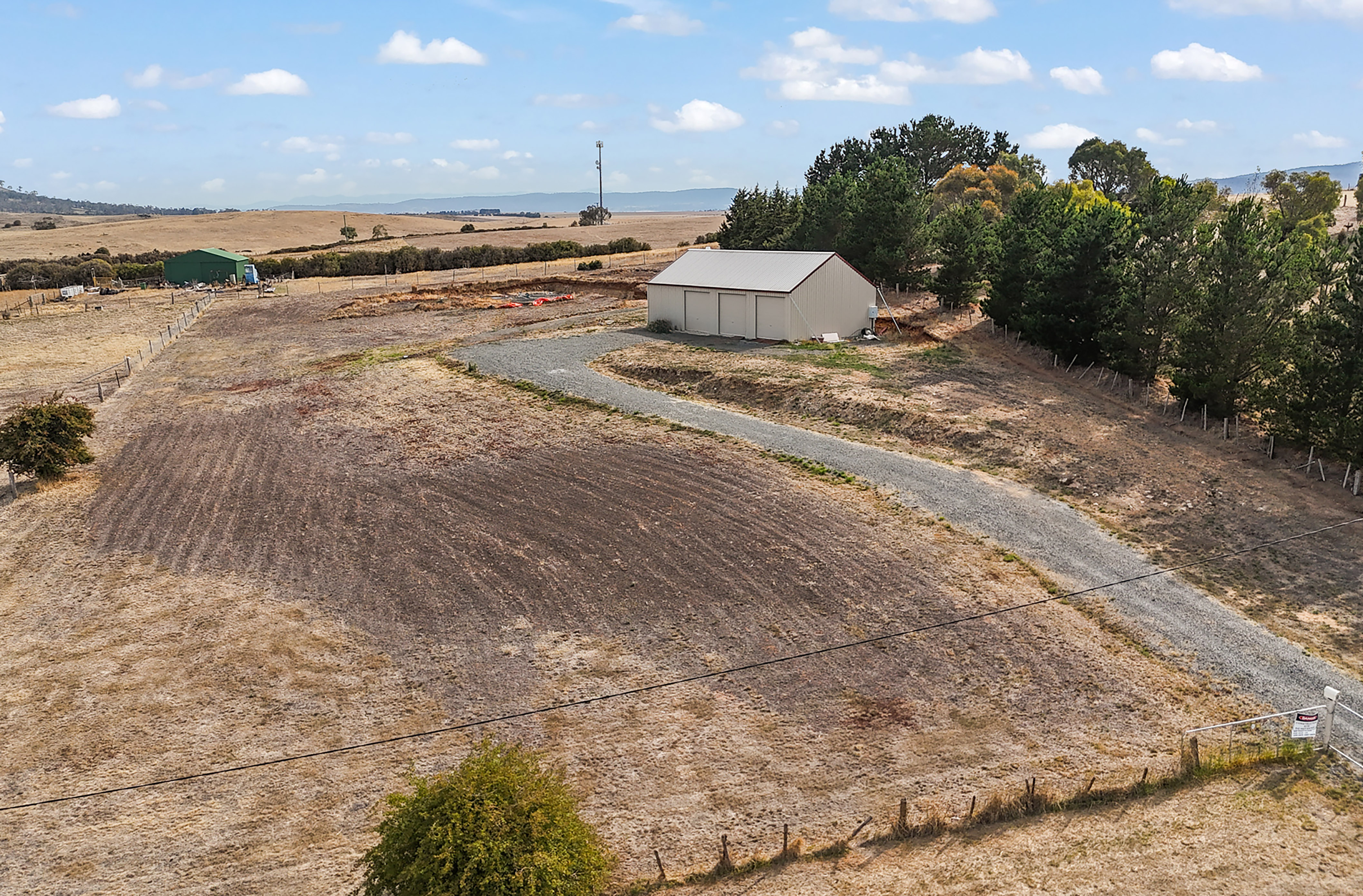 The property offers 180-degree views of the village of Ross, nearby farm land and further on to mountains - Somercotes cherry farm to the south, Miller Bluff to the west and Stacks Bluff (part of the Ben Lomond National Park) to the north.