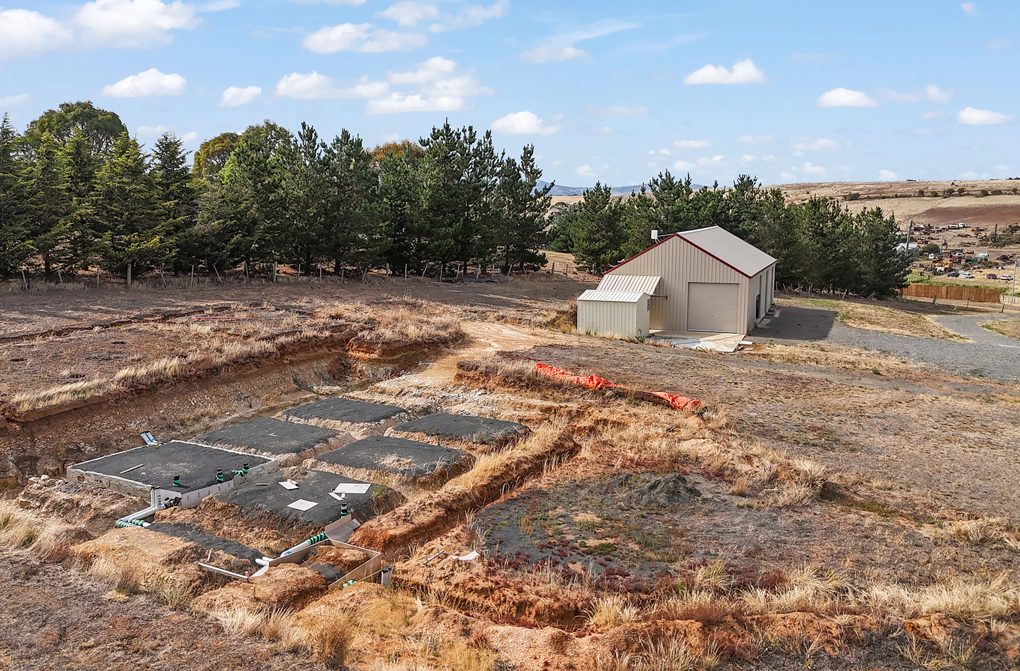 Nestled upon the eastern side of the township, this flat to sloping parcel 5008 m2 (100m length by 50m) offers the following improvements: