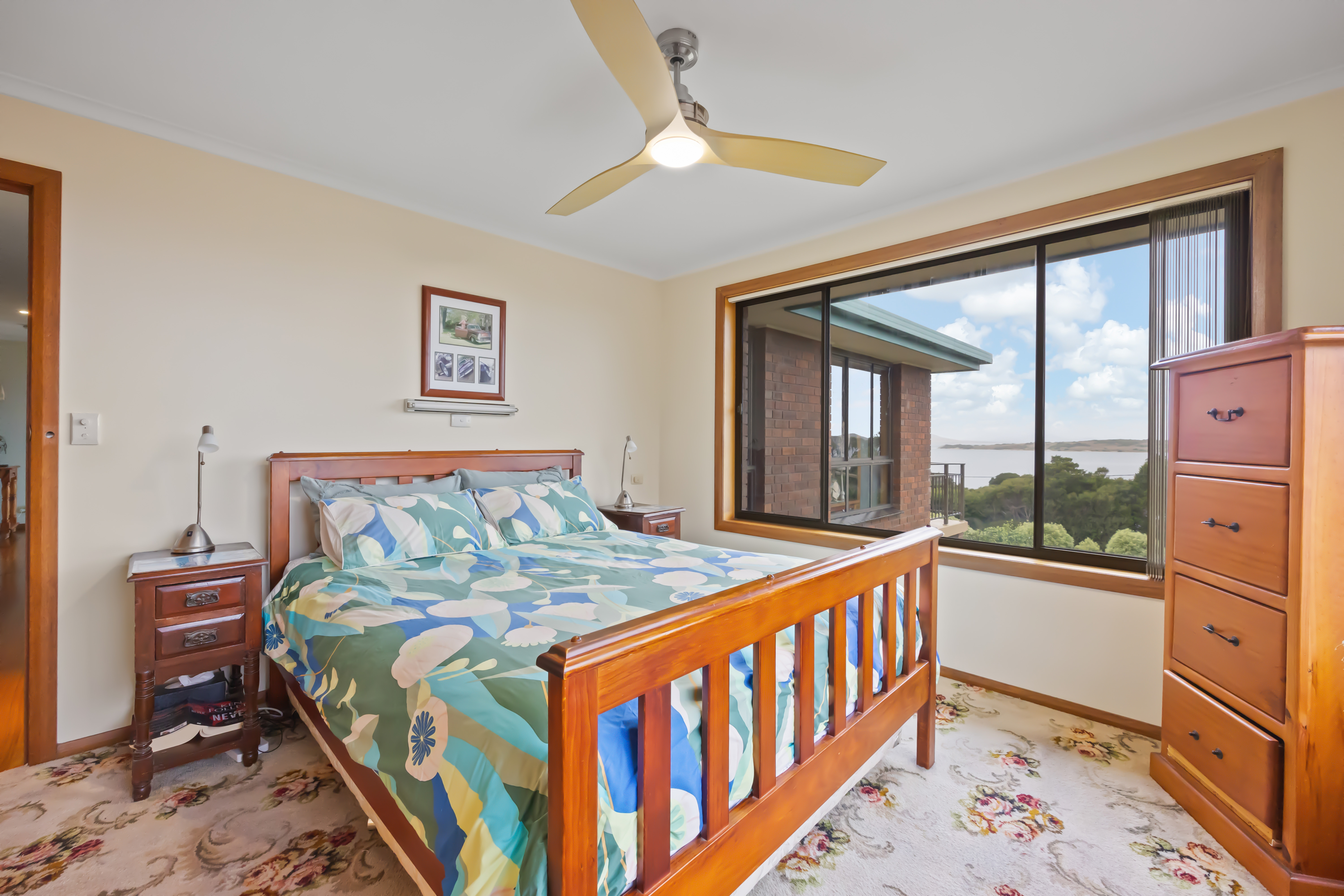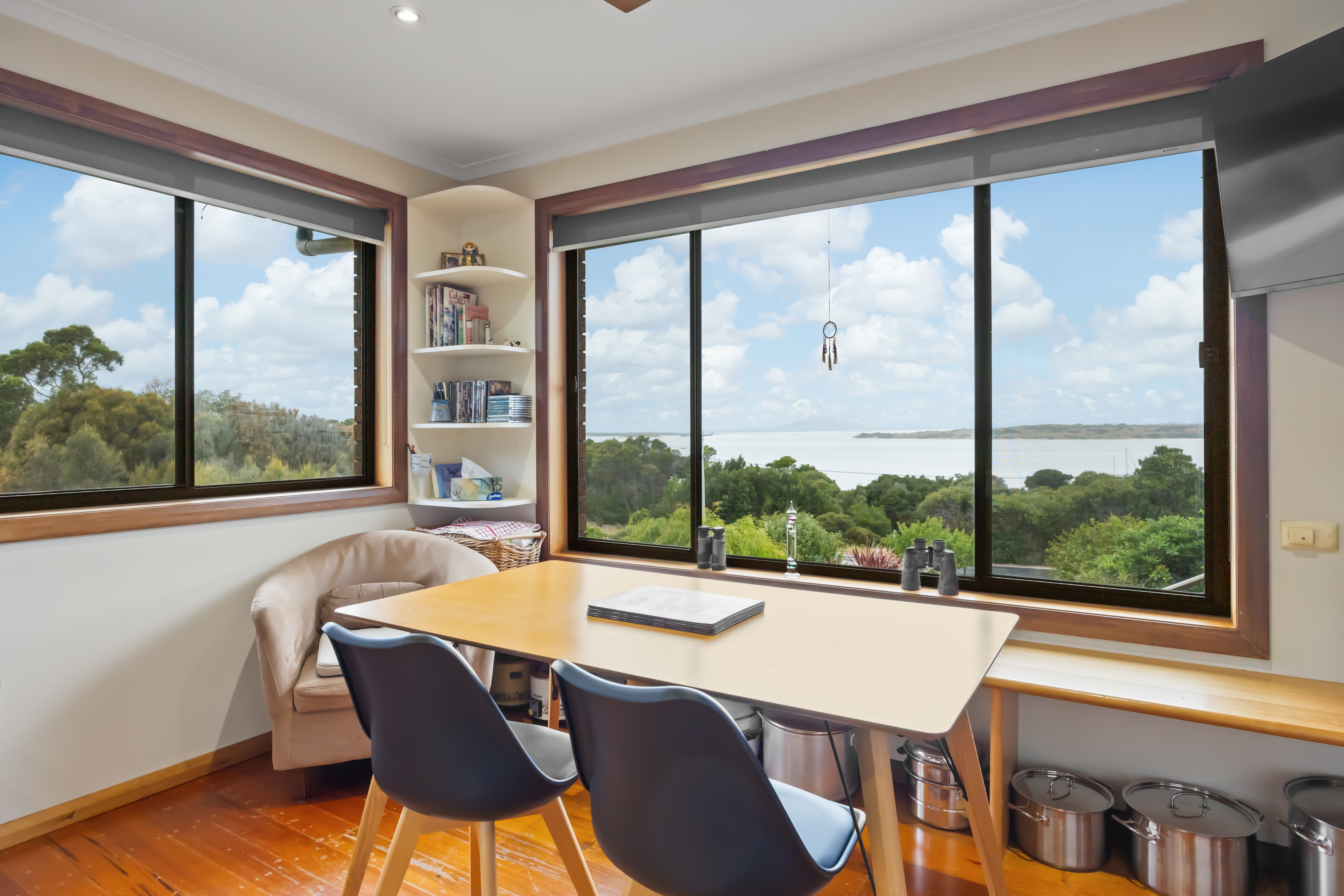 The residence offers stunning 180-degree views over Adelaide Bay and the surrounding islands, providing a scenic backdrop for everyday life.