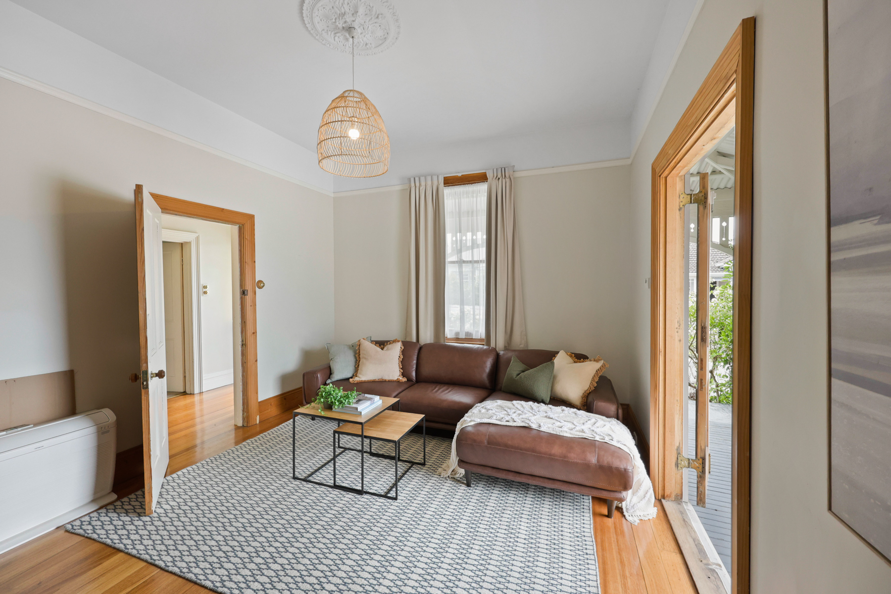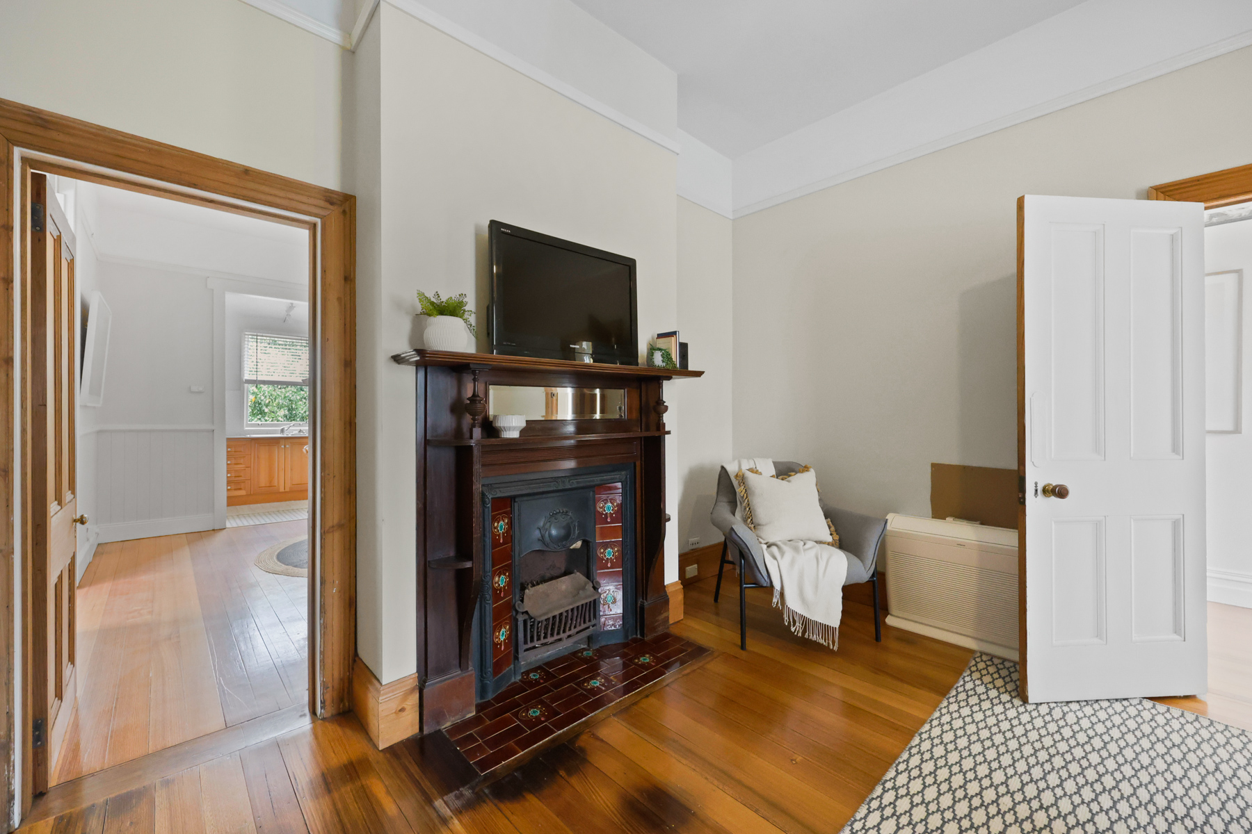 • Original timber flooring, 9ft ceilings & timber fretwork.