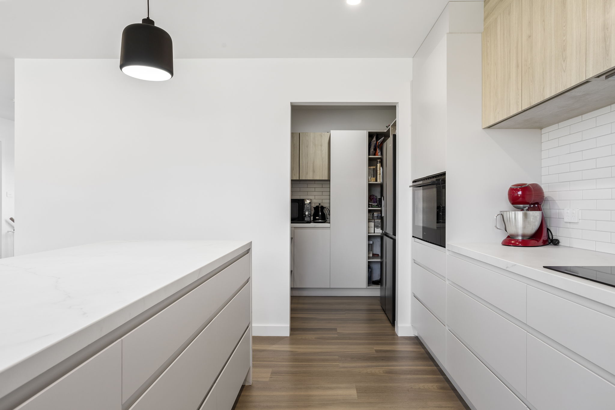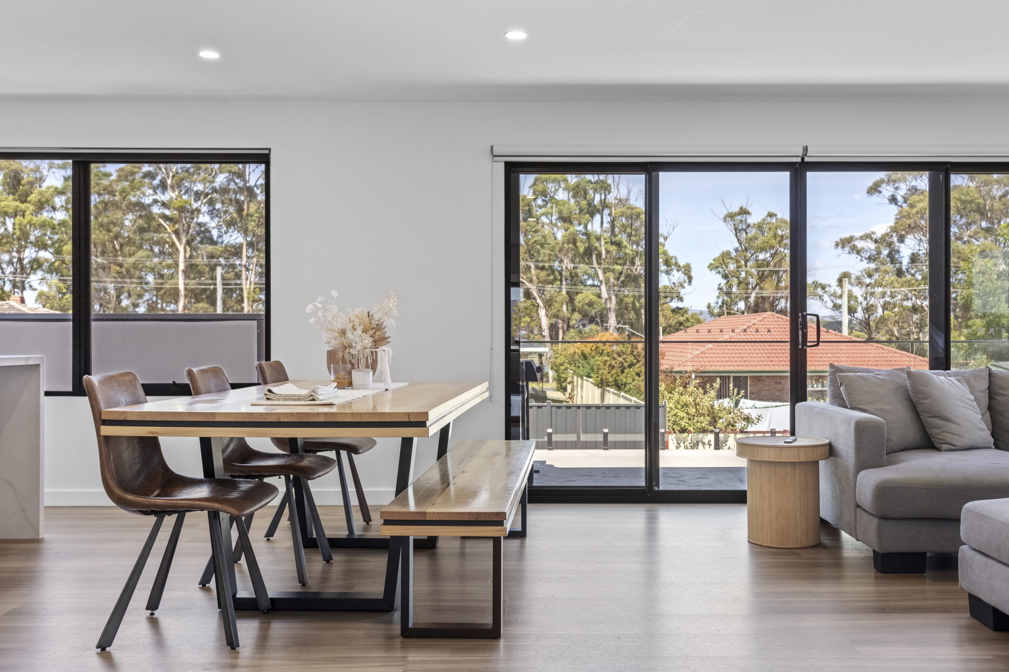The open plan living and dining area is the heart of the home, providing a welcoming space for family gatherings and entertaining guests. The modern kitchen features stainless steel appliances with full butlers pantry, ample storage space, and a breakfast bar. The adjacent family room offers a cosy retreat, perfect for relaxing after a long day.