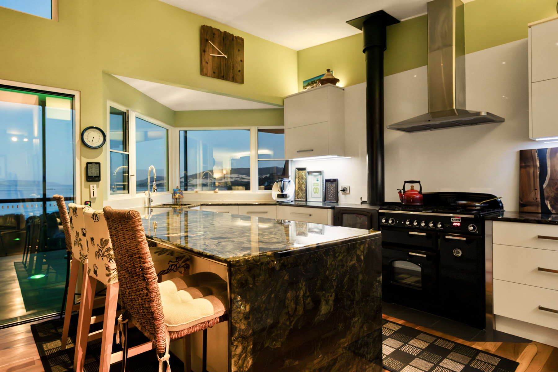 Inside, you'll be captivated by the seamless indoor-outdoor flow, designed to maximize stunning unspoilt and uninterrupted ocean views. The well appointed family kitchen is a standout, featuring a premium Falcon 900mm gas/electric combination cooker and a charming Nectre wood-fired baker’s oven—perfect for those who love to cook and entertain. Thoughtful storage solutions and beautiful imported Madagascan benchtops ensure both style and practicality.
