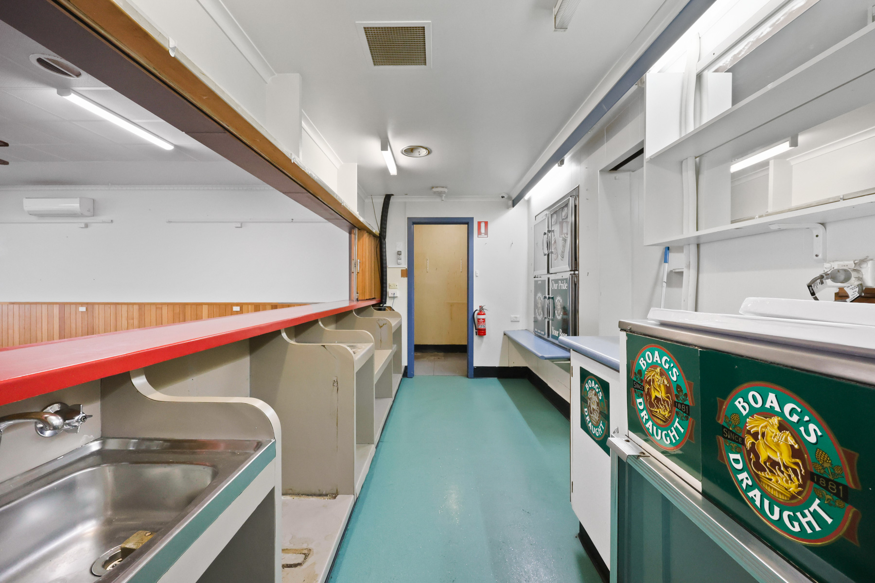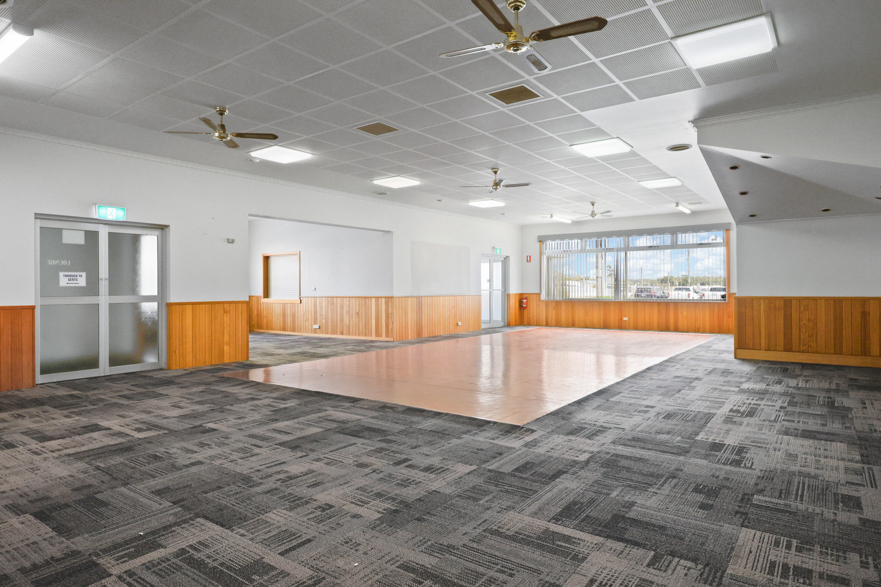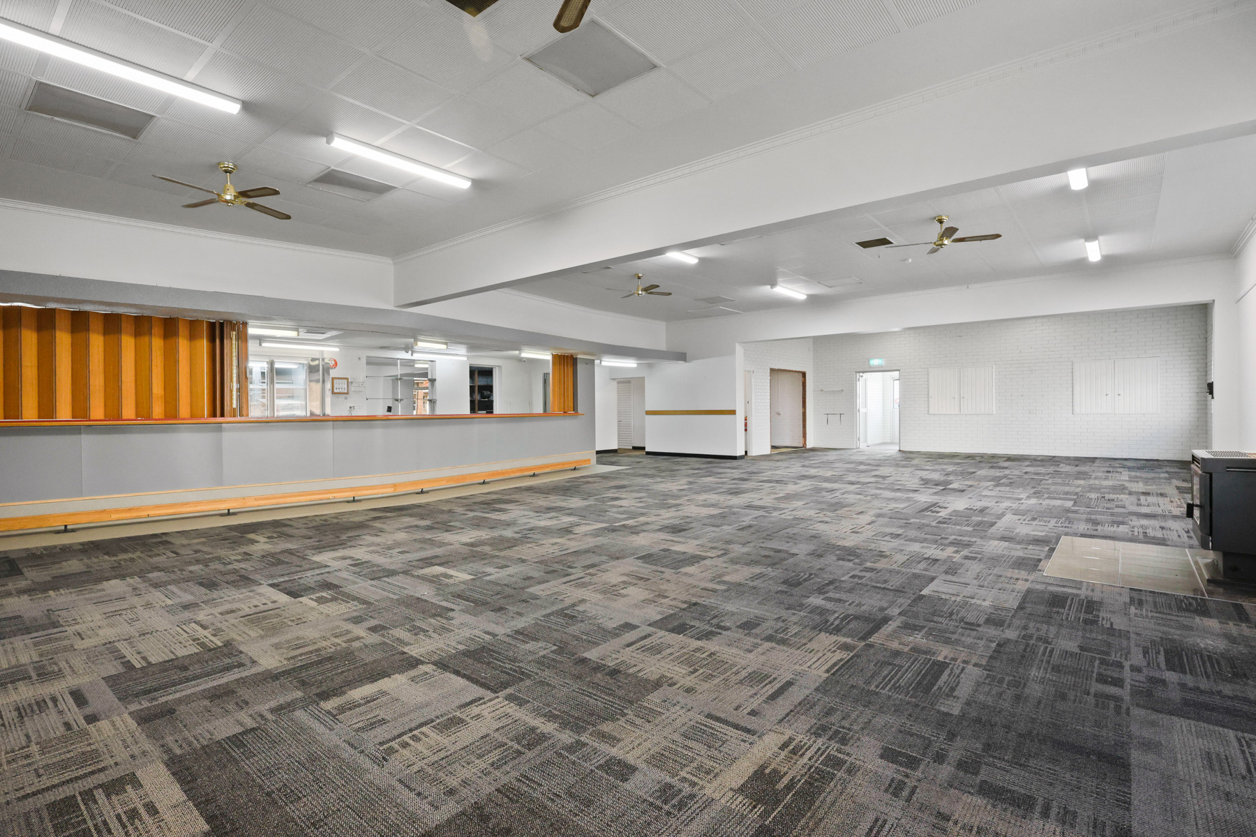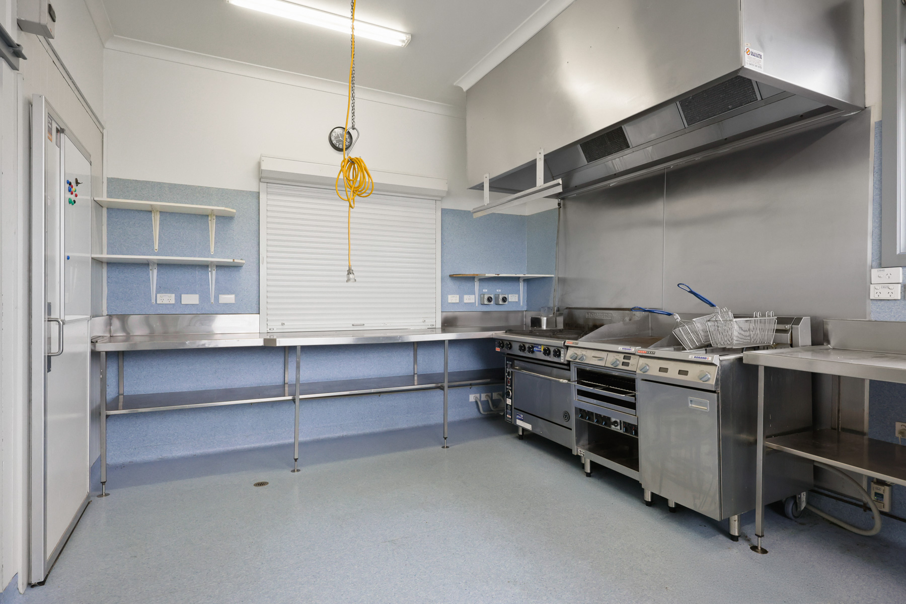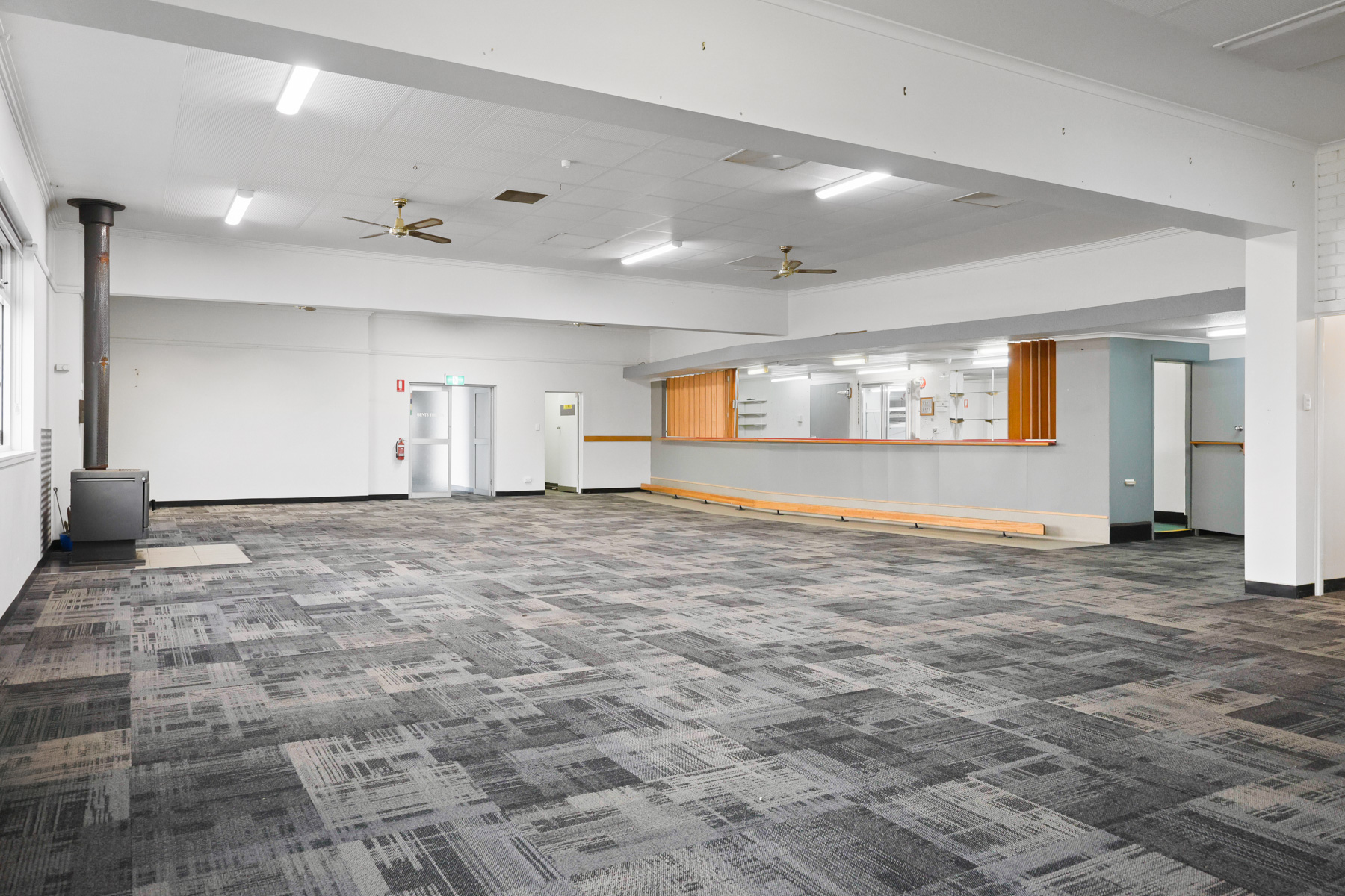 The solidly constructed building as it stands, features expansive open plan areas, a cool room, bar areas, full commercial kitchen facilities and loads of storage and the large amount of parking available is clear to see.