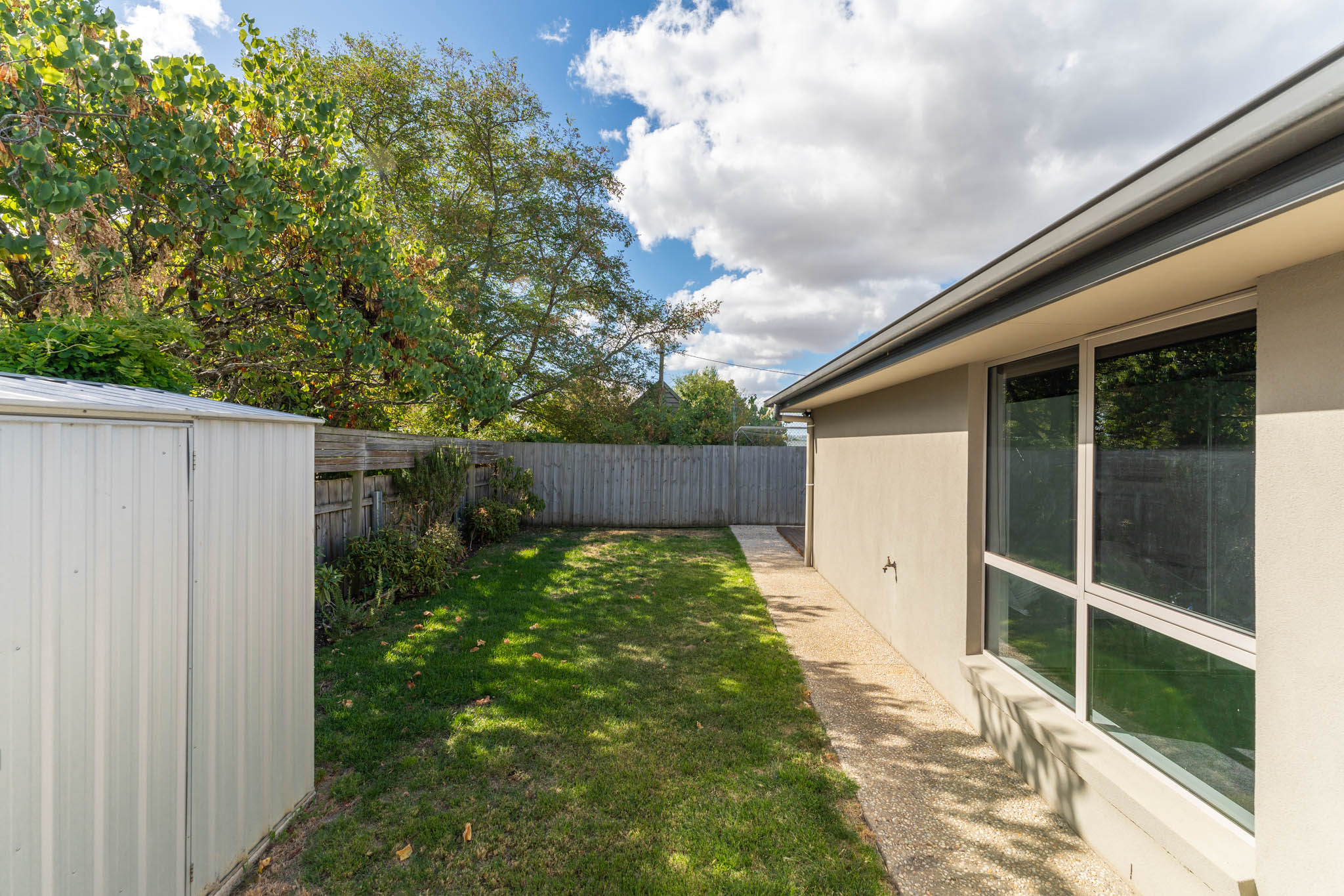 - Lock-up garden shed for additional storage options.