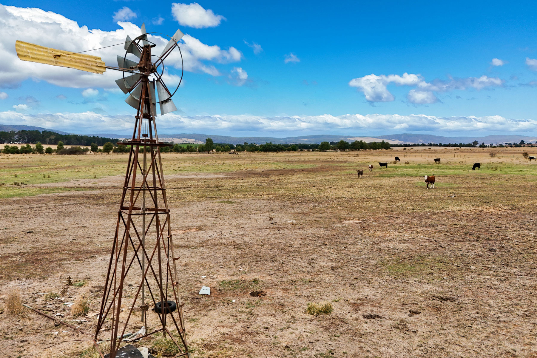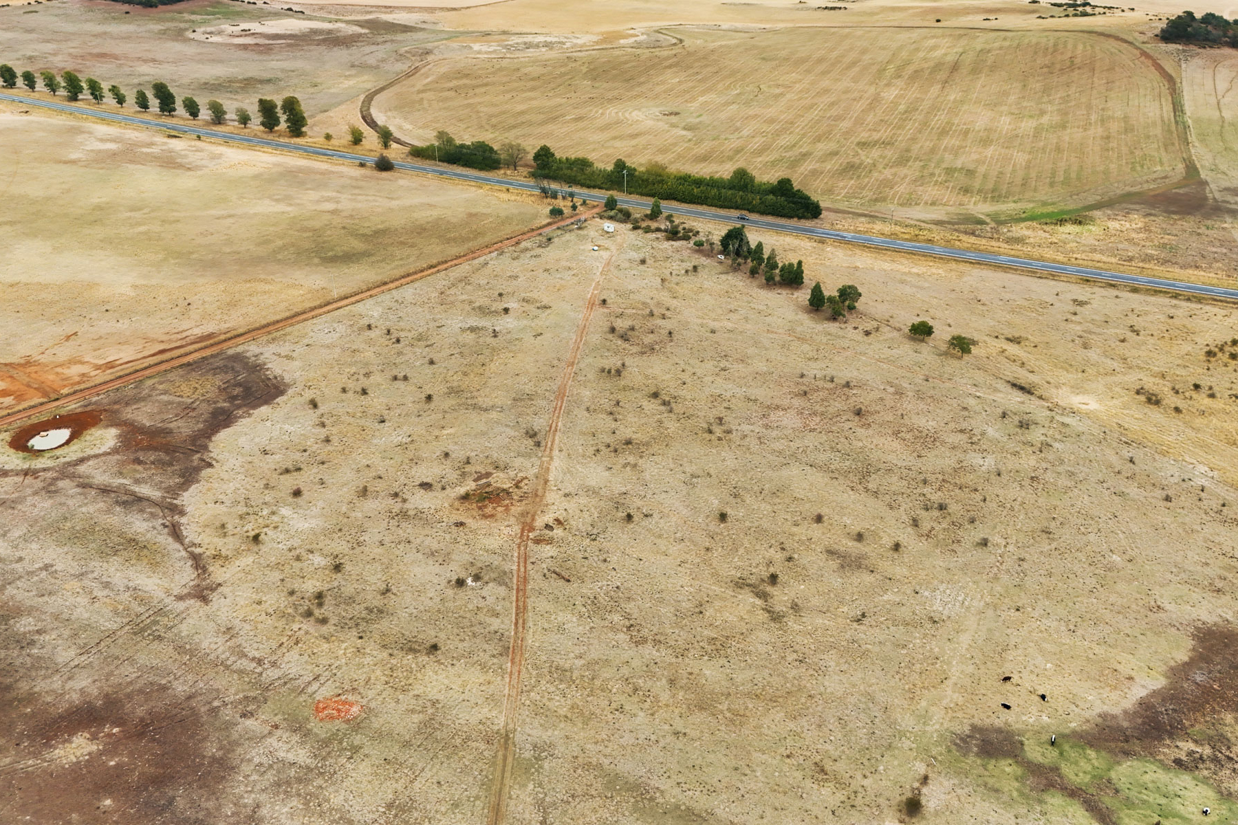 The property is split into 2 sizeable run paddocks with a series of small dams and windmill/bores that supply water to the small mob of cattle currently agisted on the farm. A small set of timber stockyards and a loading ramp at the entrance of the property provide options for livestock management and movement of animals to and from the property.