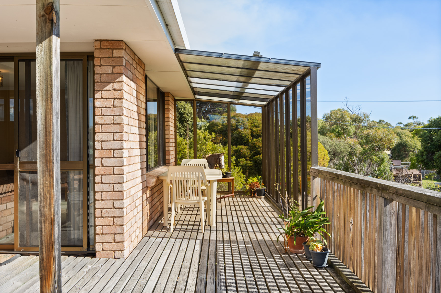 Boasting views towards the majestic Bass Strait and the surfer's at the point, the property sits proudly on the elevated plot, ensuring a picturesque backdrop to your daily existence. The generously sized deck and adjoining sunroom extend the living space, creating an idyllic setting for entertaining or simply unwinding to the rhythmic lull of the waves.