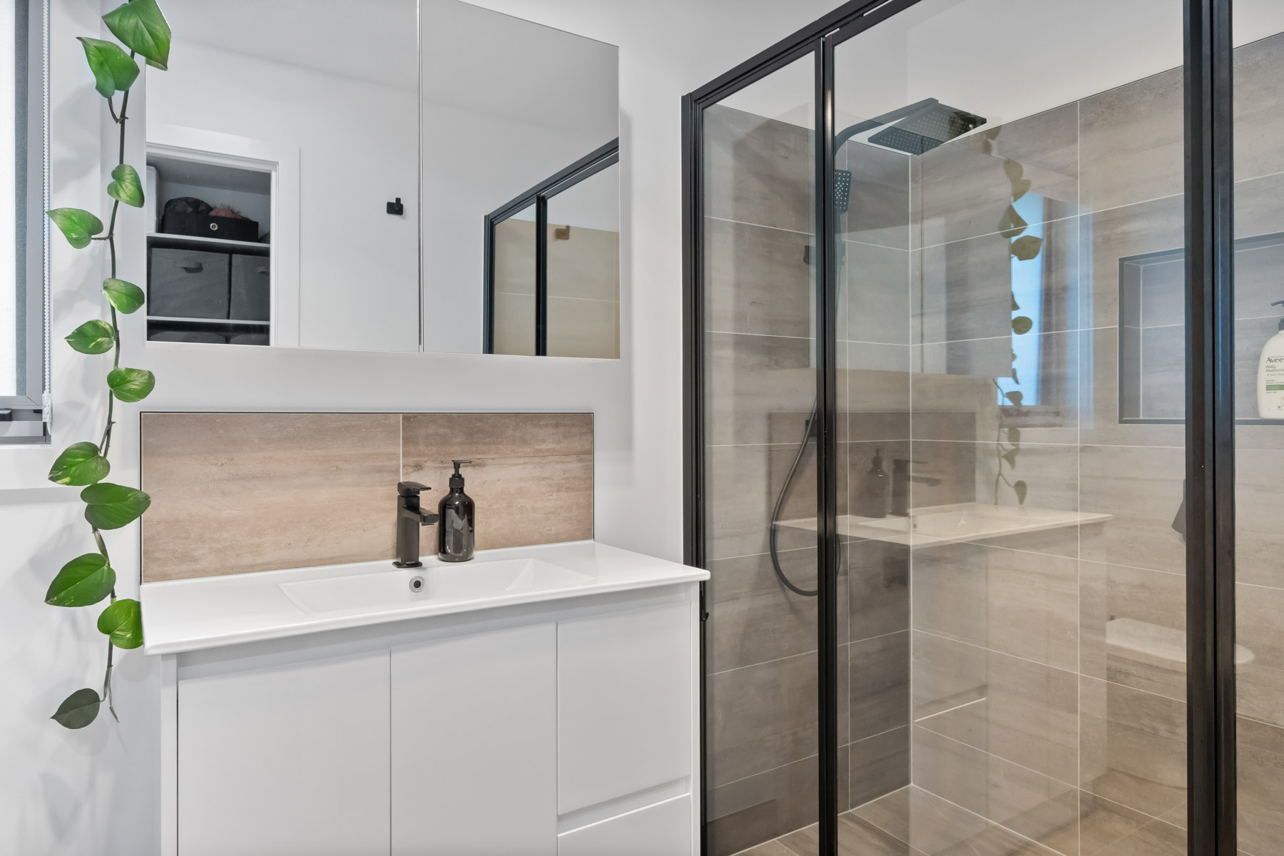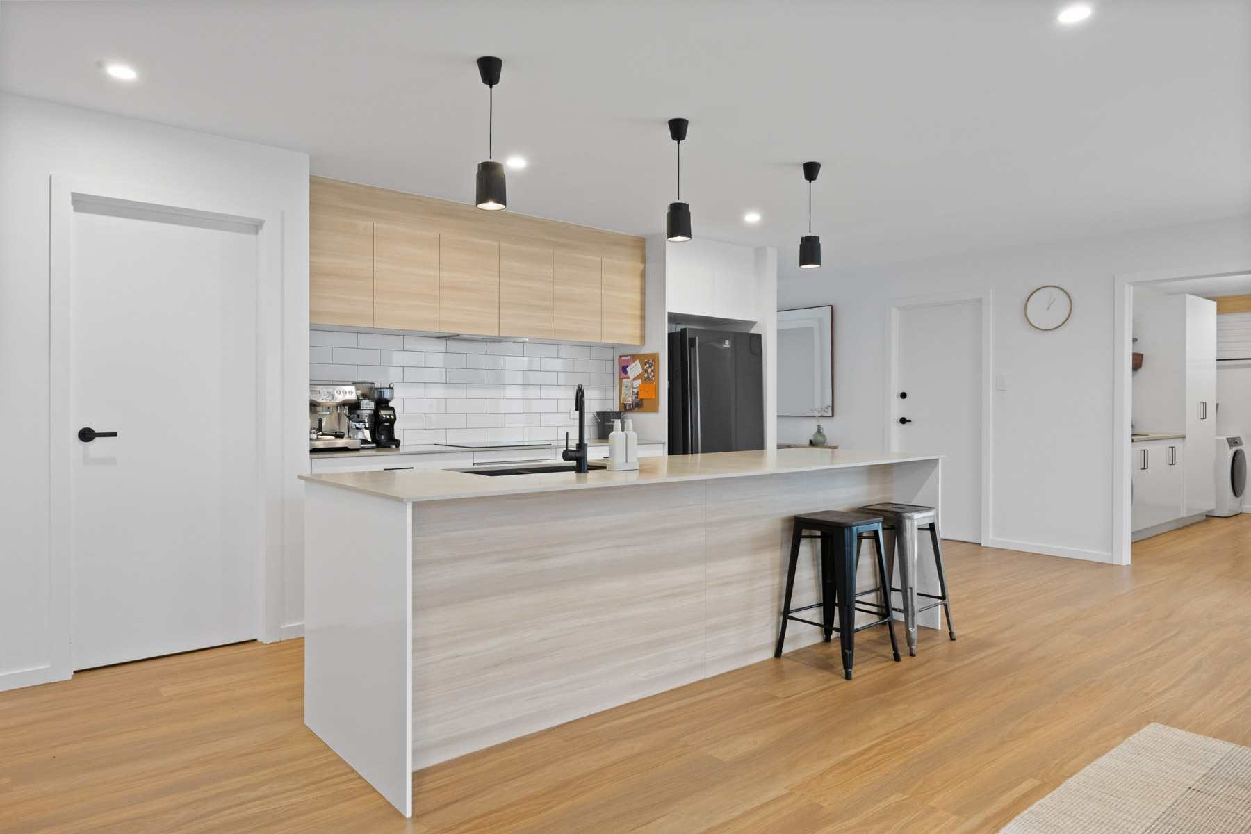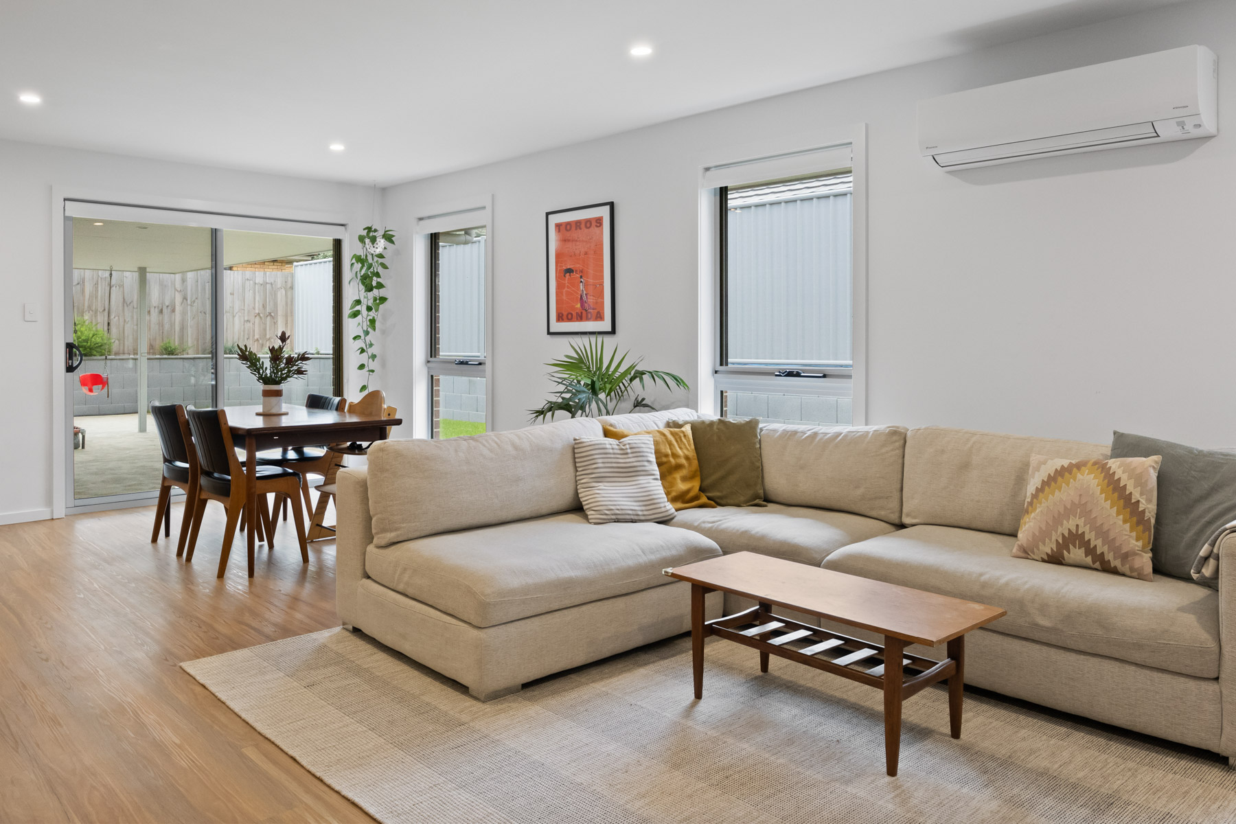 Inside, you'll find three spacious bedrooms—two with built-in wardrobes and the master with a walk-in robe and stylish ensuite. The open-plan living and dining area faces east, inviting in the morning sunlight and creating a bright, welcoming atmosphere. The contemporary kitchen serves as the heart of the home, complete with an island bench, quality modern appliances, and a generous pantry.