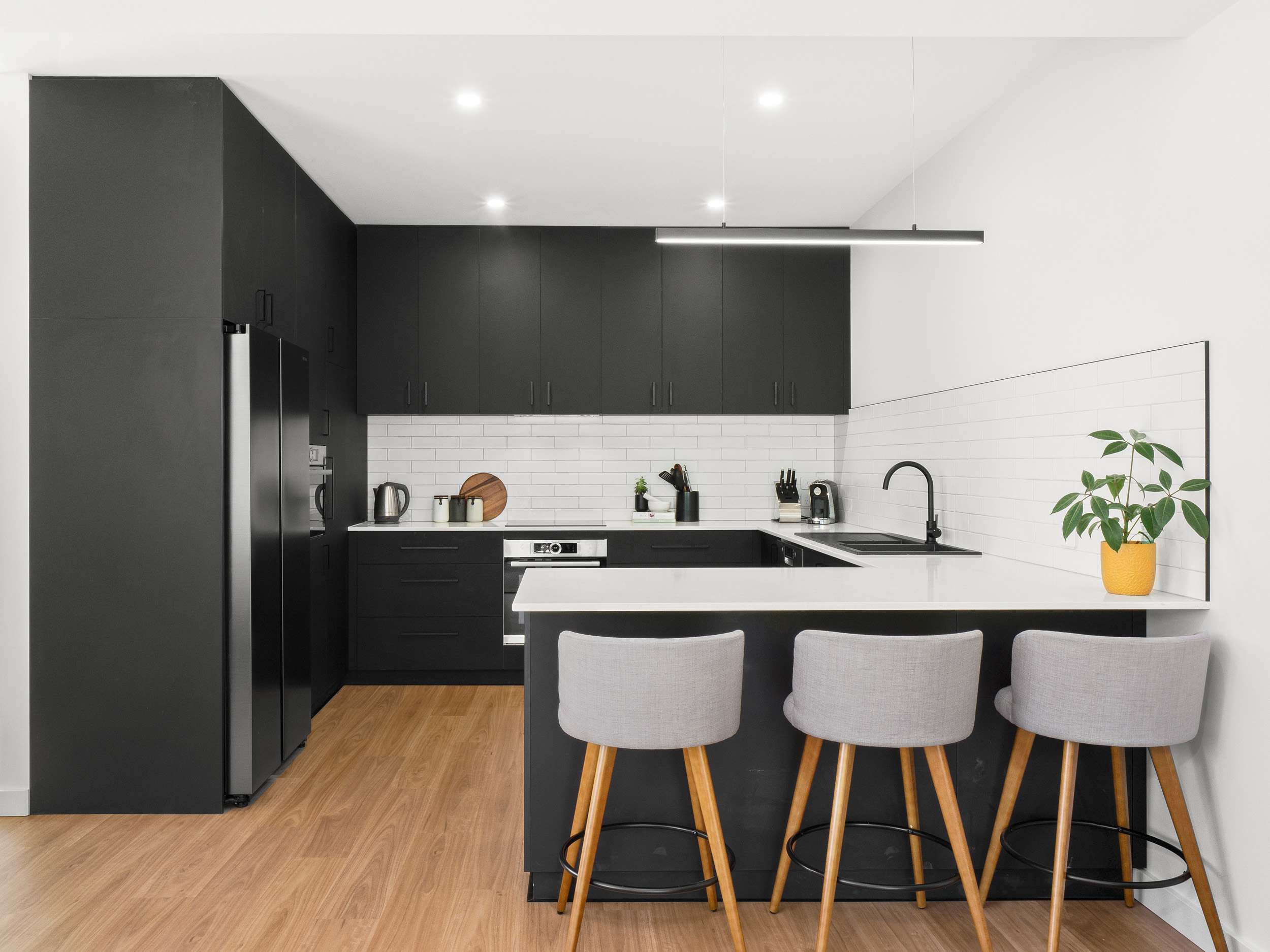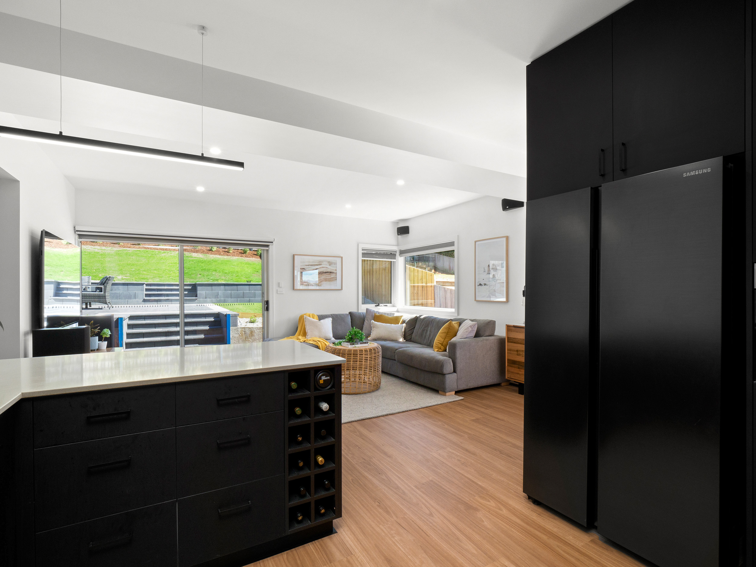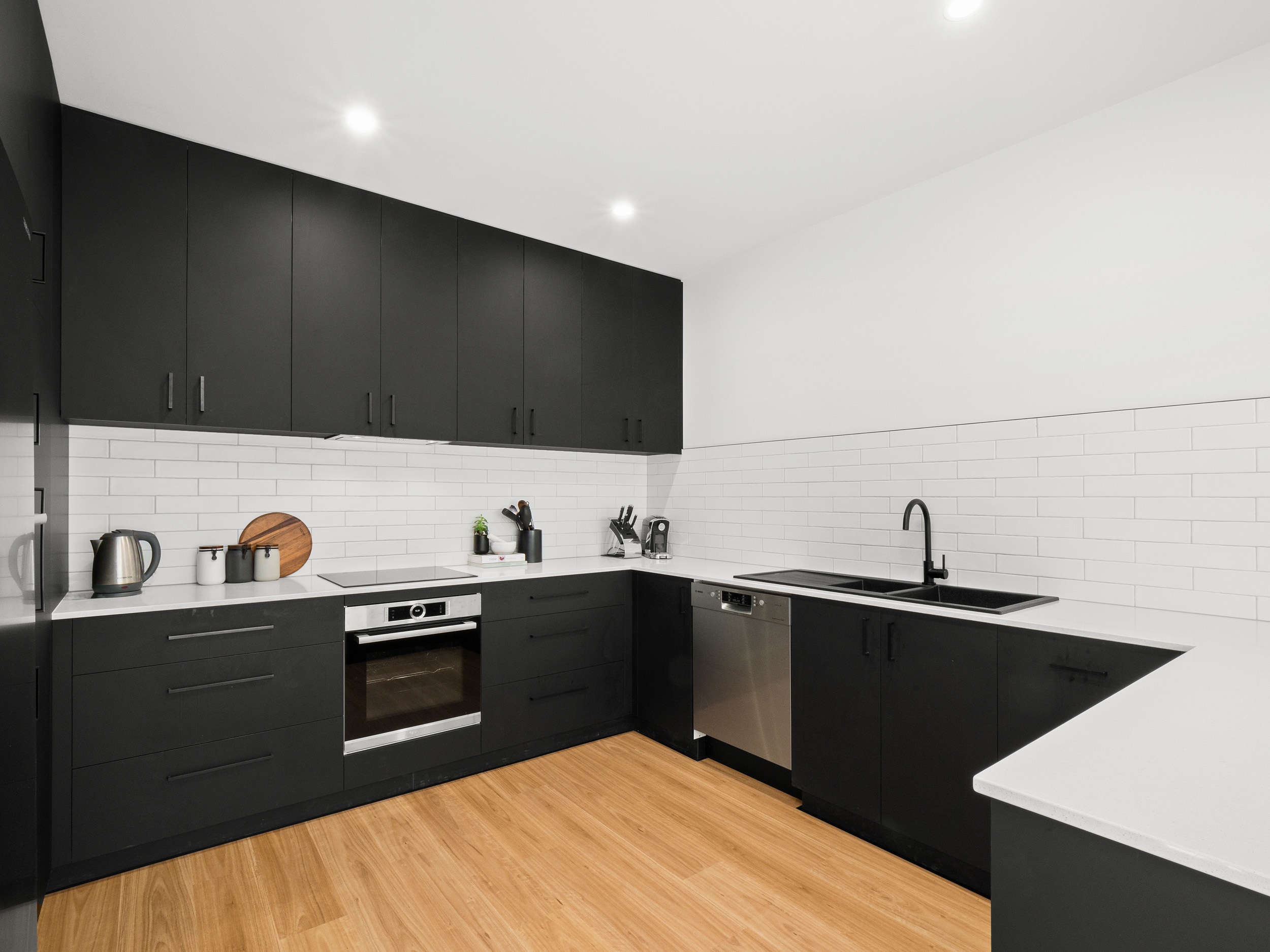 -Sleek black kitchen, with ample bench space, storage and quality Bosch appliances