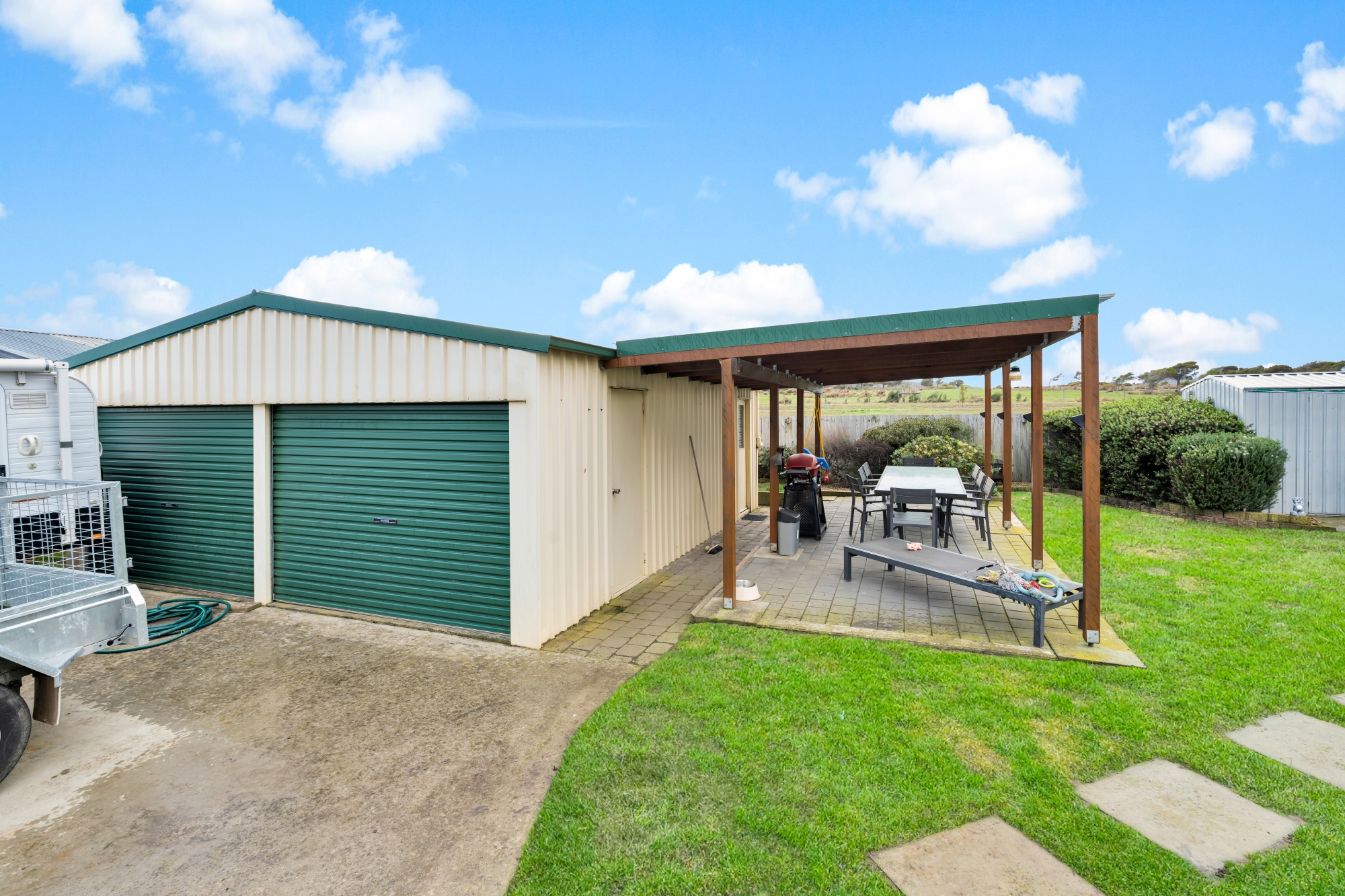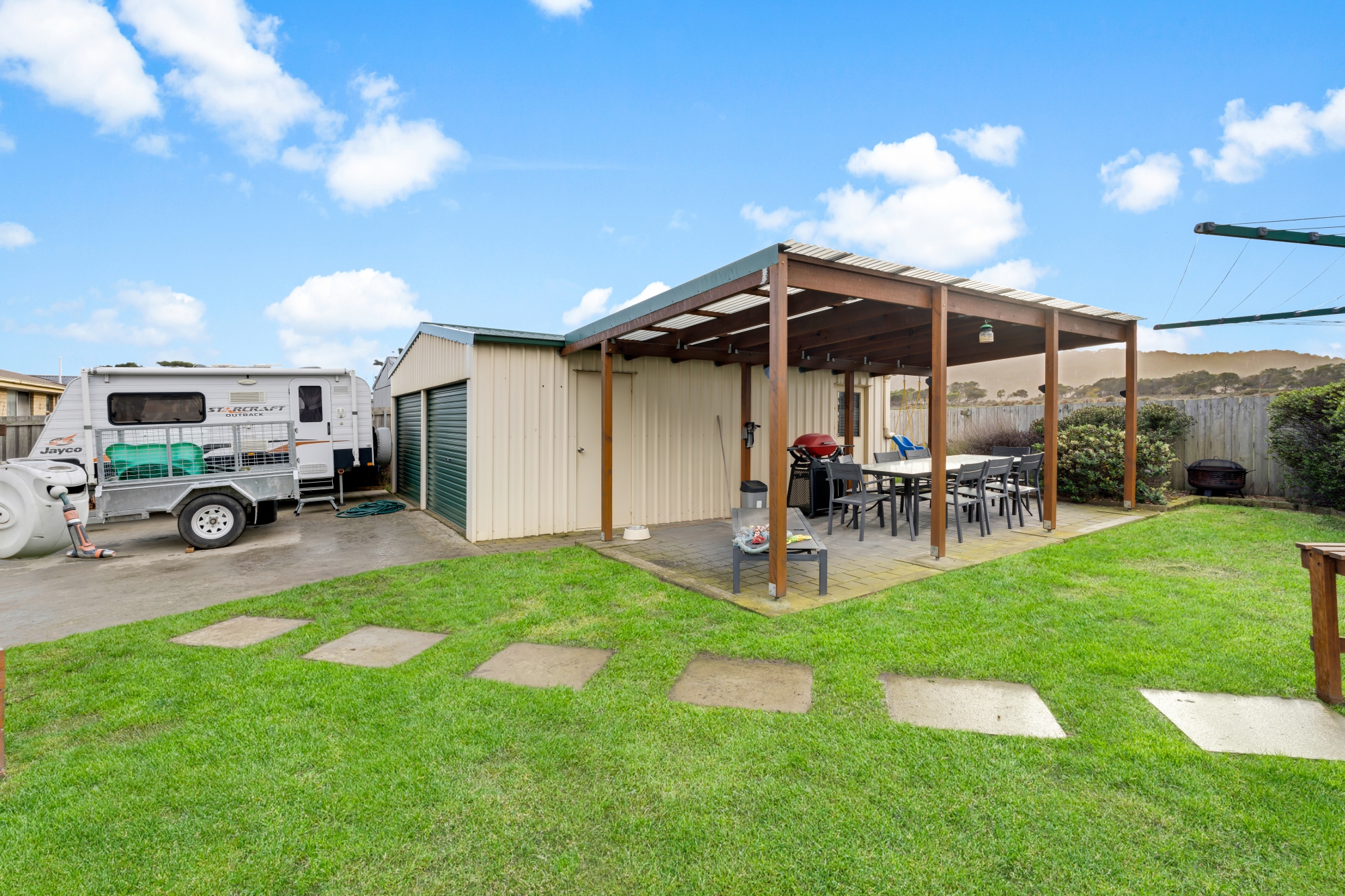 The property boasts easy-care landscaping within well-fenced yards, ensuring privacy and security for pets and providing ample space for storing the boat, caravan, or cars. The double garaging, along with an excellent hardstand area, adds to the practicality of this delightful home.