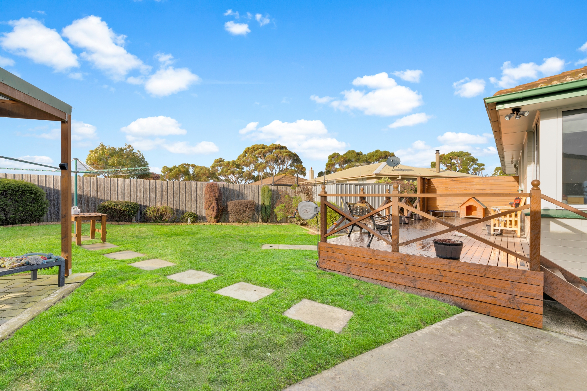 Step inside to find a home that exudes warmth and character, with three well-proportioned bedrooms, each featuring built-in robes for your convenience. The heart of the home is the timber kitchen and dining area, seamlessly transitioning into a spacious lounge, ideal for unwinding or entertaining guests.