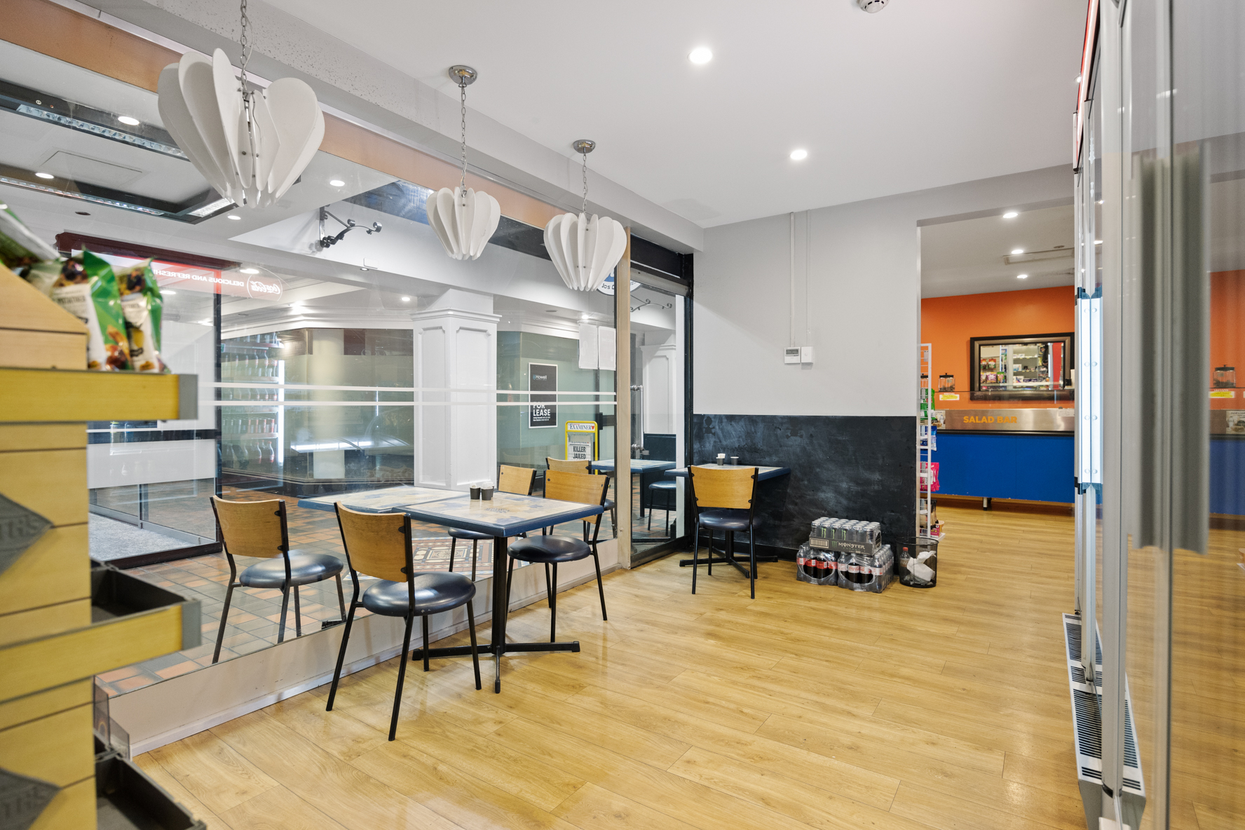 Currently leased as a food/grocery express shop, this space would definitely suit any number of retail or foody ventures. Whether you’re opening a boutique clothing store, a gourmet bagel bar, or even a specialty gift store, this location offers the visibility and convenience your business needs to thrive.