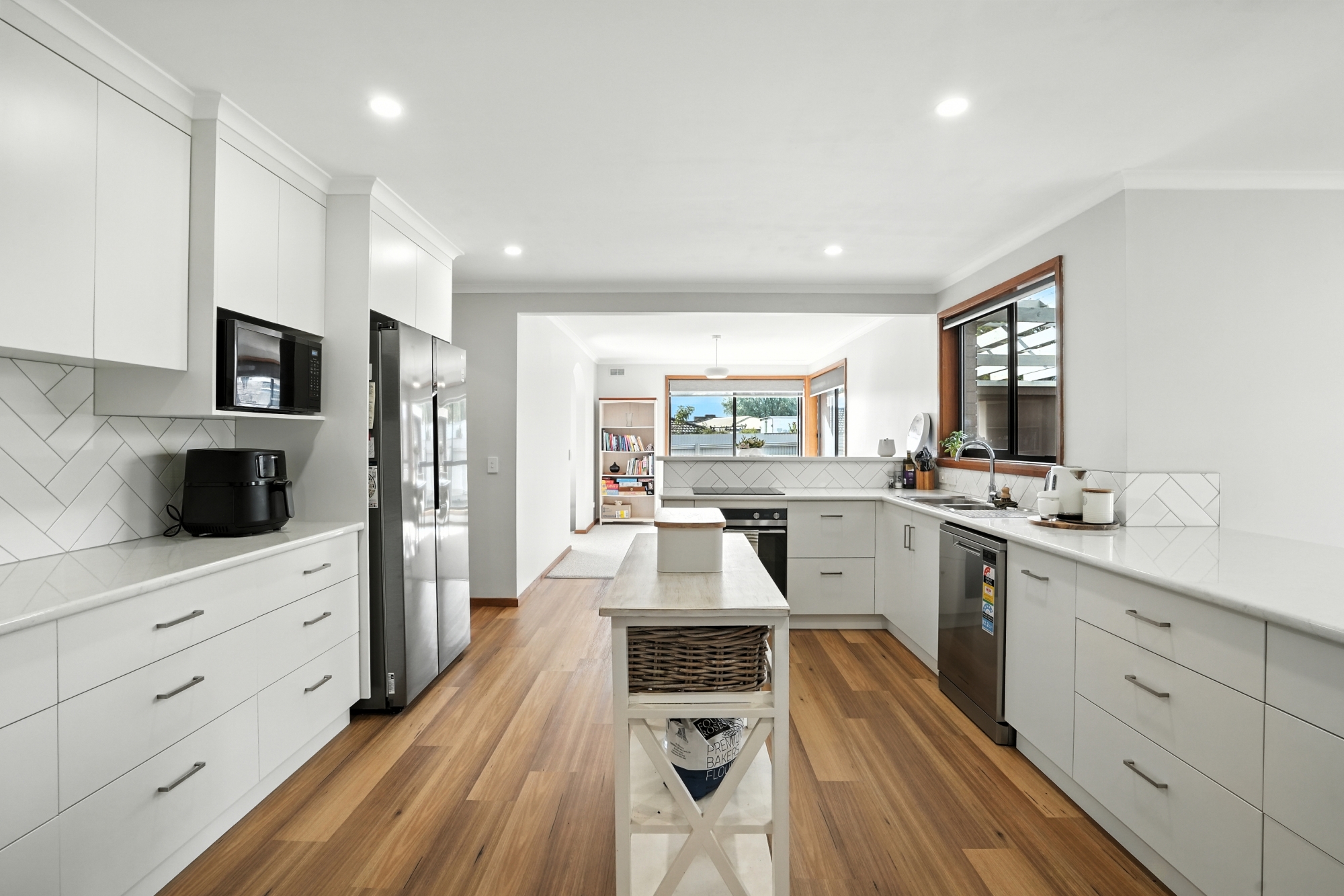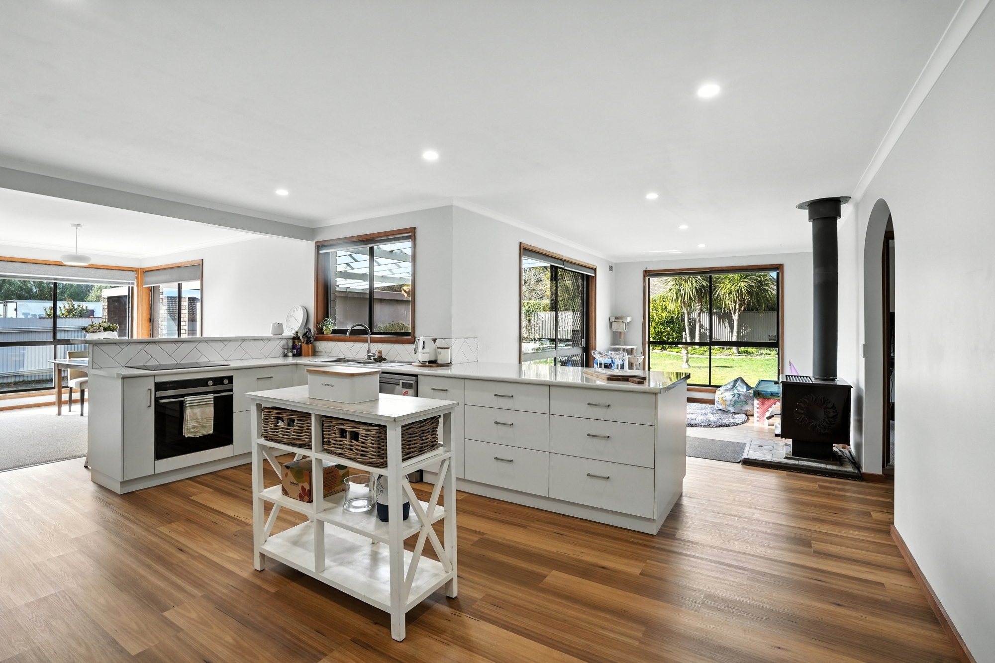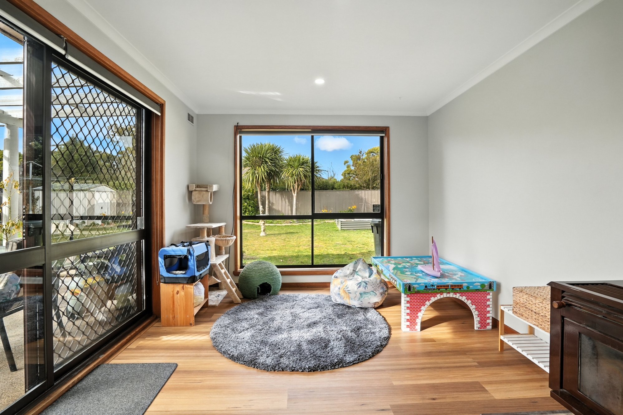 This home ticks all the boxes for convenient family living. Set on a generous block with space for flowers, vegetables, kids’ play, and pets, it also offers glimpses of the Tamar River to enjoy from different spots in the garden.