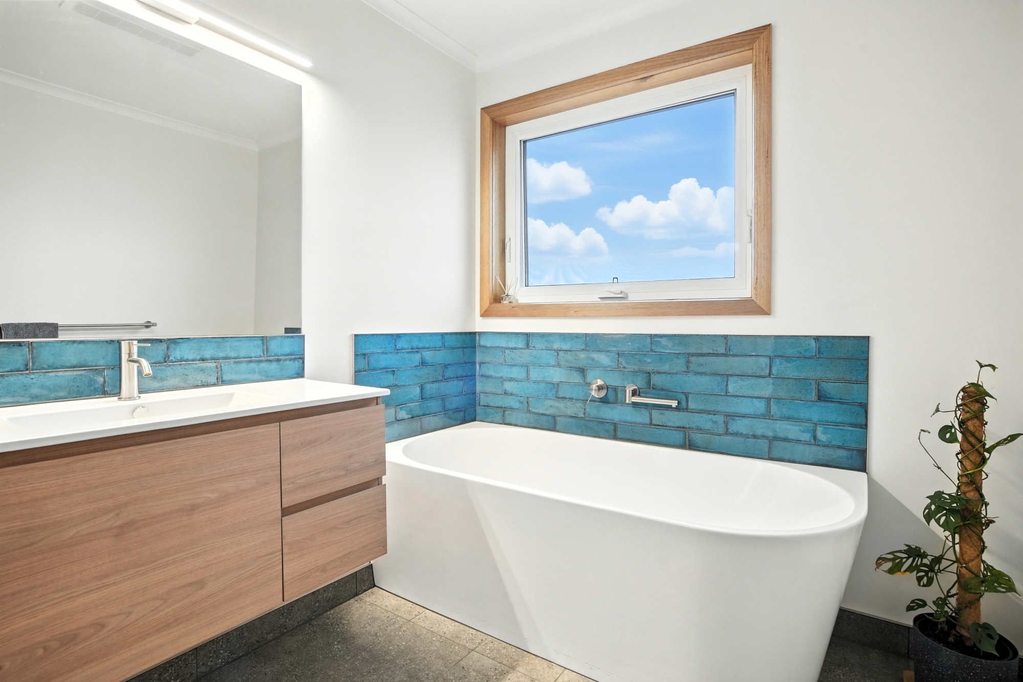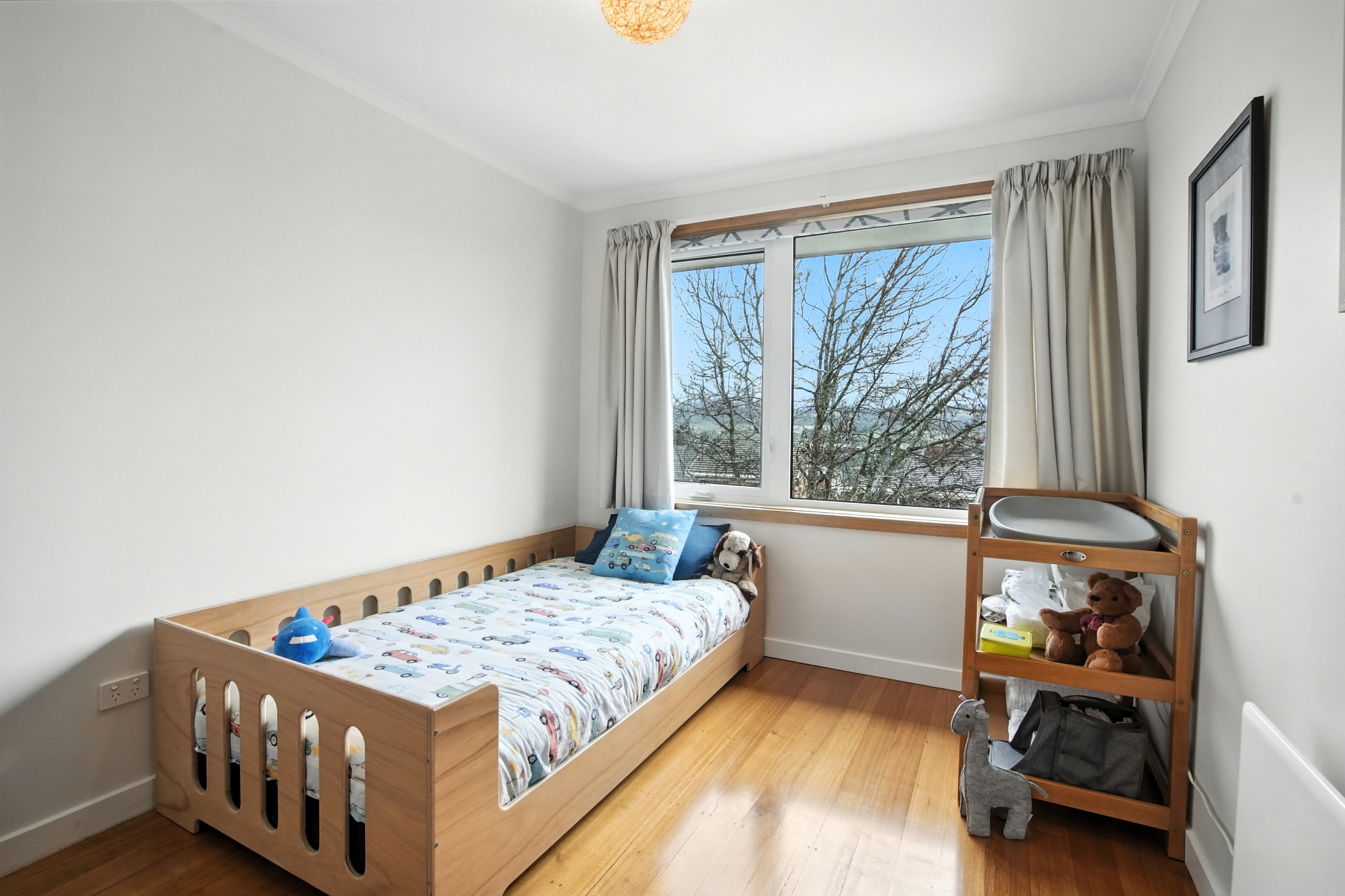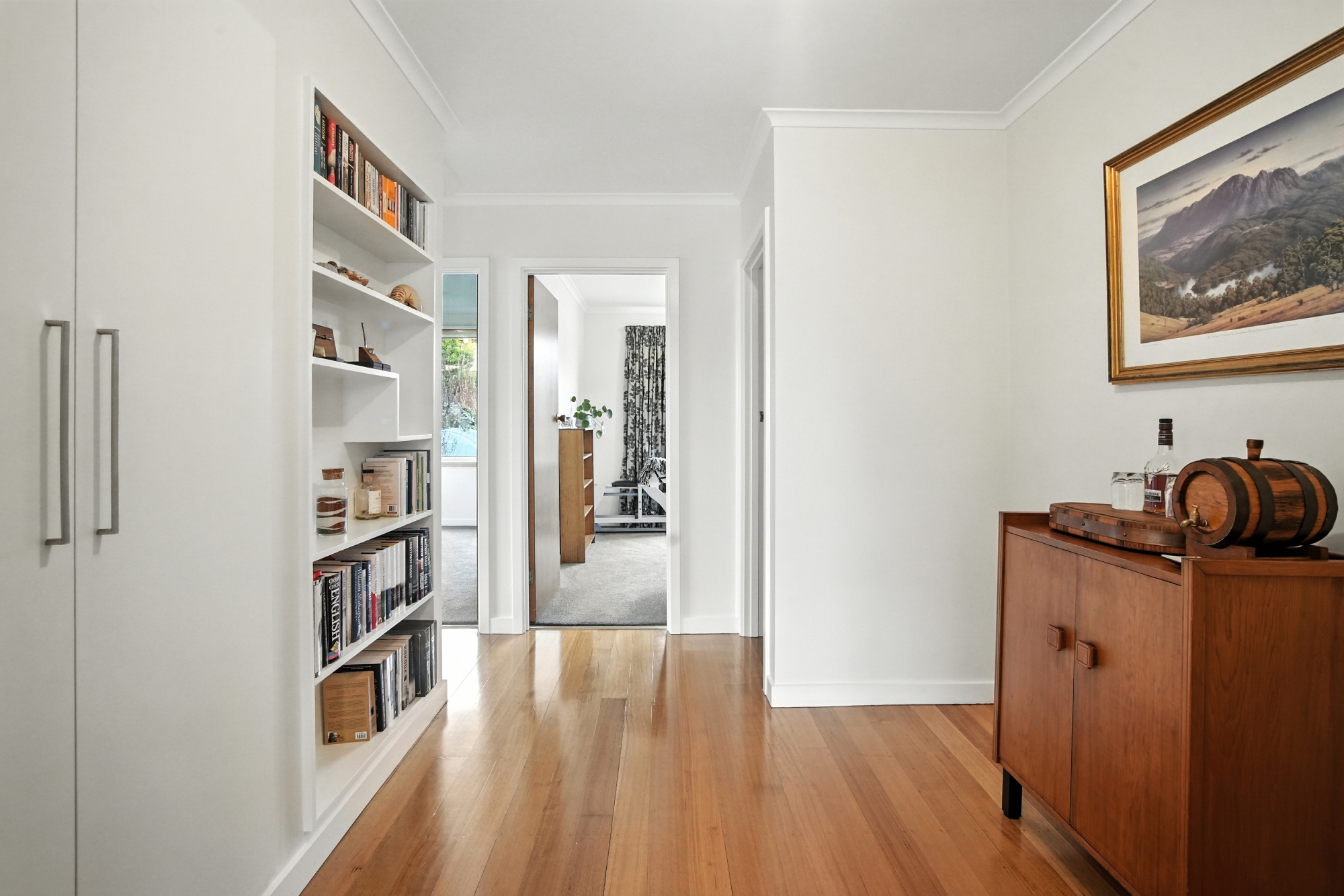At the heart of the home is a modern open-plan living area, filled with natural light and finished with stunning Tasmanian oak floorboards, complemented by modern efficiencies which include uPVC windows and 8.88kW of solar panels.