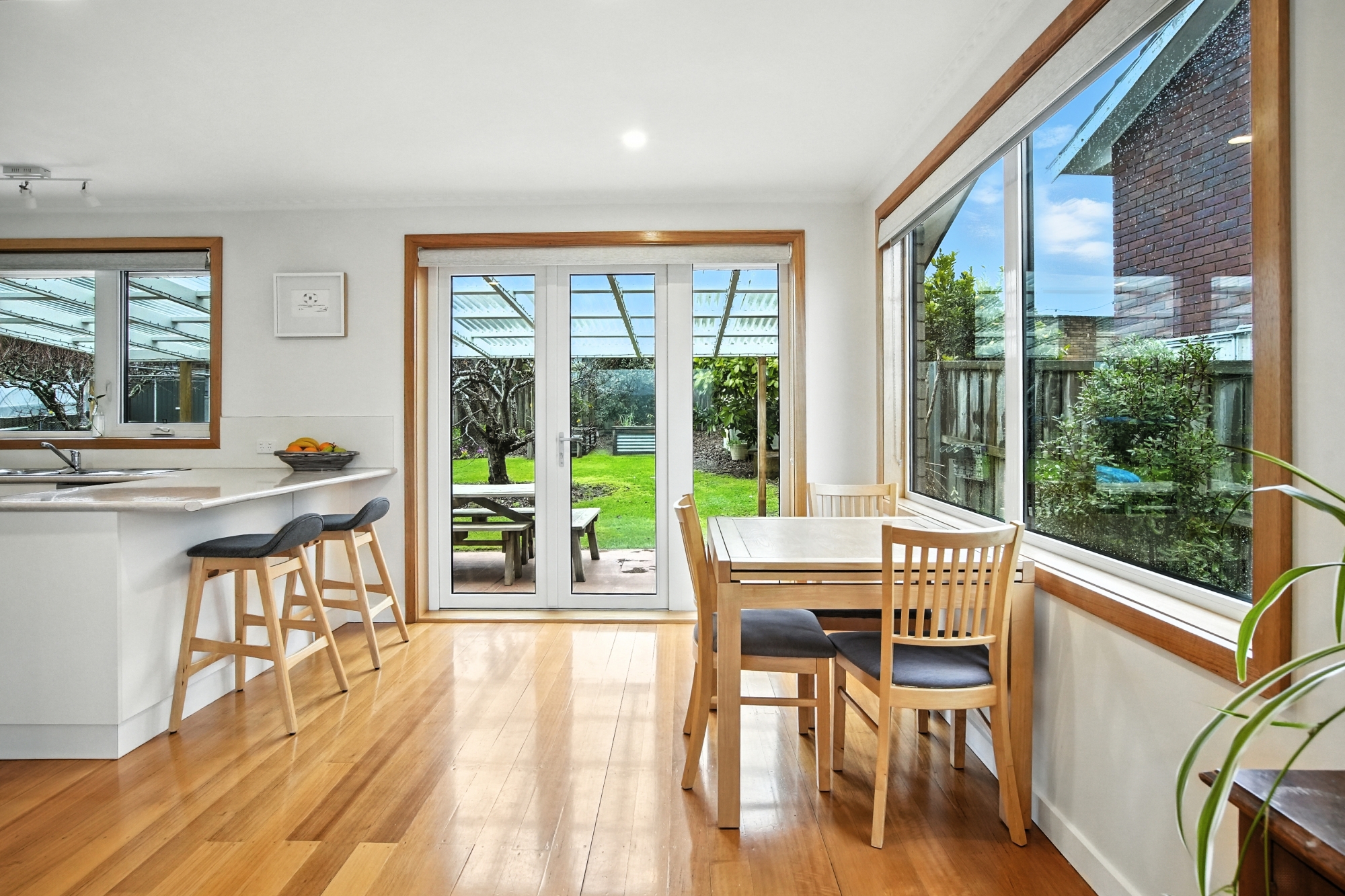 Entertaining is easy with an alfresco area leading directly from the dining area through double-opening French doors, perfect for year-round entertaining.