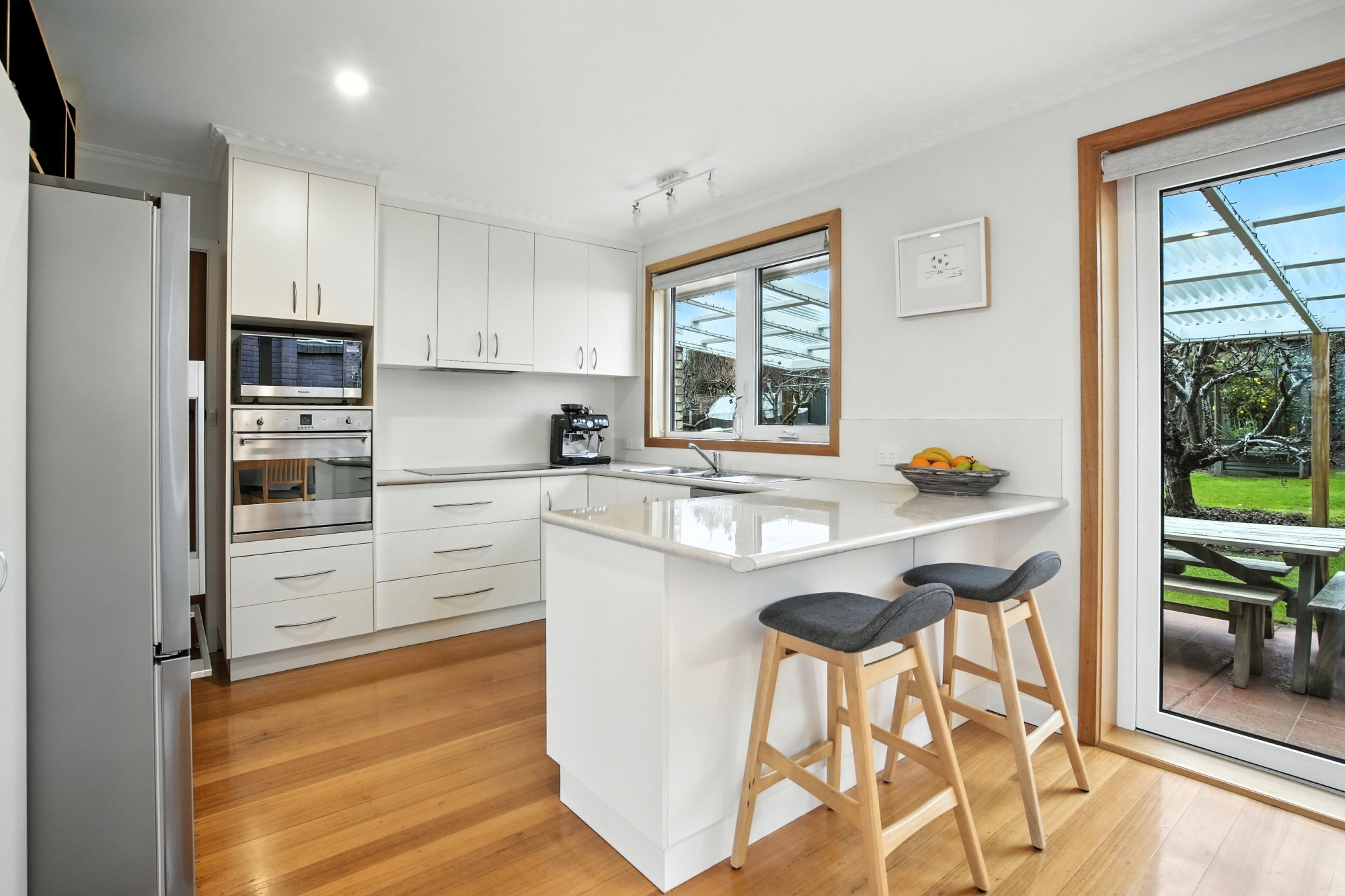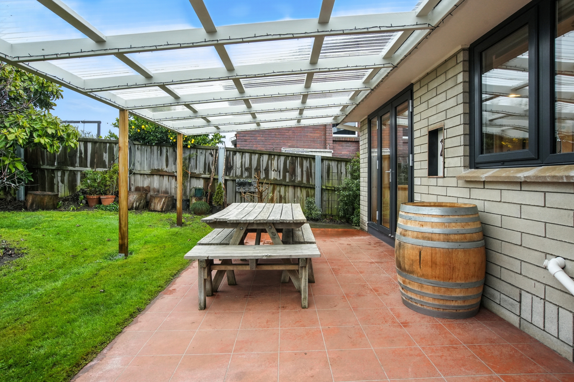 Outdoors, the home truly shines – enjoy the family friendly backyard complete with apple, apricot, avocado, greengage, orange, and lemon trees.