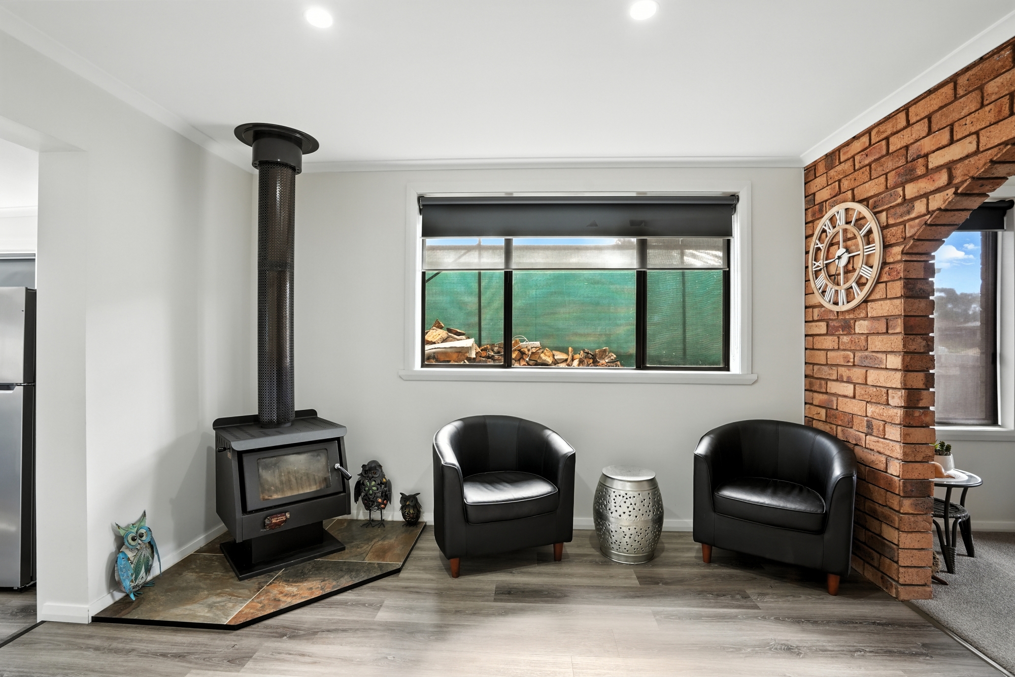 Dual street entrances, both with undercover parking, offer ease and security. Further features include solar panels for energy efficiency, wood and reverse cycle heating for a cosy atmosphere, and secure spaces ideal for young children or pets.