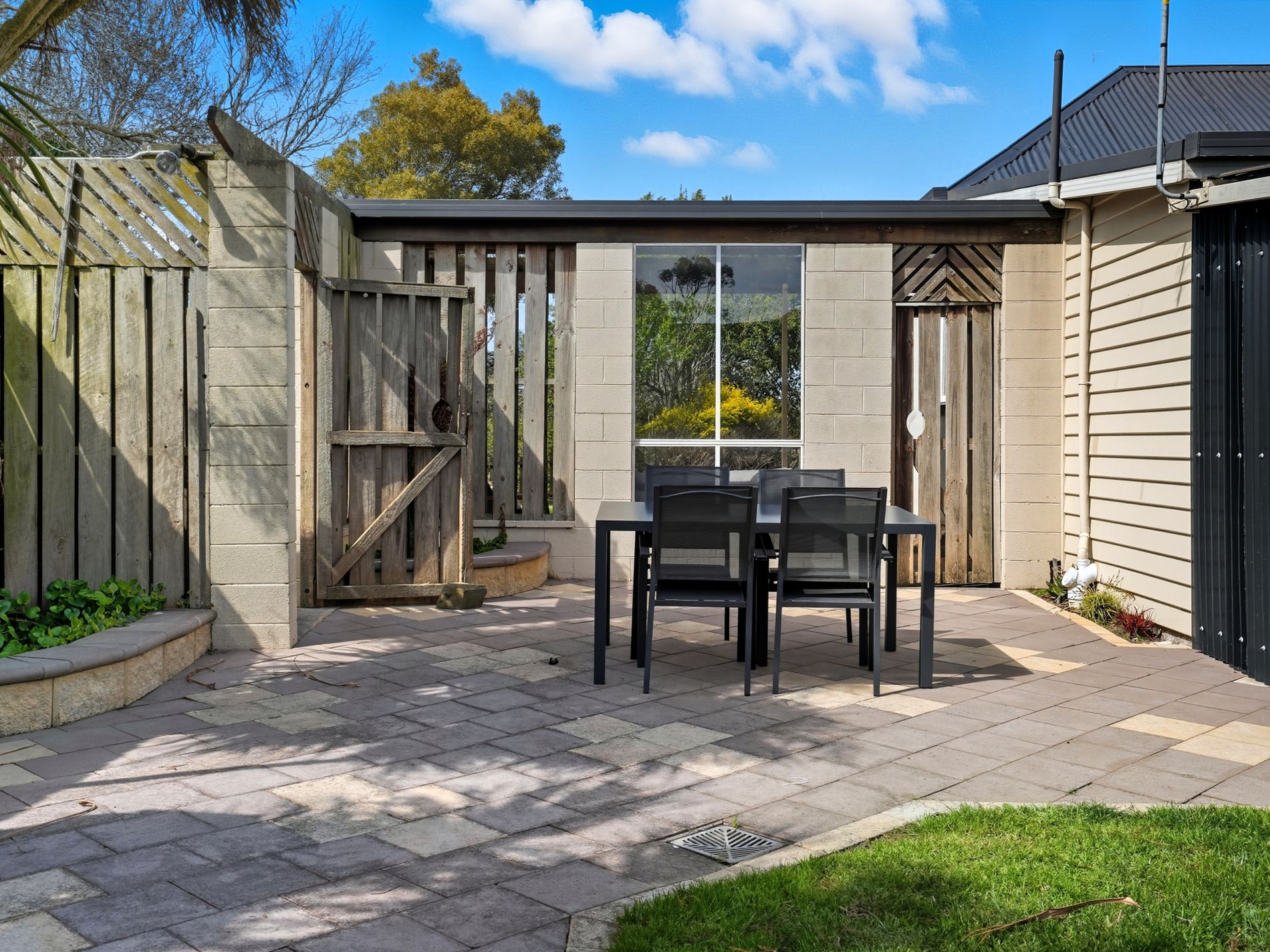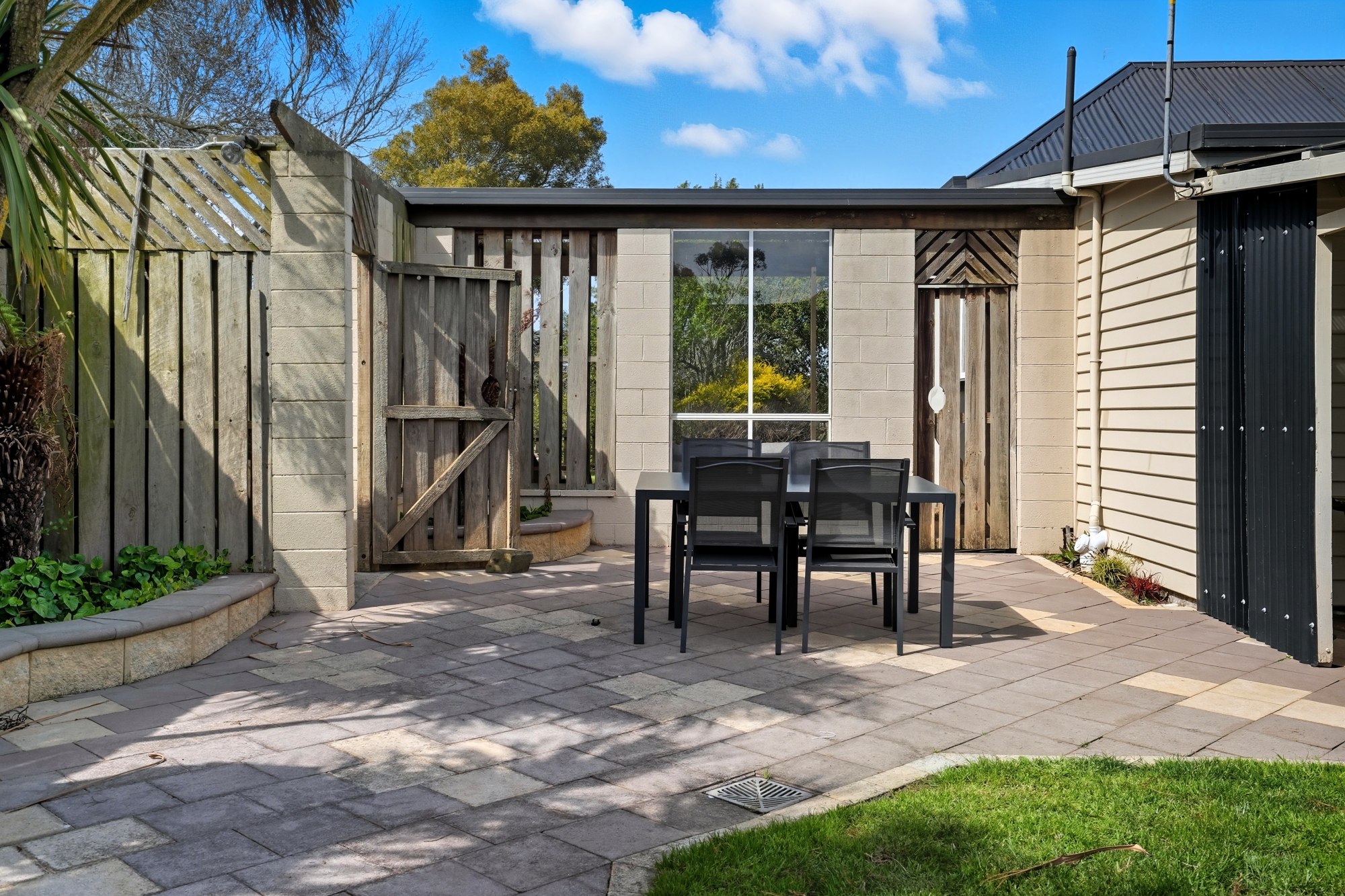 - Study/library (accessed from kitchen) flows to a paved patio area in the secure yard