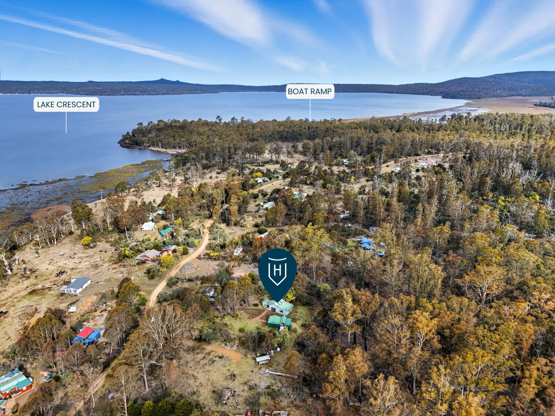 The elevated level 1,941m2 block offers an easterly aspect looking out towards Lake Crescent. The Colorbond timber-linen cabin-style home was constructed in 2002 and offers two comfortable bedrooms, open plan kitchen/lounge room and a second living room. The master bedroom accommodates a queen size mattress with the second slightly smaller room, a set of bunks.