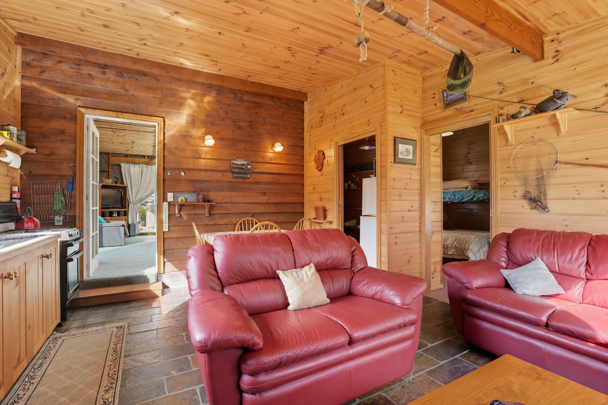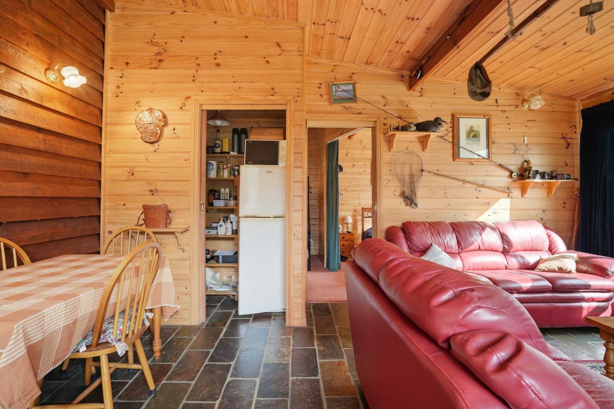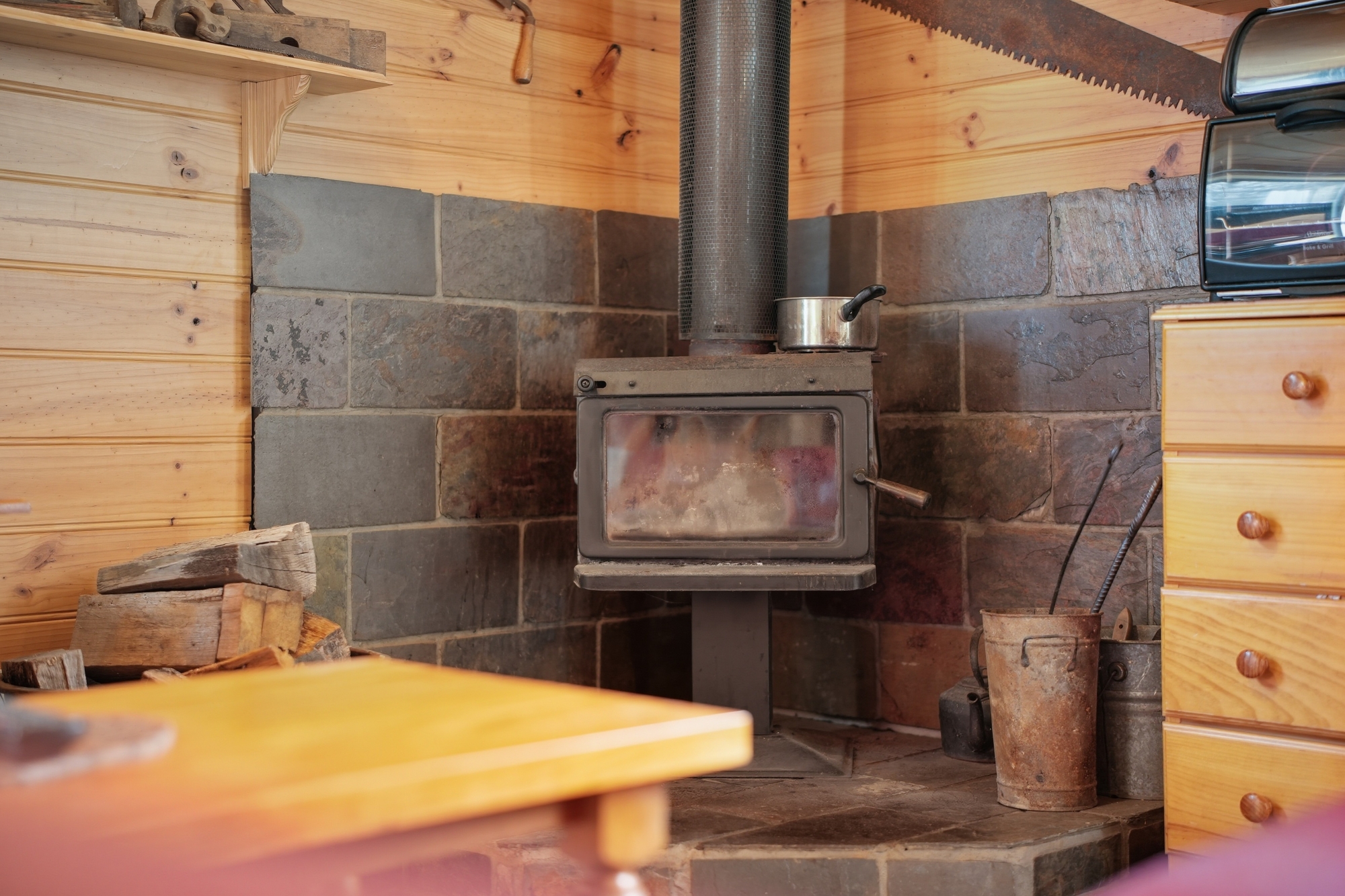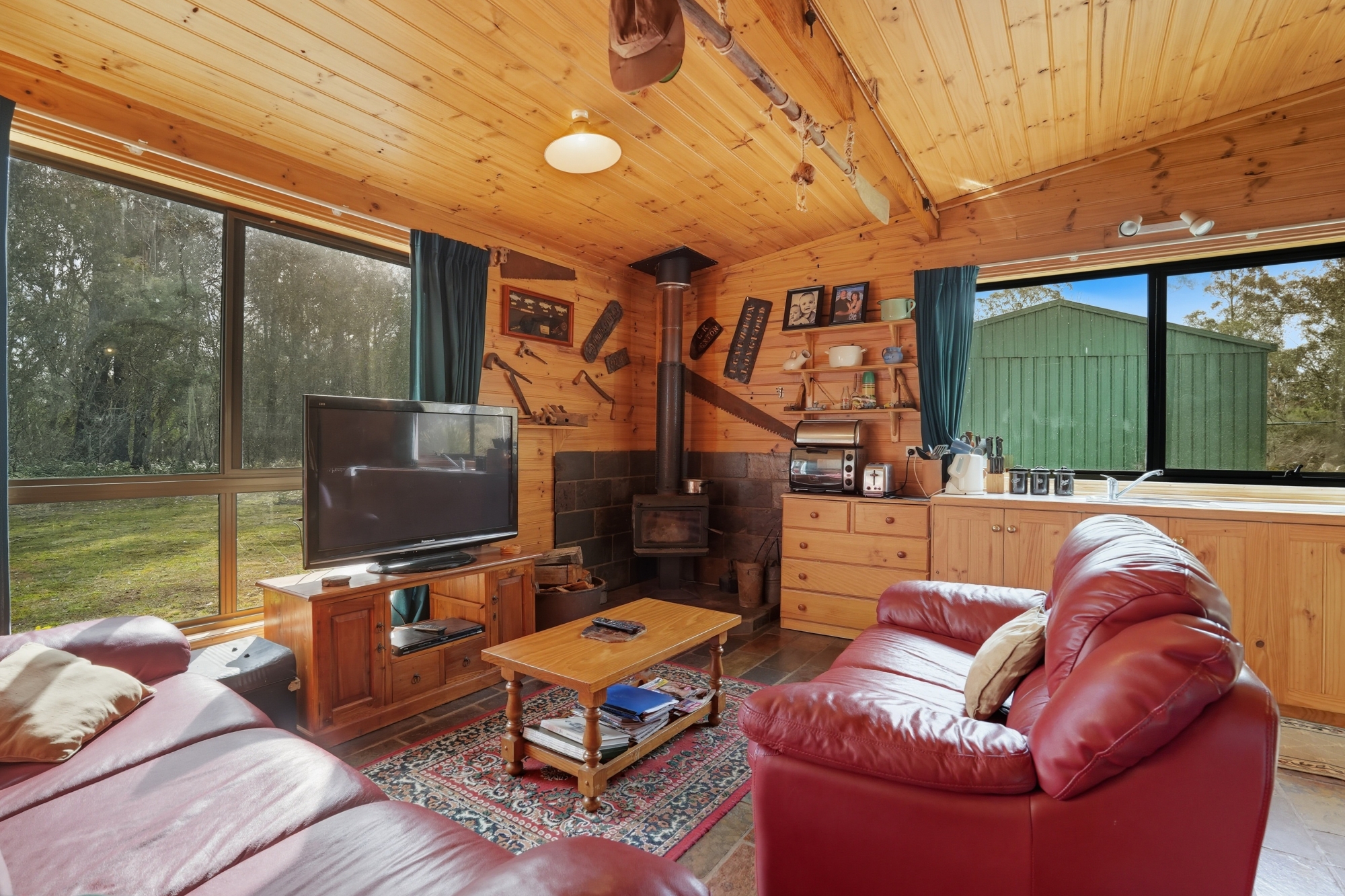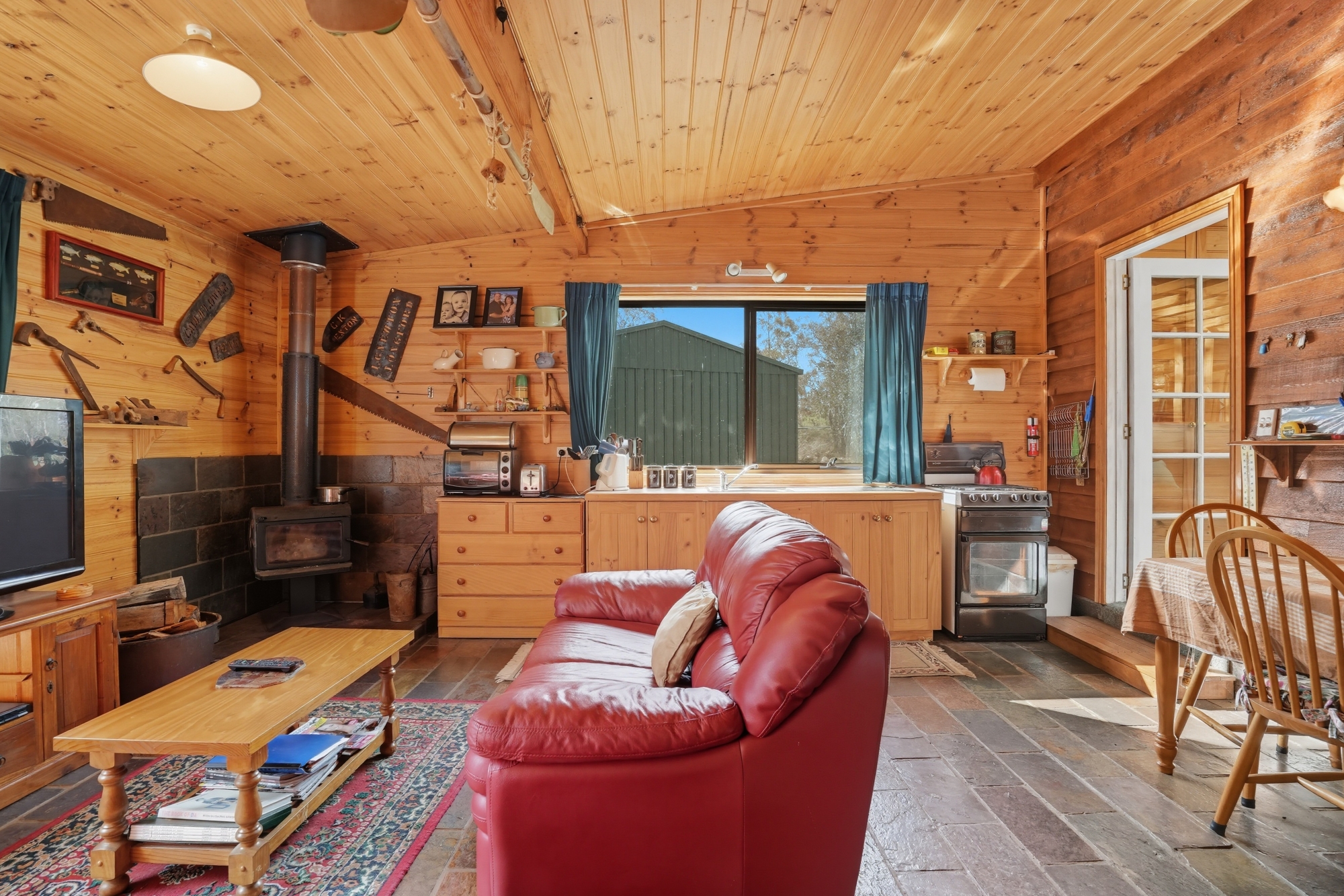 The open plan kitchen/lounge room is practical and functional. Warmed by a free-standing woodfire, it has plenty of under bench cupboards and a freestanding Chef cooktop/oven for preparing the days catch after a day on the water.
