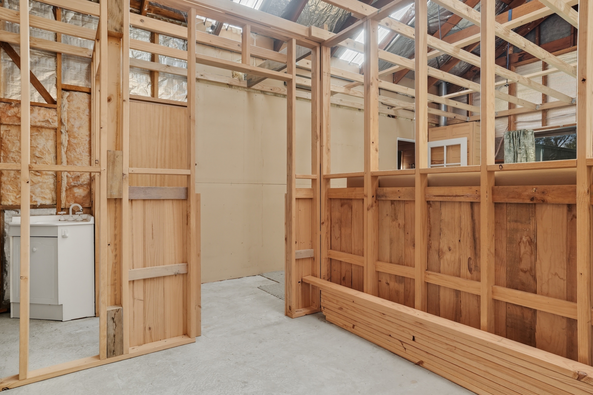 There is timber framing work completed in the second living room for a 3rd bedroom/storage room (plus potential second toilet). This would only require insulation and plasterboard to create a cozy space for friends and/or family to enjoy.