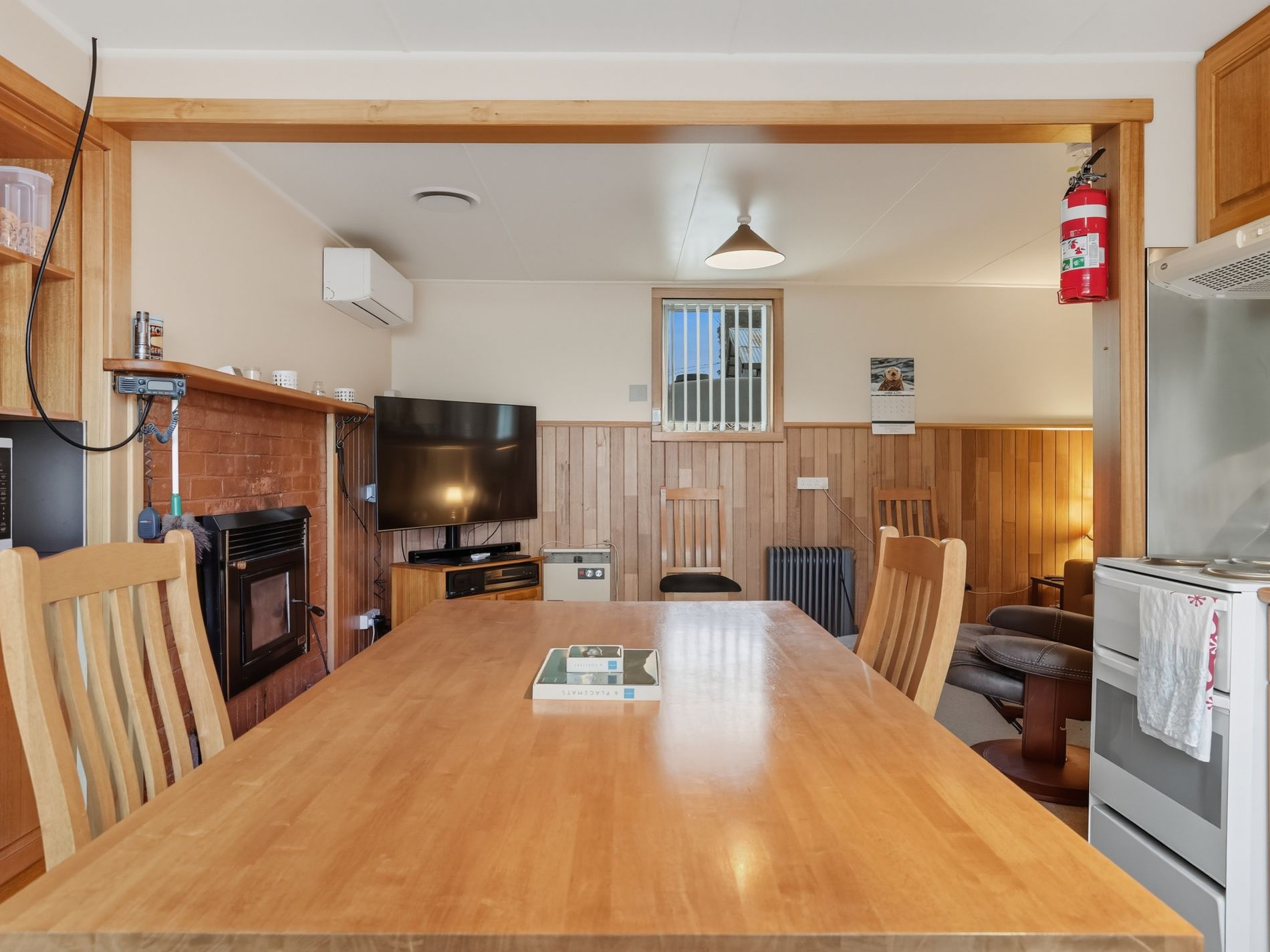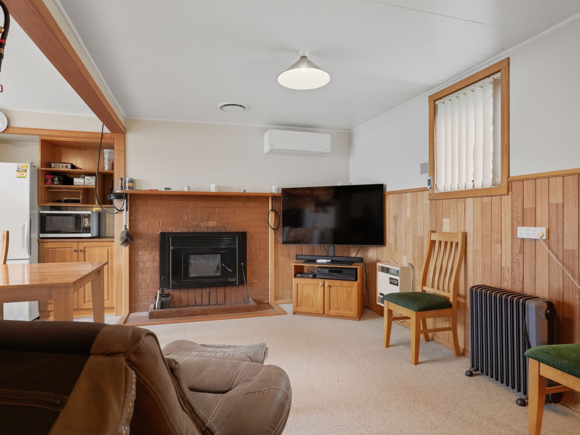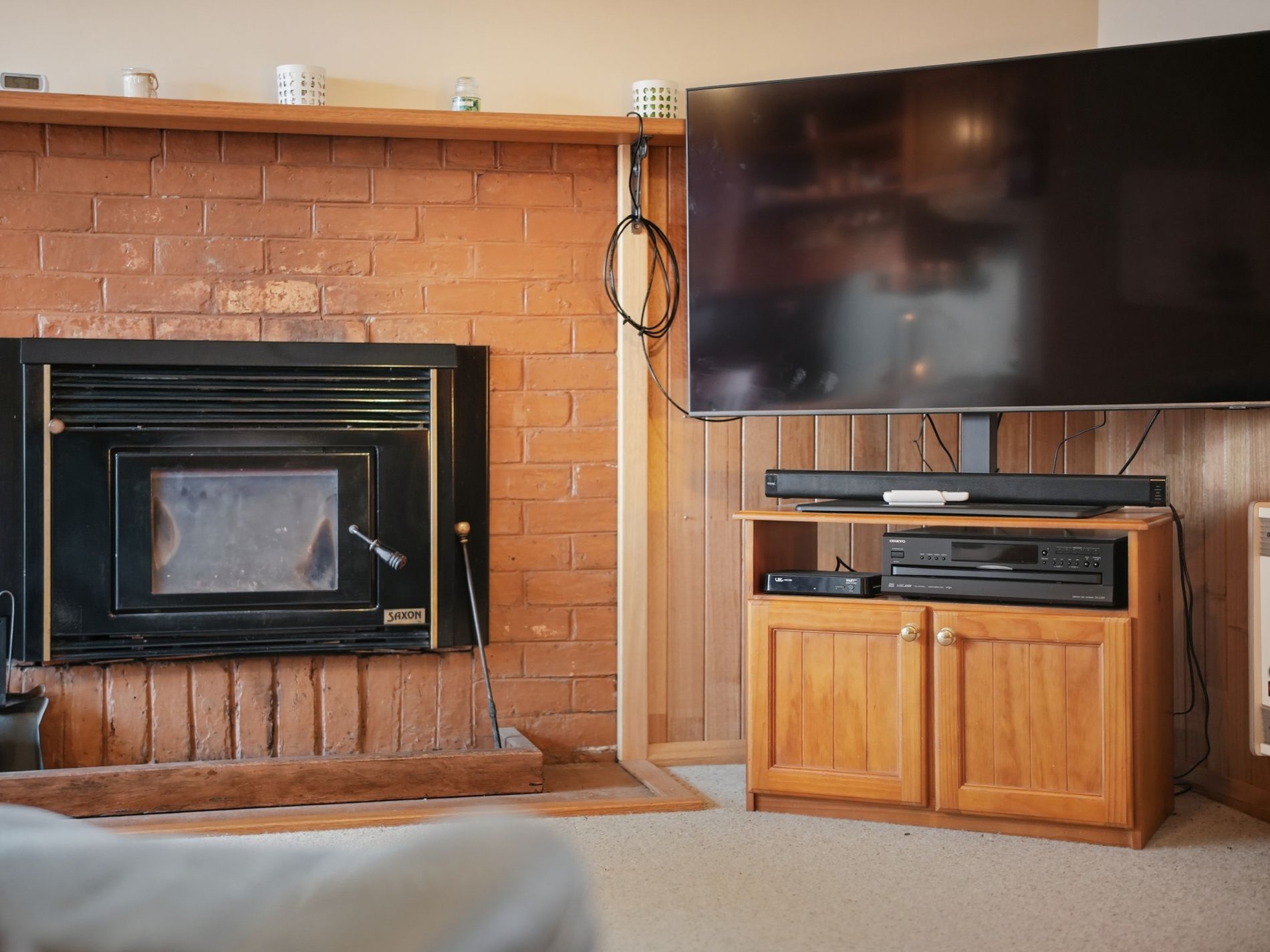 • Lounge space with a fan-forced Saxon woodfire, wall heater + Fujitsu air conditioning unit
