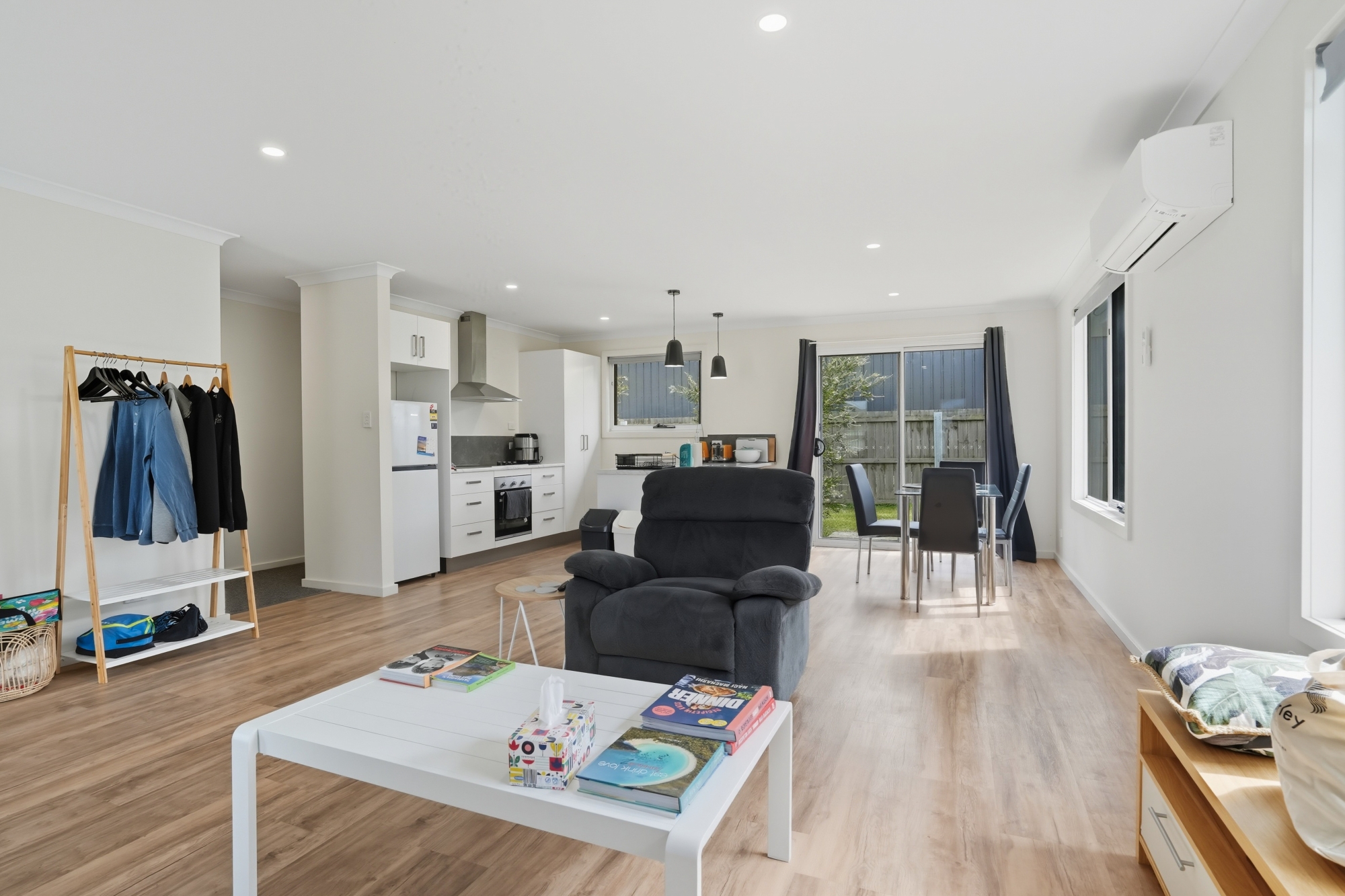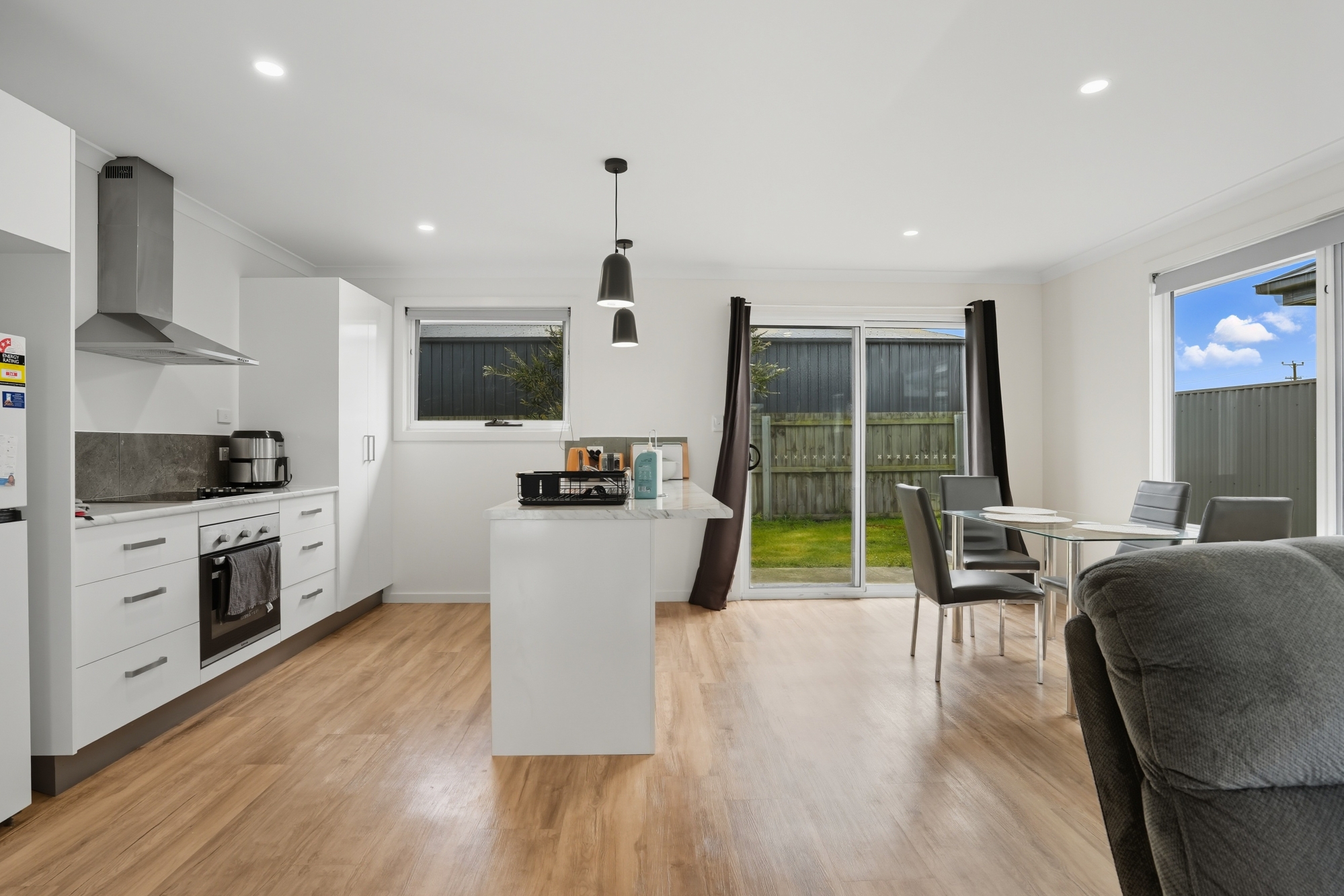 Inside, the home is well laid out with three bedrooms, each with built-in wardrobes, an open plan kitchen and dining space moving through to the living room and a spacious bathroom with a large shower, plus the added bonus of a second toilet, makes family living easy.