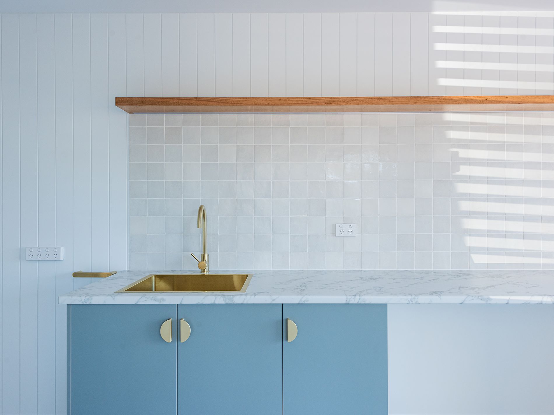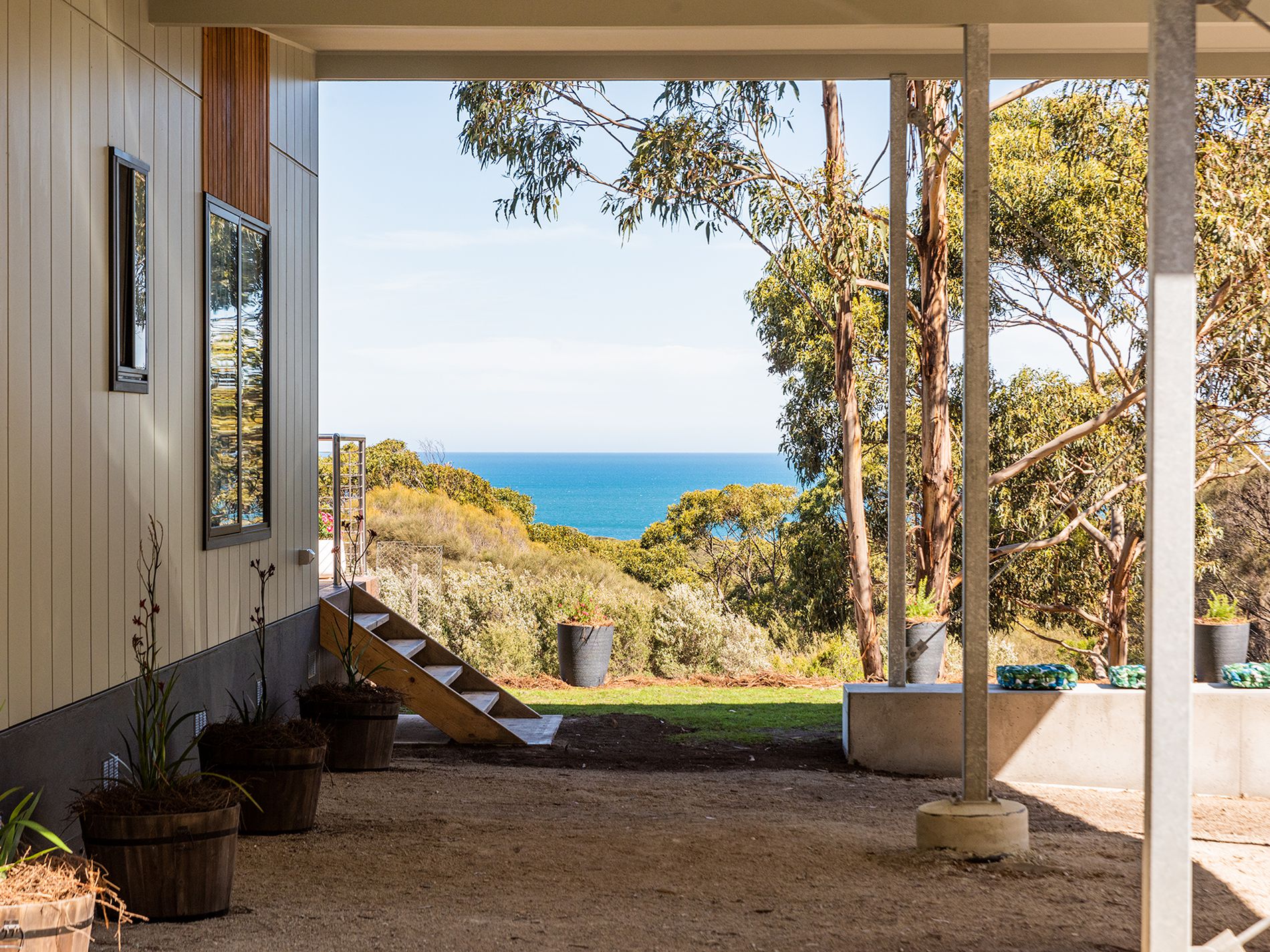 Designed for relaxed coastal living, the home features a thoughtful layout with built-in wardrobes in both bedrooms, a stylish bathroom with tiles that mimic the colour of the ocean, and a well-planned laundry/mudroom complete with a window seat and ample storage.